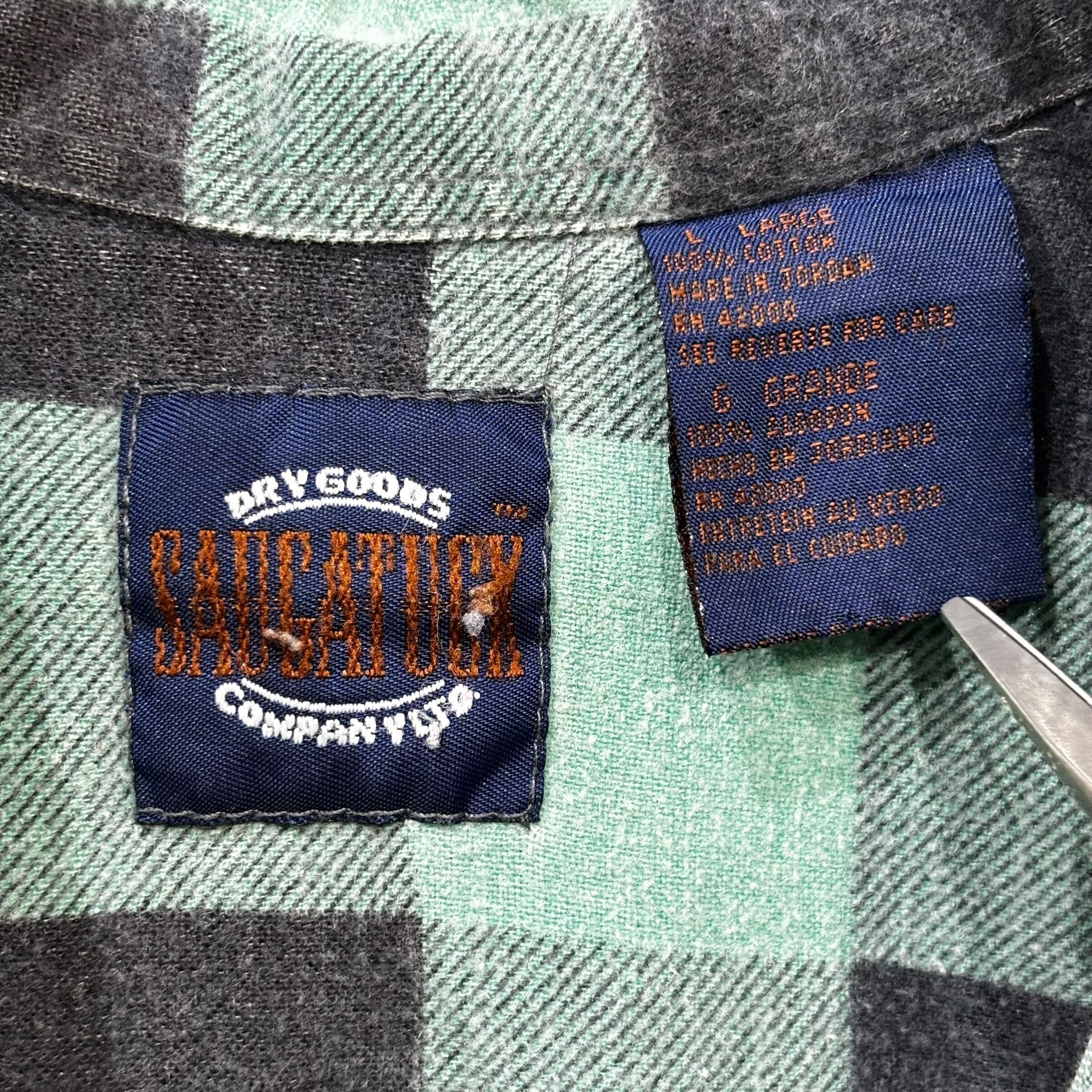90s SAUGATUCK Buffalo Check Print Flannel Shirt 【L】 90年代 ソーガタック プリントネルシャツ バッファローチェック ブロックチェック プリネル