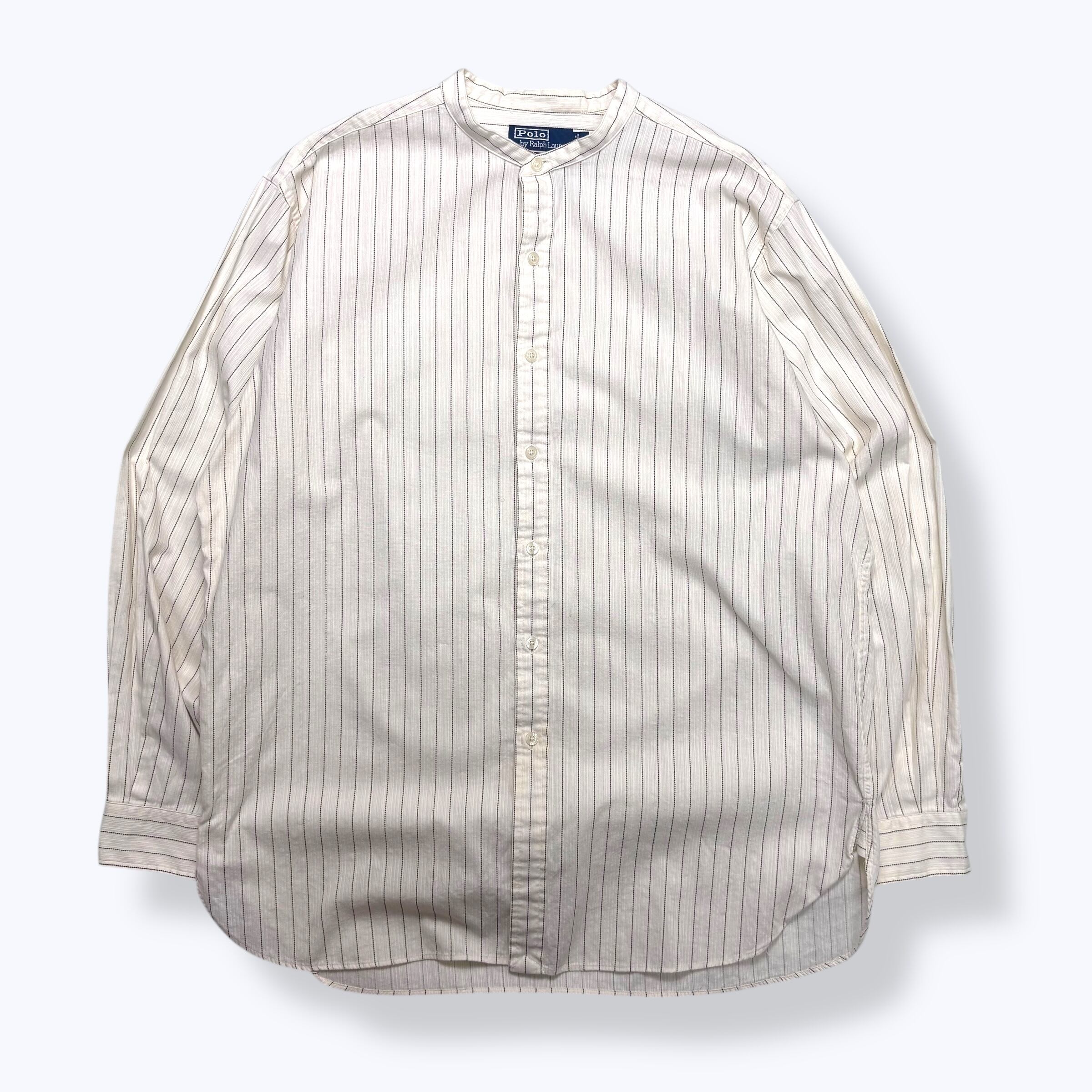 90s Polo by Ralph Lauren "BERNARD" Band collar Stripe Shirt 【L】 90年代 ポロ ラルフローレン ポロラルフローレン ポロバイラルフローレン ノーカラーシャツ バンドカラーシャツ ストライプシャツ