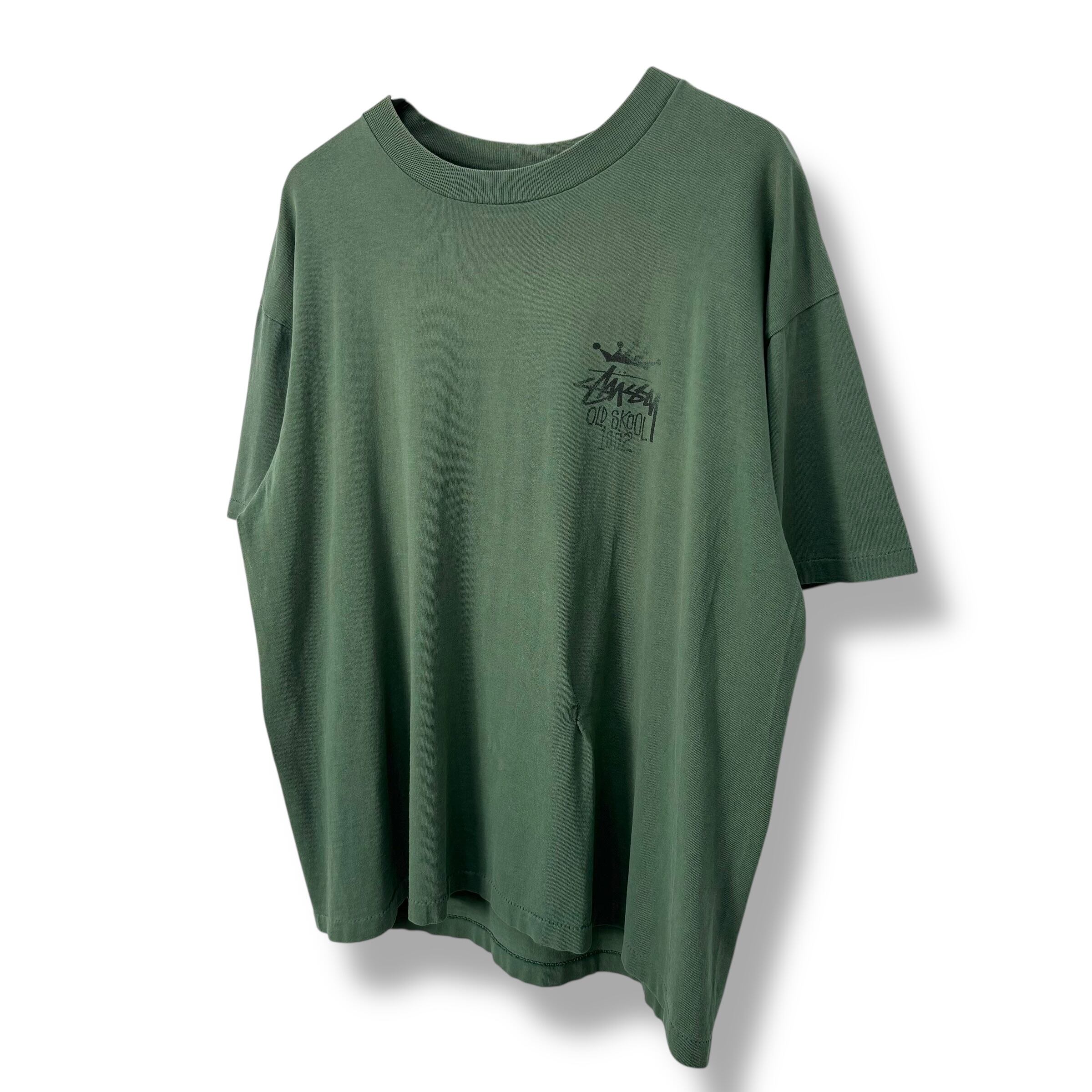 80s Old Stussy "OLD SKOOL 1992" Surf Print T-Shirt Made in USA 【XL】 80年代 90年代 黒タグ オールドステューシー オールドサーフ ギアオイル シャドーマン oldstussy