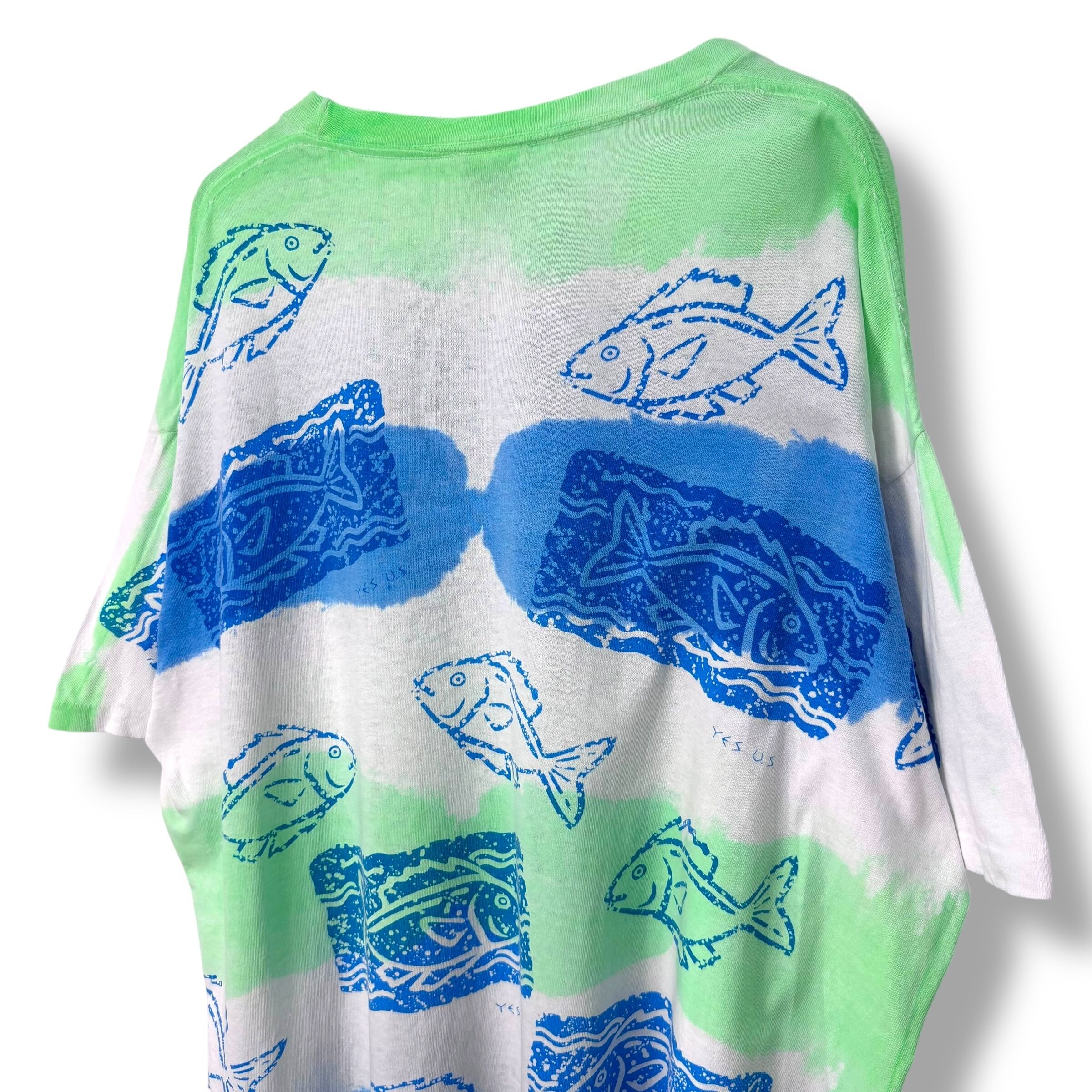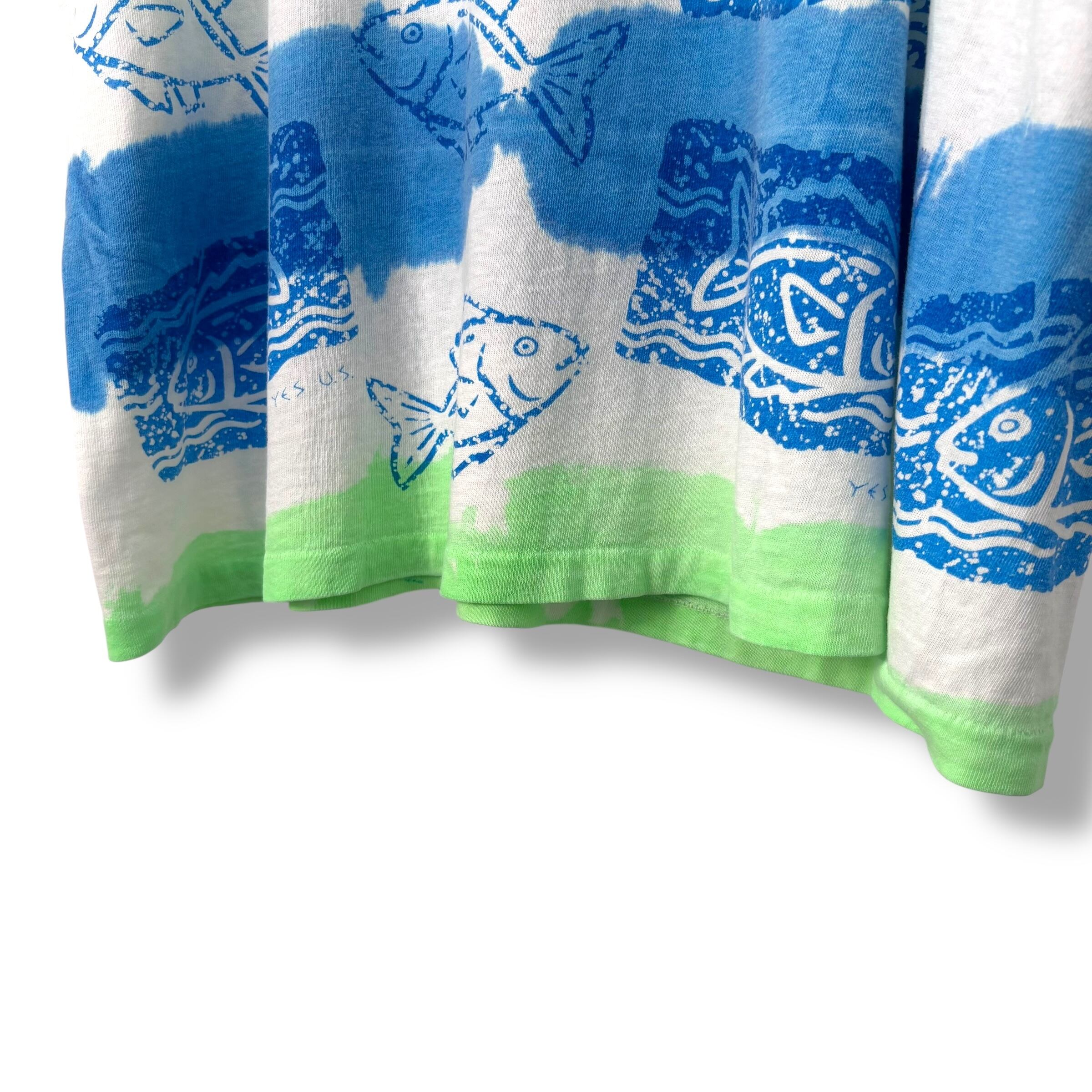 90s yes u.s. Fish Multi Border Print T-Shirt 【ONE SIZE】 90年代 Tシャツ 魚 オールオーバープリント オールドサーフ oldsurf ボーダー フィッシュ ブロンズエイジ