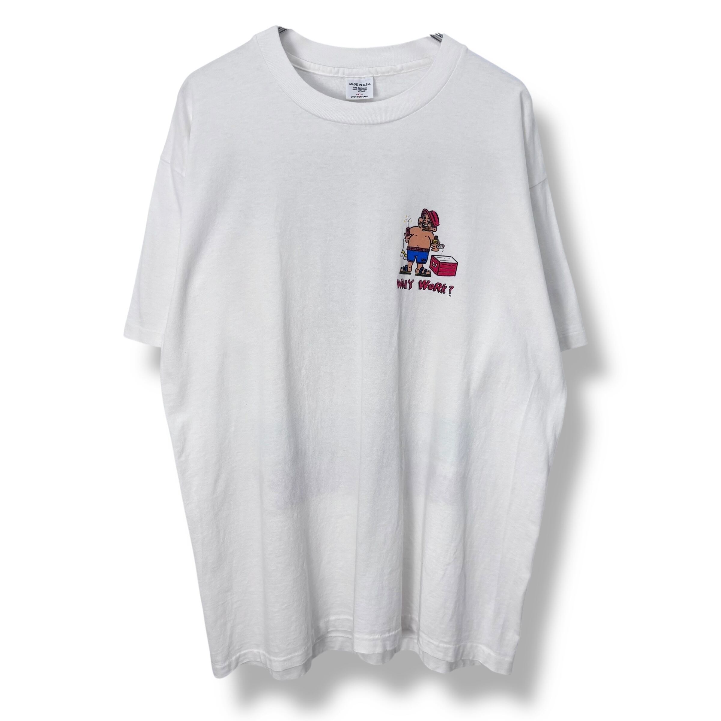 90s "WHY WORK?" Print T-Shirt Made in USA 【XL】 90年代 Tシャツ USA製 アメリカ製 シングルステッチ コットン 白 ホワイト 面白い系
