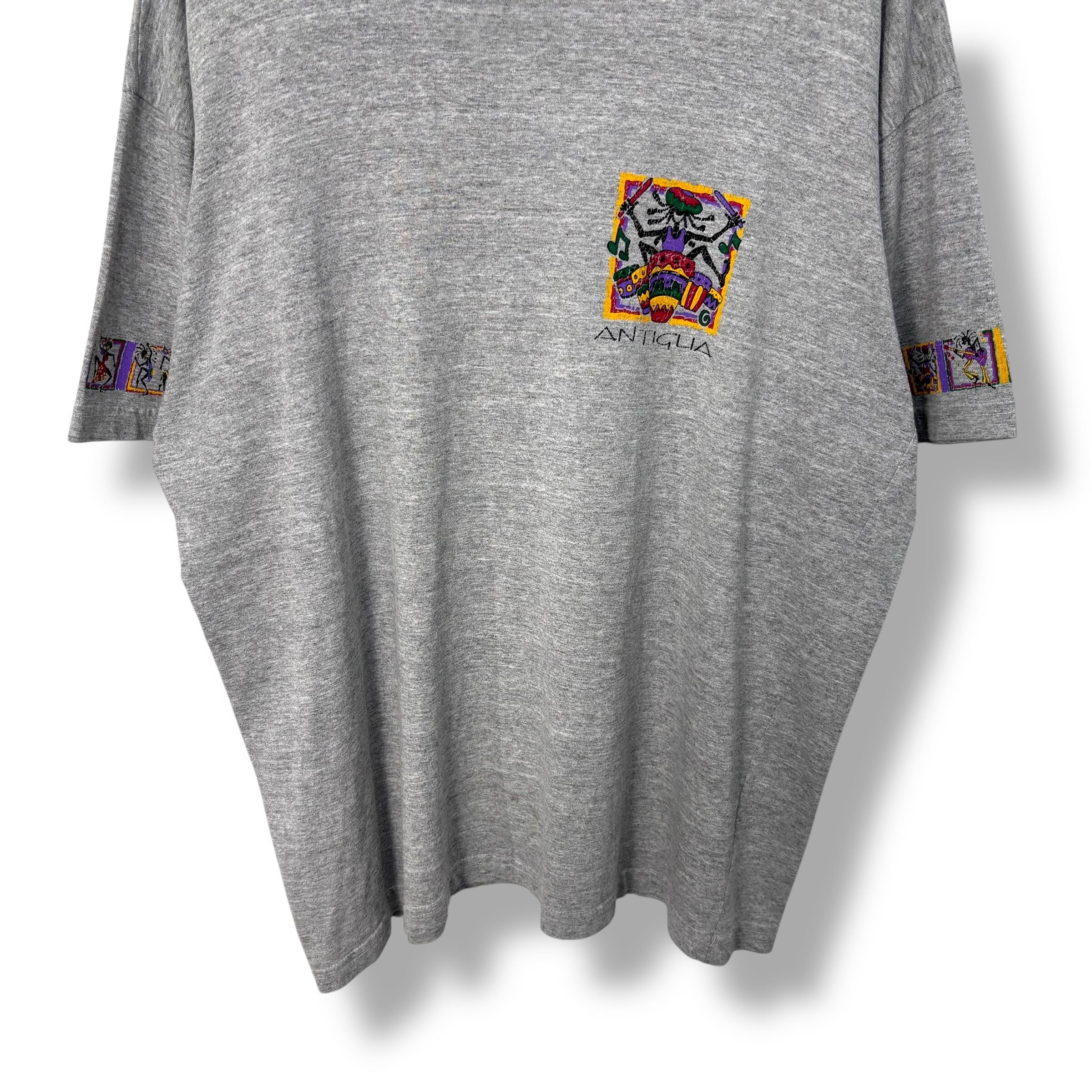 90s ANTIGUA SHADOW MAN Print T-Shirt 【L】 90年代 アンティグア Tシャツ 半袖 グレー シャドーマン stussy コットン オールドサーフ