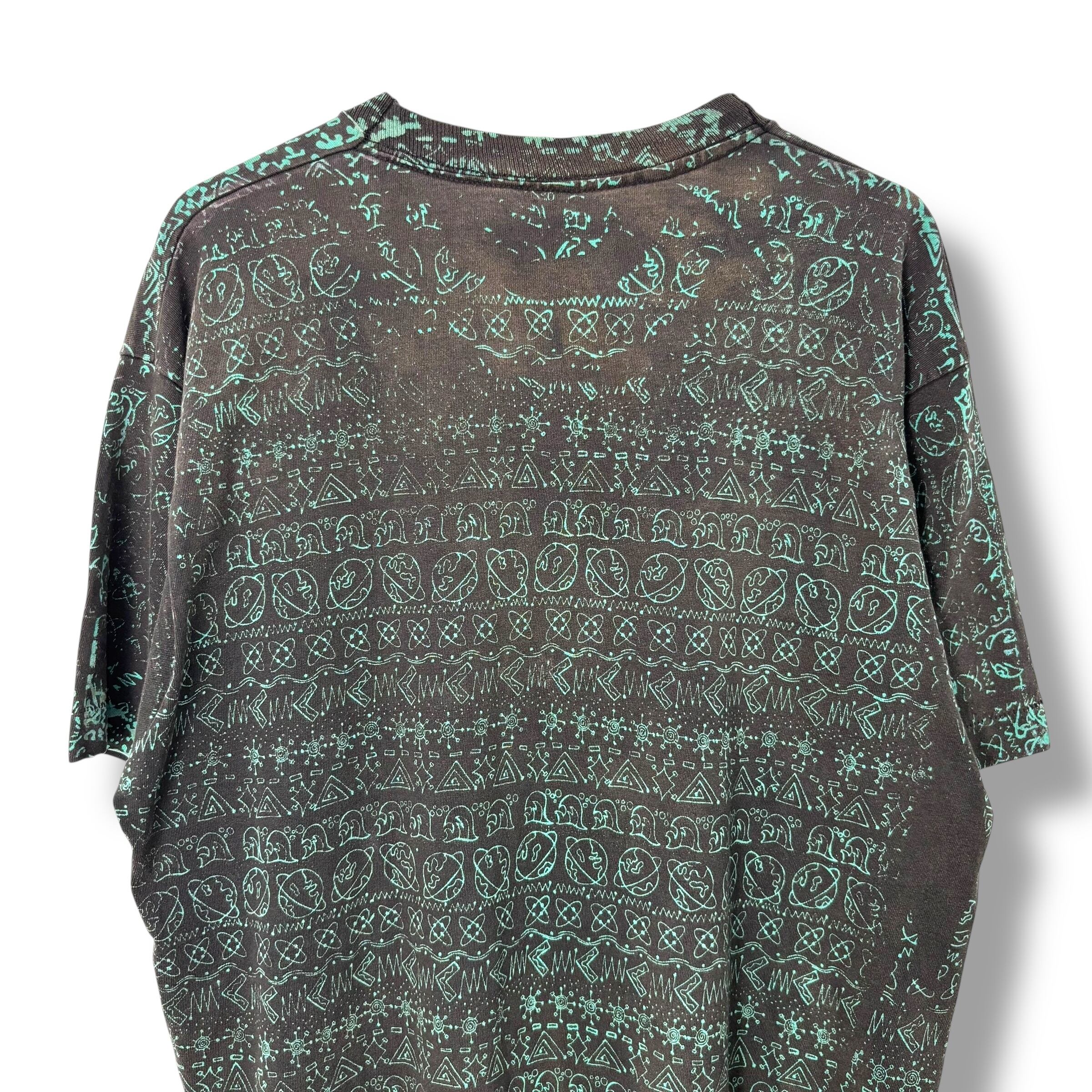 90s Old Surf Pattern Print T-Shirt 90年代 オールドサーフ Tシャツ 総柄 シングルステッチ 半袖 スケート サーフ フェード