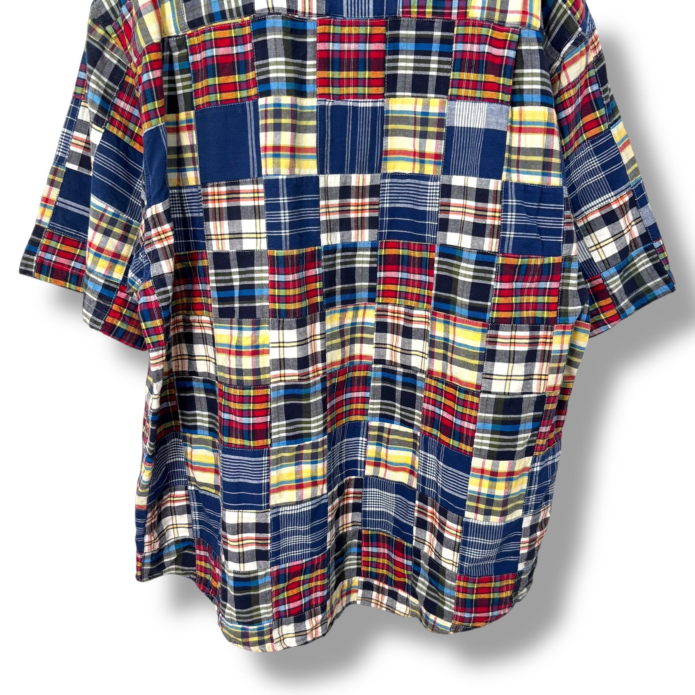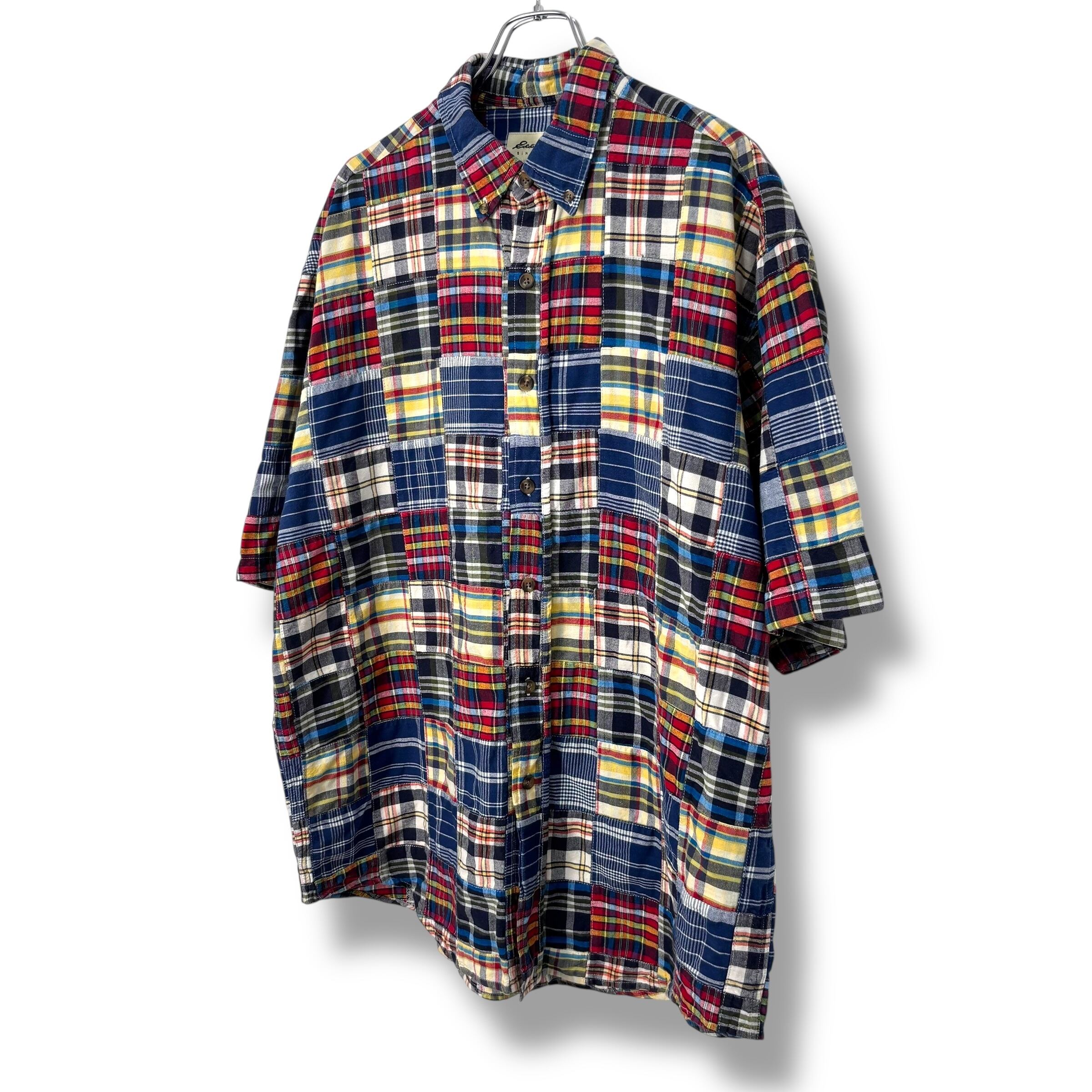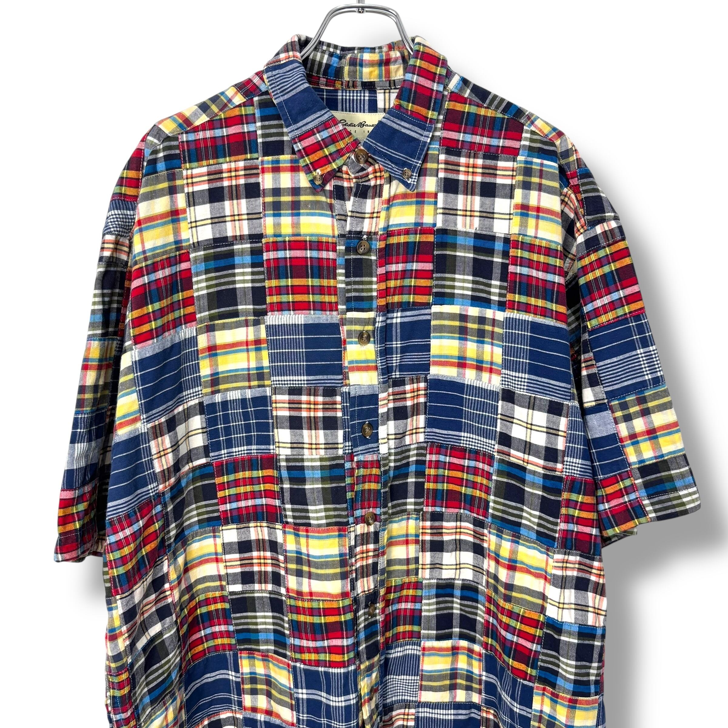 90s Eddie Bauer Patchwork Shirt 【XL】 90年代 エディーバウアー パッチワーク 半袖 シャツ 白タグ アウトドア