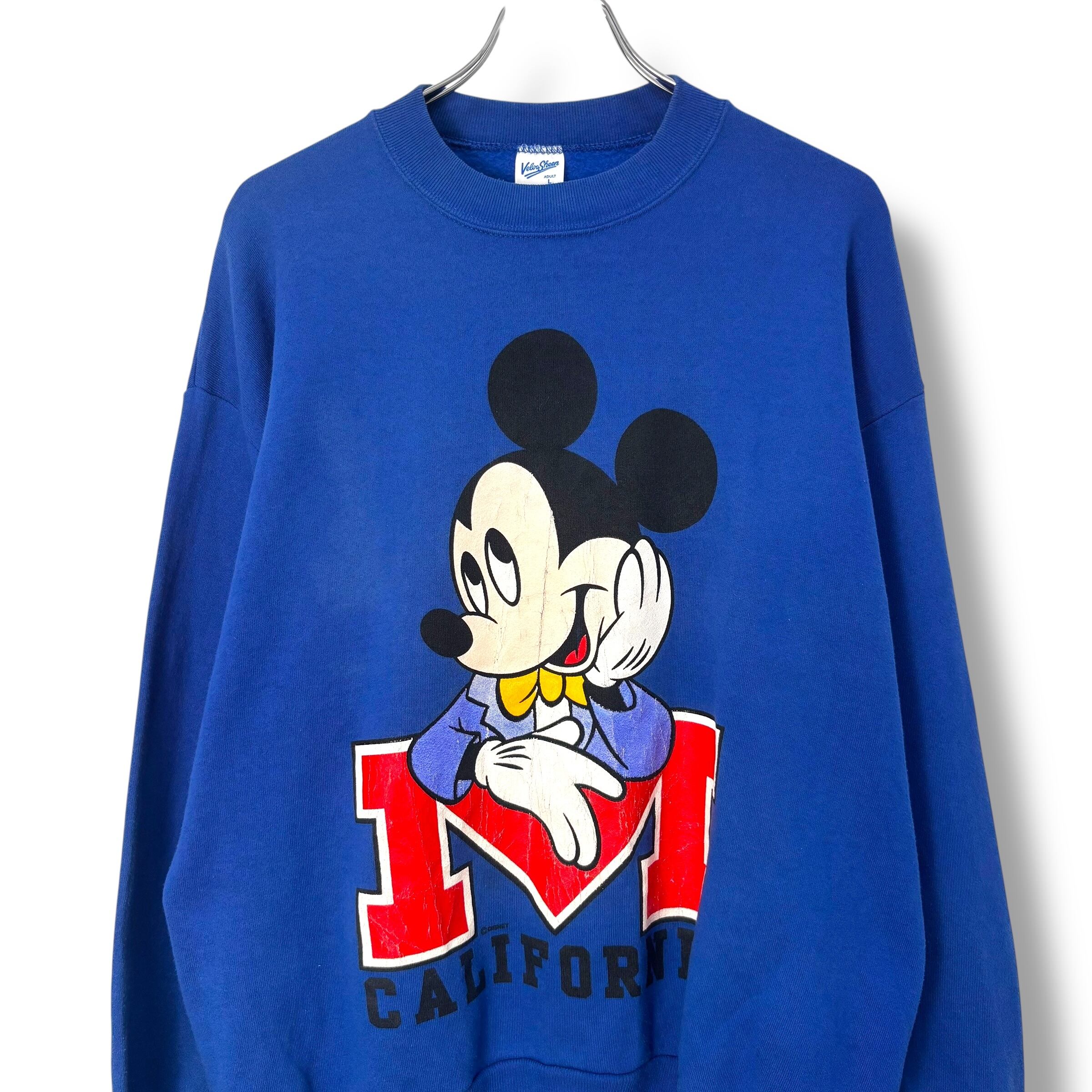 90s Disney Mickey Mouse Print Sweat Made in USA 【L】 90年代 ディズニー ベルバシーン ミッキーマウス スウェット クルーネック ブルー アメリカ製 USA製