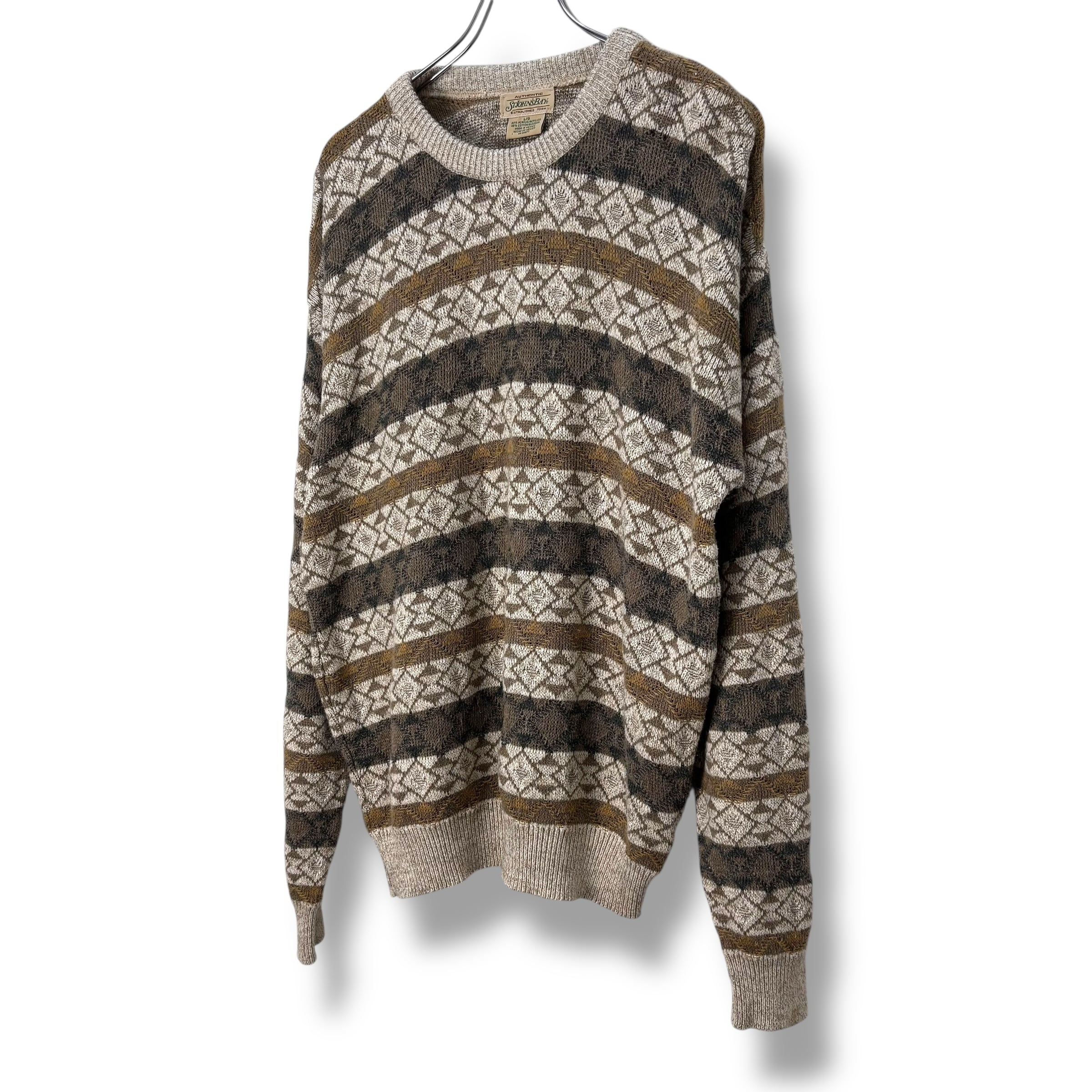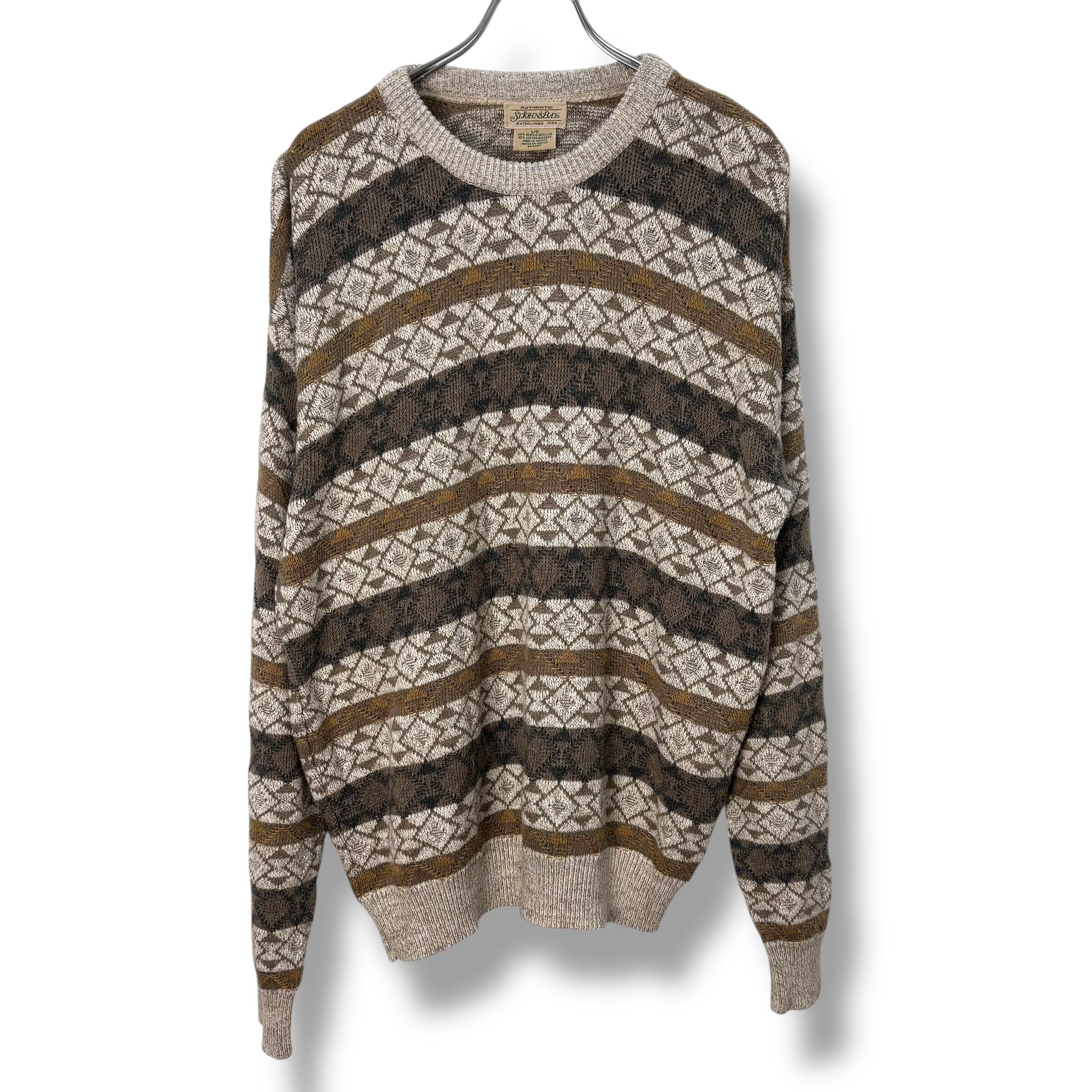90s ST JOHN'S BAY Acrylic&Cotton Knit 【L】 90年代 セントジョンズベイ コットンニット アクリルニット 総柄 オータムカラー