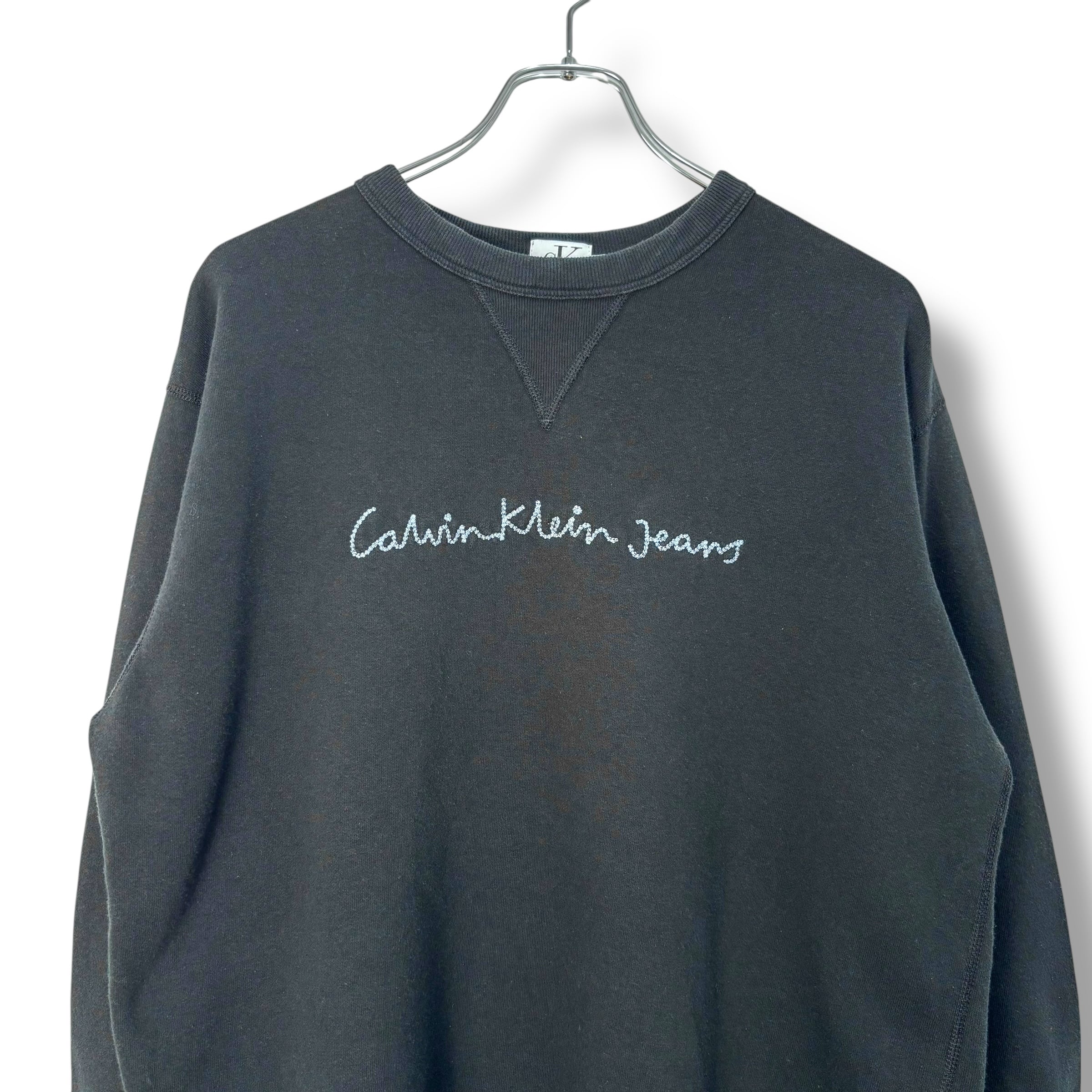 90s Calvin Klein Jeans Logo Sweat Made in USA 【M】 / 90年代 カルバンクライン 刺繍 スウェット アメリカ製 USA製 ブラック クルーネック