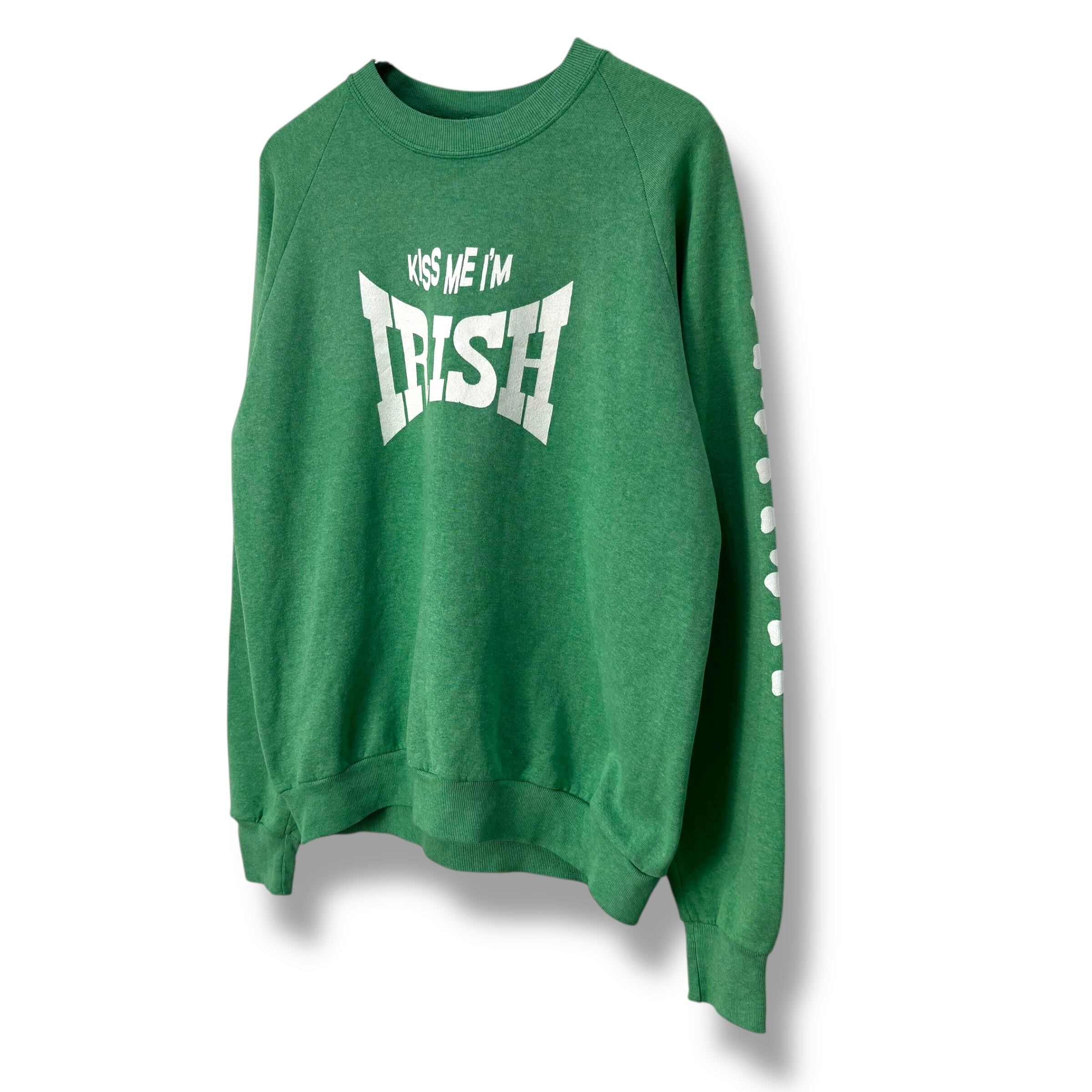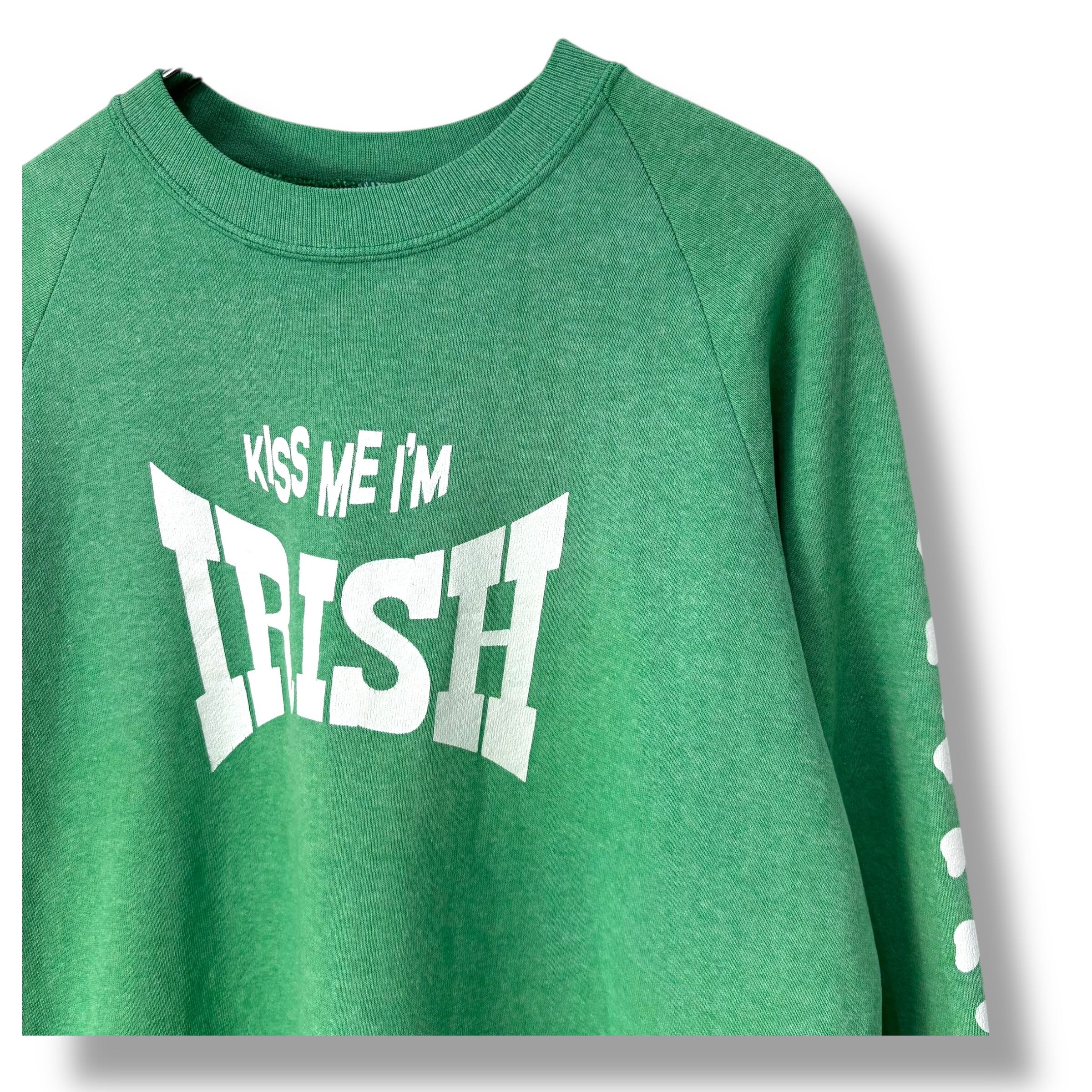90s JERZEES Good Print Sweat Made in USA 【XL】 90年代 ジャージーズ クローバー アイリッシュ USA製 アメリカ製 グリーン スウェット 袖プリント ラッセル Russell Athletic