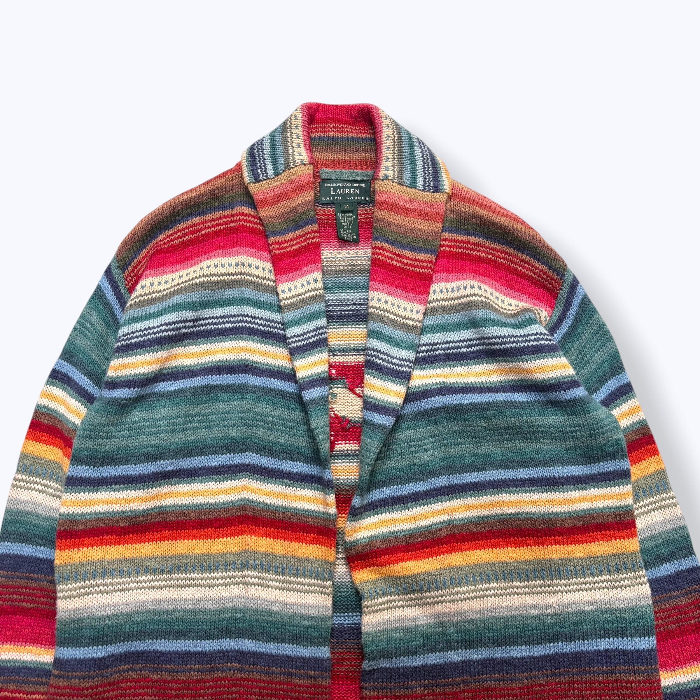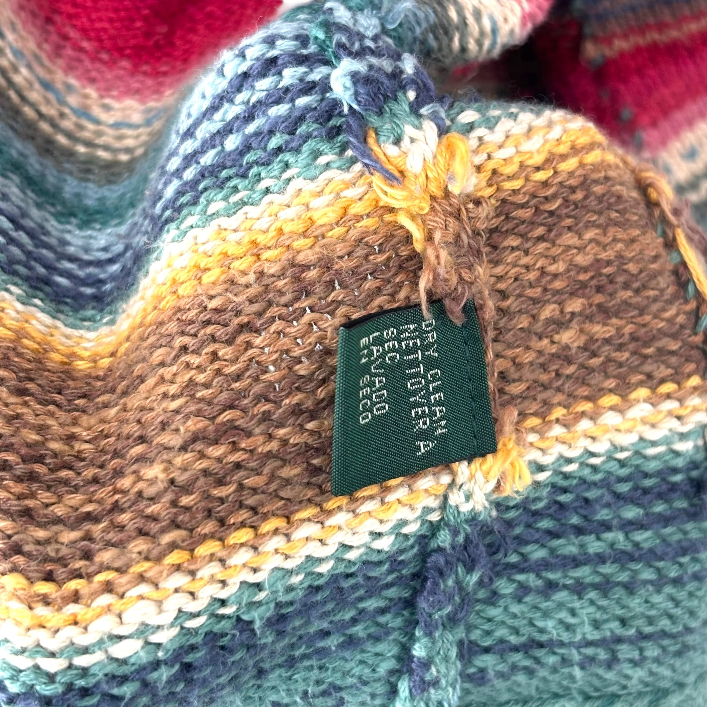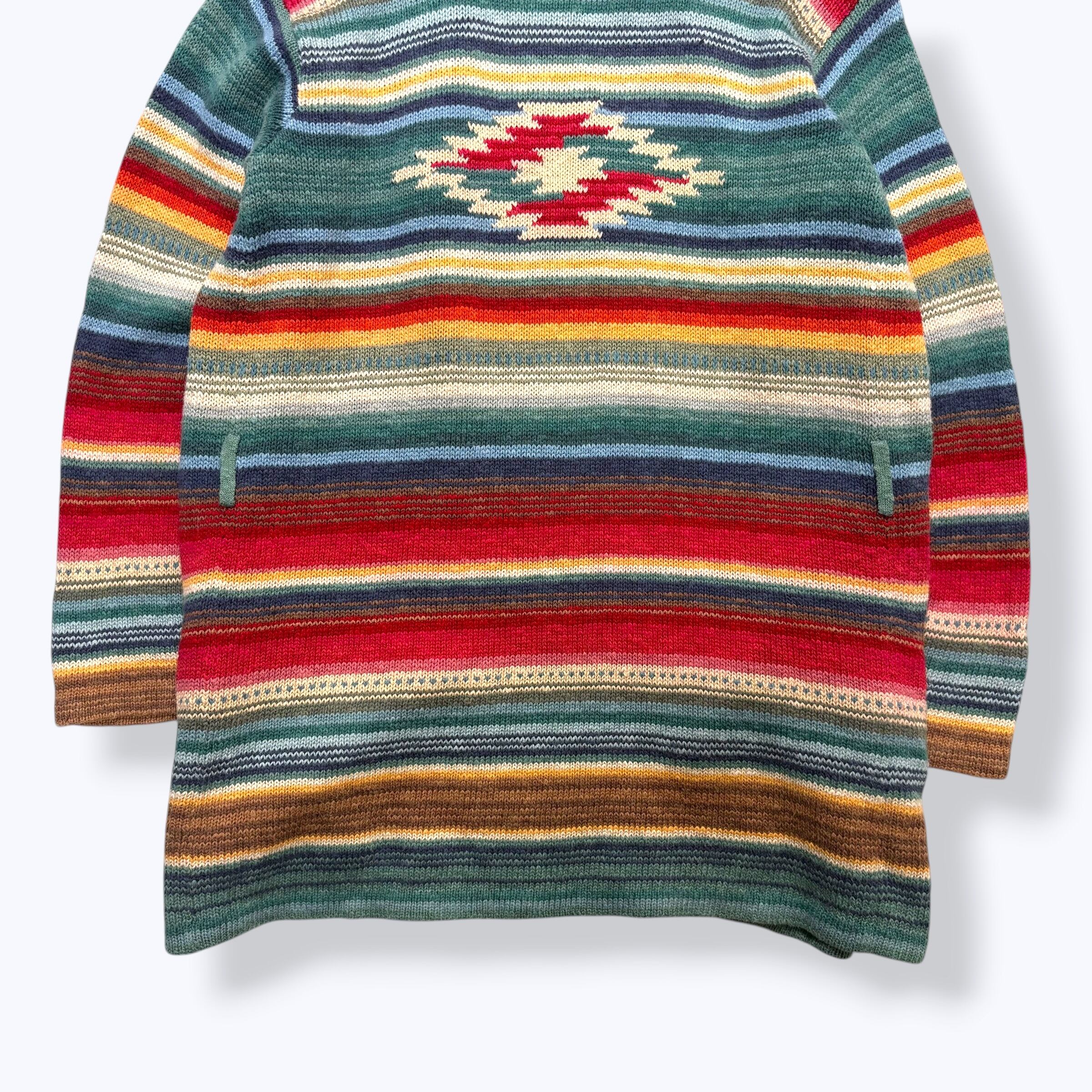 80s-90s LAUREN RALPH LAUREN Hand Made Knit Gown 【M】 80年代 90年代 ローレンラルフローレン ハンドメイドニット 手編み ネイティブ柄 マルチボーダー ニットガウン コットンリネン