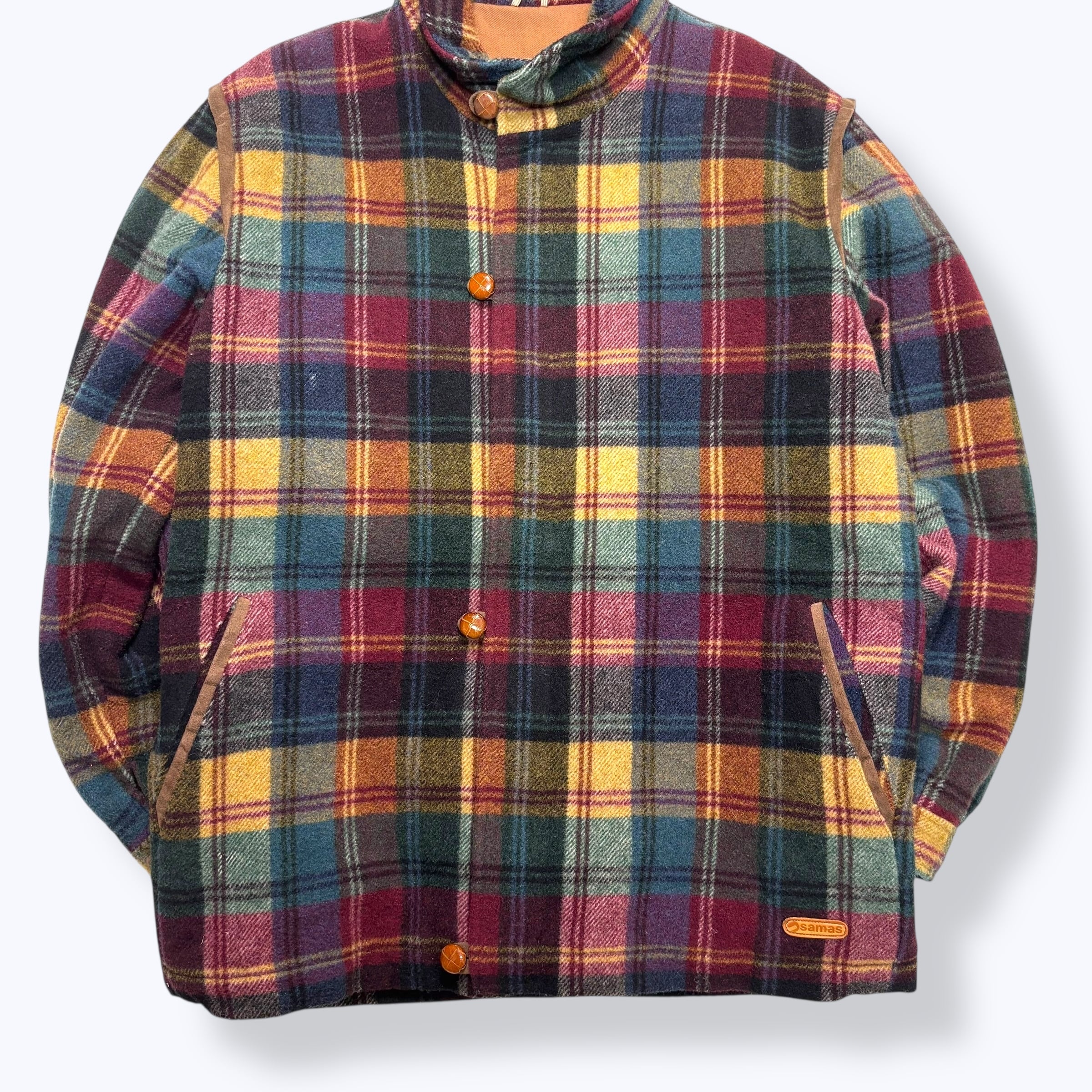 70s~80s Samas SPORTSWEAR Stand Collar Wool Jacket Made in ITALY 【M】 70年代 80年代 サマス チェックジャケット ウールジャケット くるみボタン スタンドカラー 比翼 立ち襟