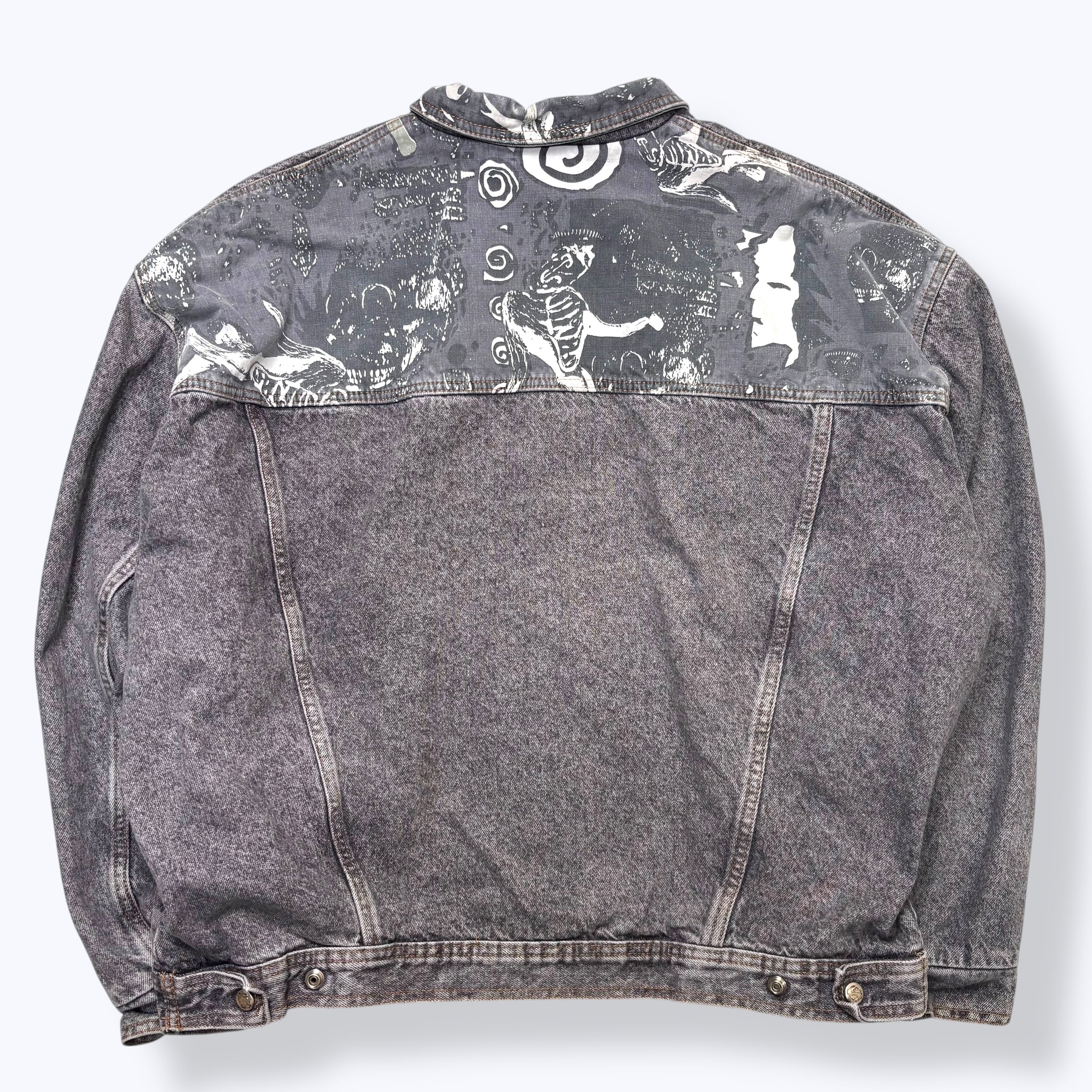 80s Quiksilver Black Denim Trucker Jacket Made in FRANCE 80年代 90年代 クイックシルバー オールド サーフ スケート Gジャン ブラック デニム トラッカー ジャケット 総柄 古着 ヴィンテージ vintage