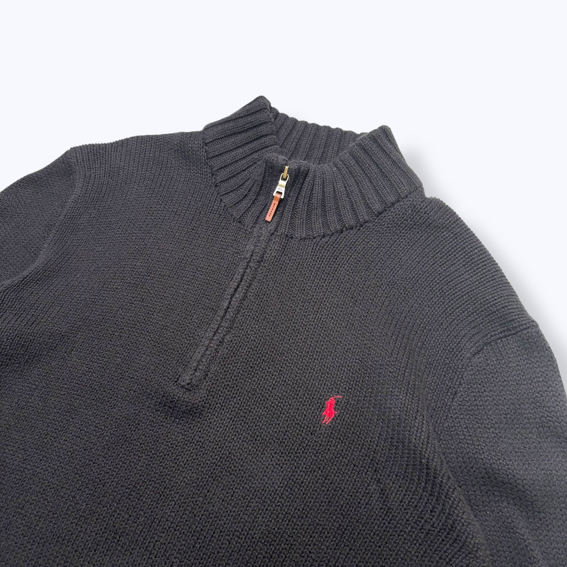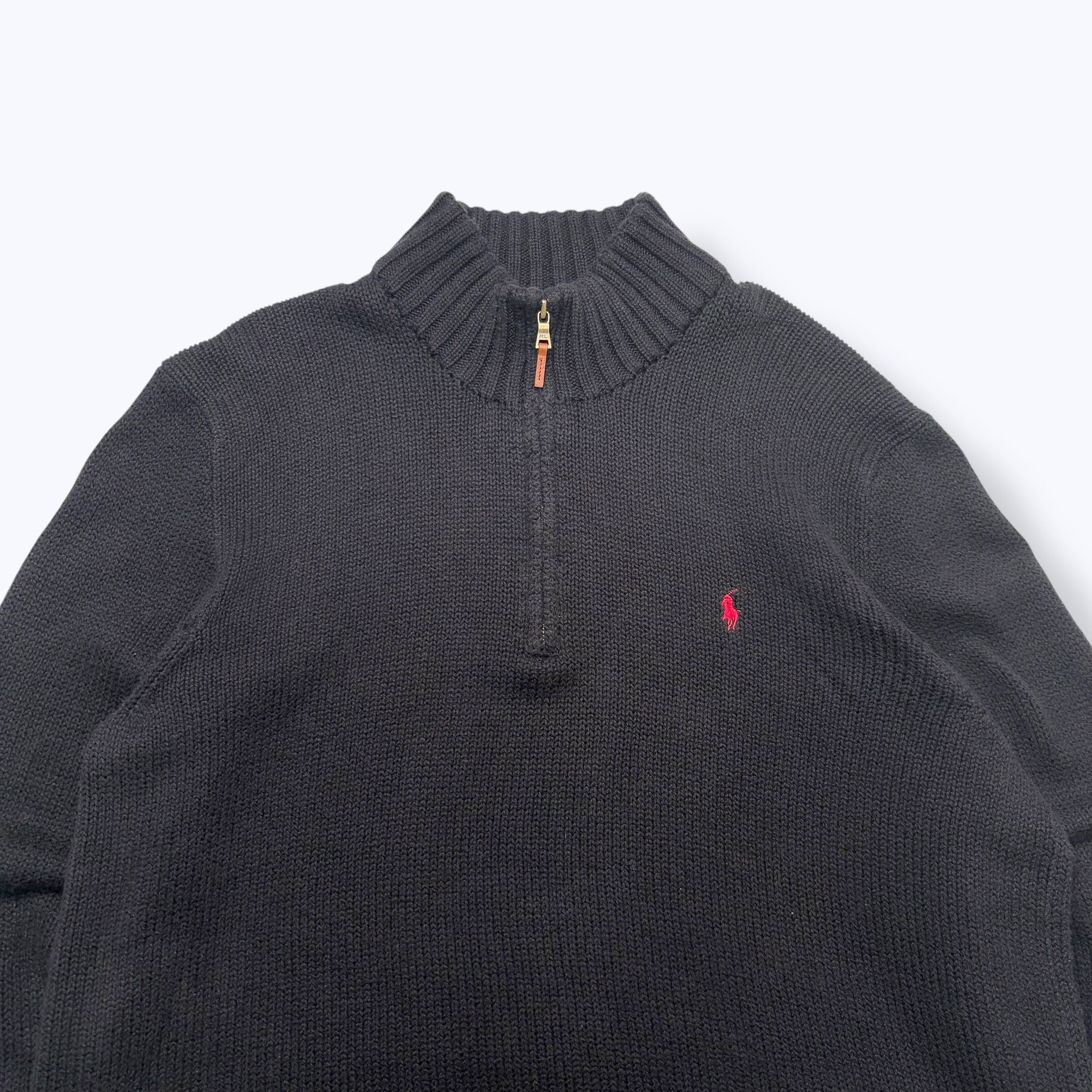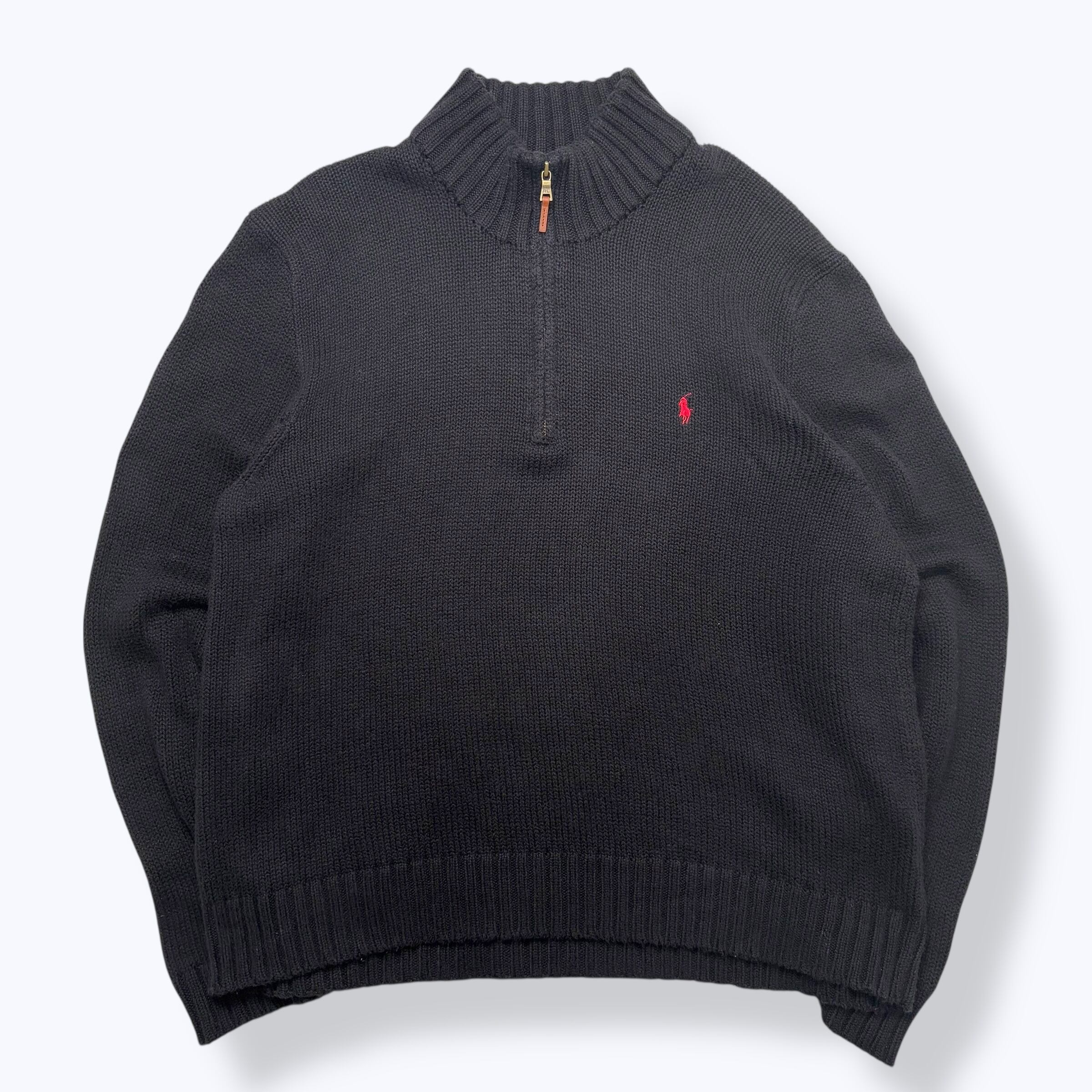 90s-2000s Ralph Lauren Half Zip Cotton Knit 【XXL】 90年代 2000年代 ラルフローレン ハーフジップ コットン ニット ブラック 古着 ヴィンテージ vintage