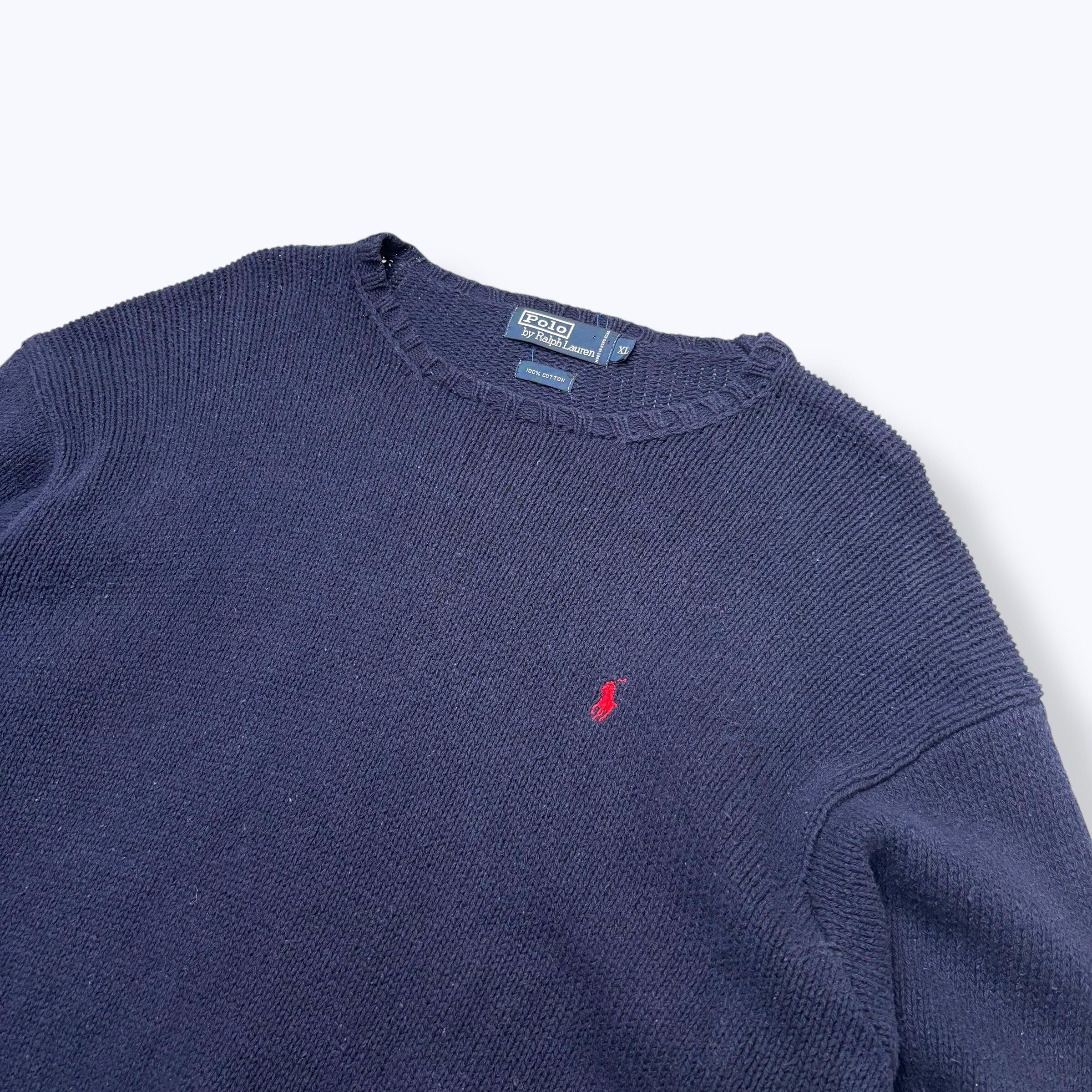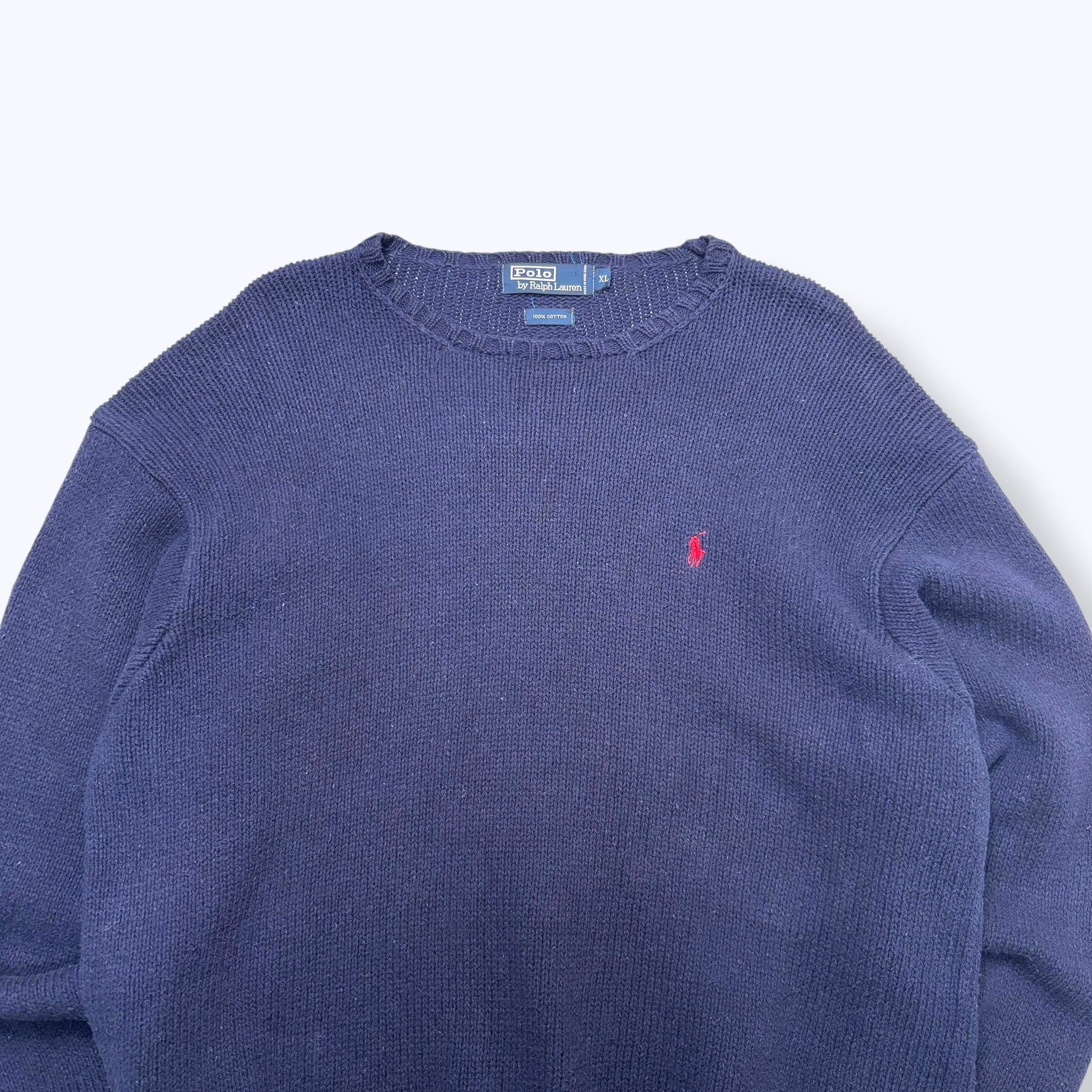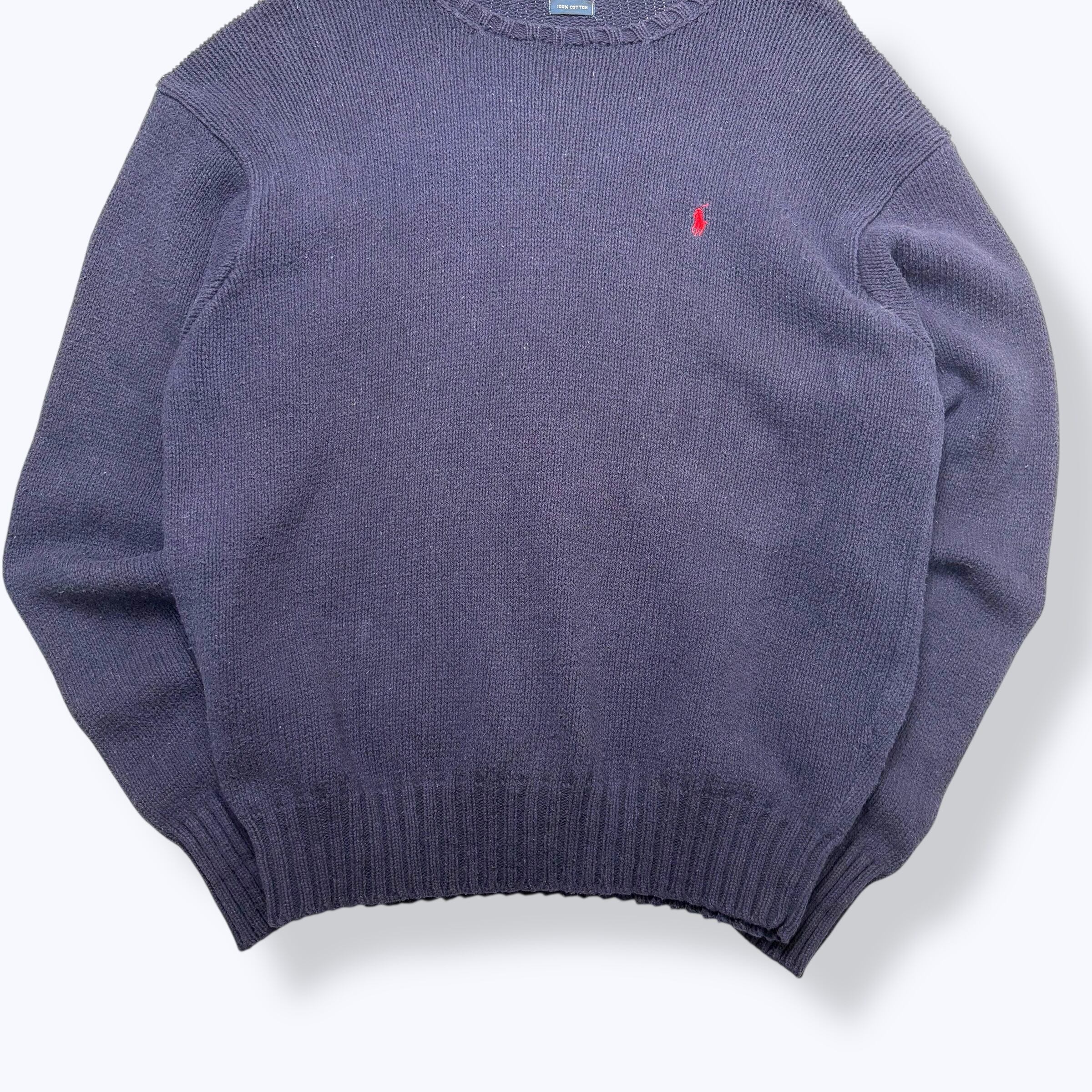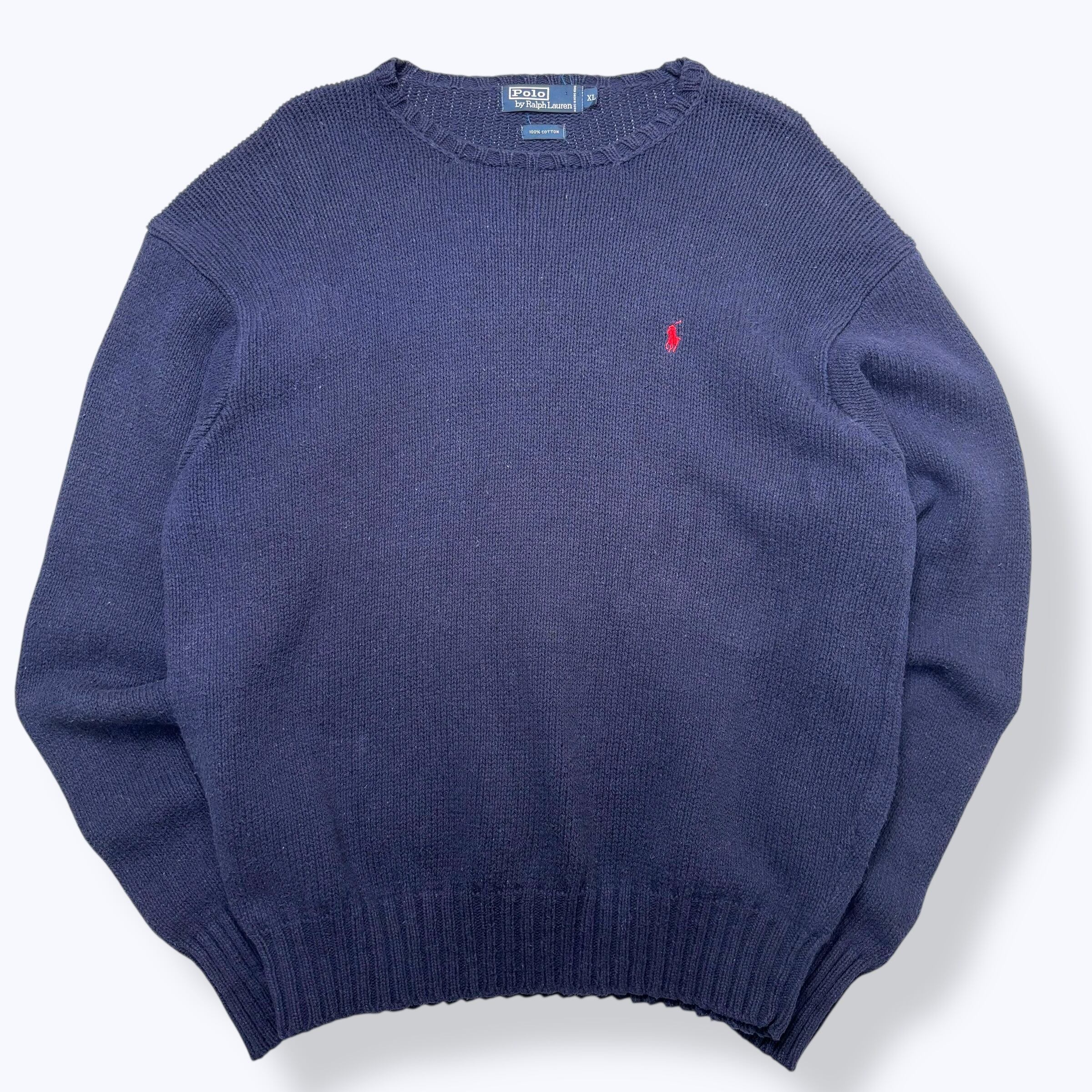 90s Polo by Ralph Lauren Cotton Knit 【XL】 90年代 ラルフローレン コットンニット ネイビー ポニー ポロバイラルフローレン ポロラルフローレン