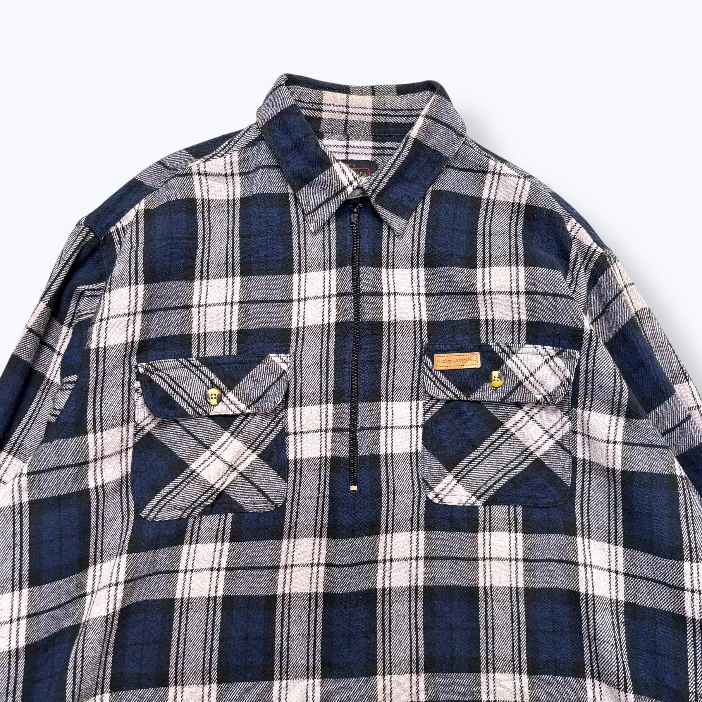 一見普通のネルシャツですが、ハーフジップにチンスト付きとワークウェアのディテールで仕立てられております。