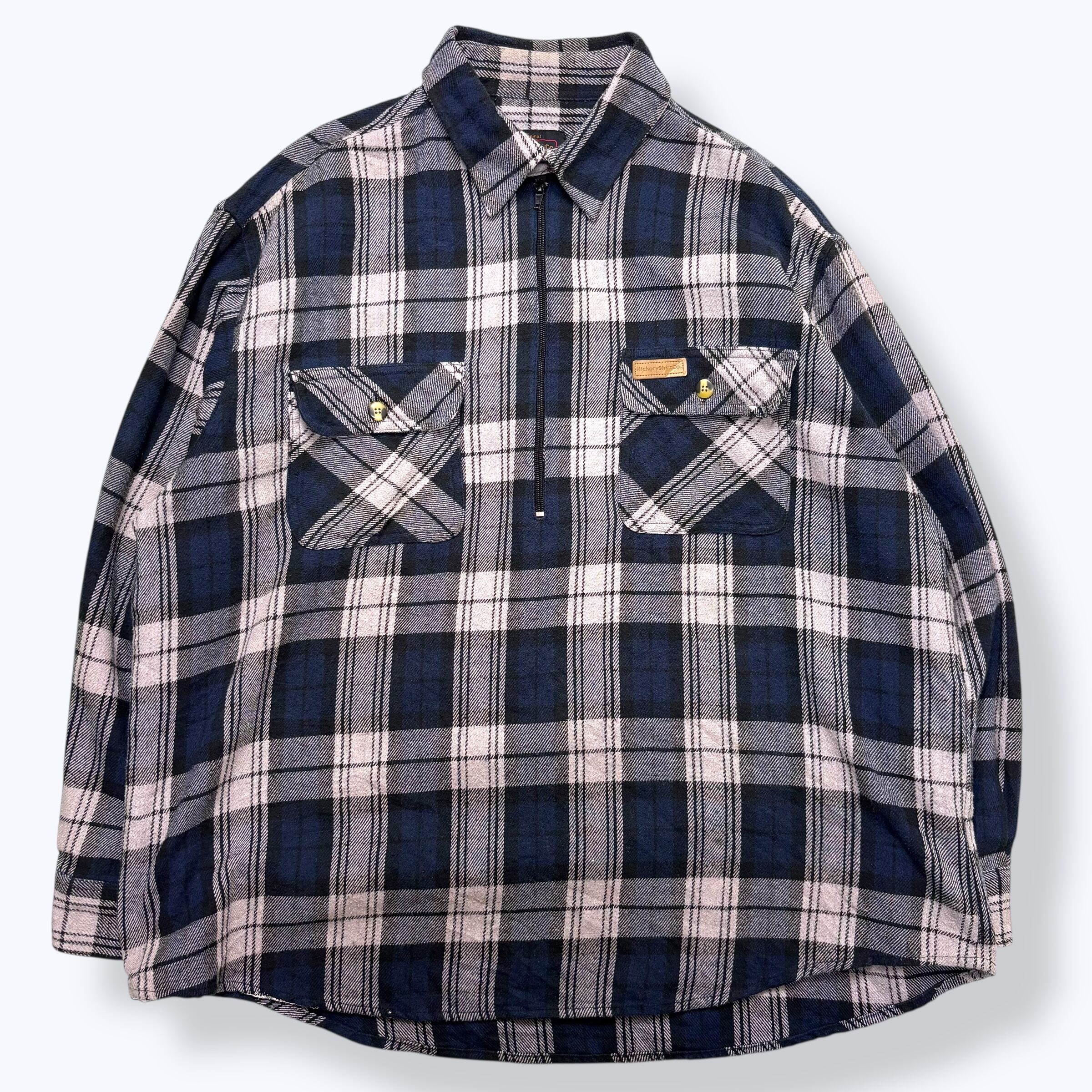 2000s Hickory Shirt co. Pullover Heavy Flannel Shirts 【XL】 2000年代 y2k ヘビネル ヘビー ネルシャツ プルオーバー チンスト チェック フランネル ネイビー 古着 ヴィンテージ