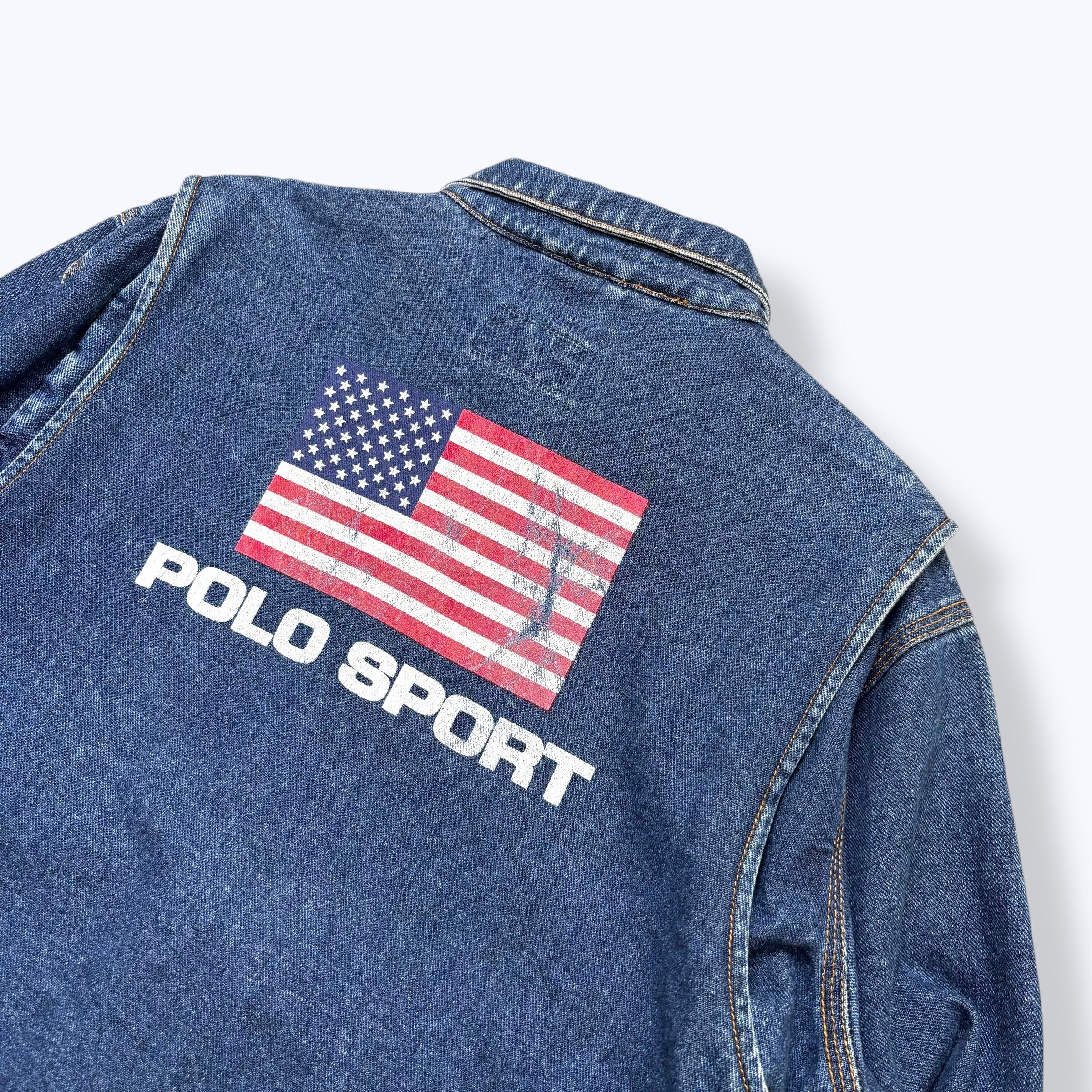 Early 90s POLO SPORT RALPH LAUREN Denim Jacket 【XL】 90年代 ラルフローレン ポロスポーツ デニム ジャケット カバーオール 星条旗 Gジャン 白タグ 旧タグ 古着 ヴィンテージ