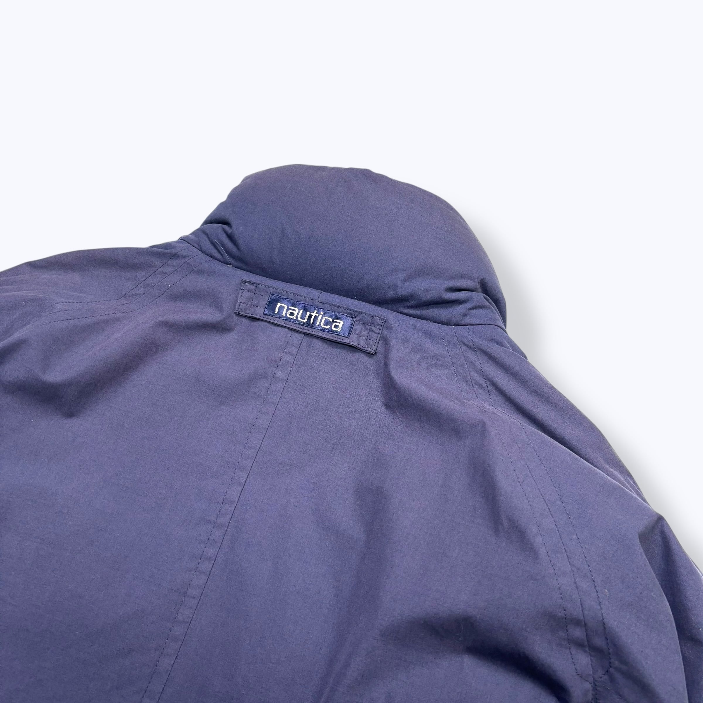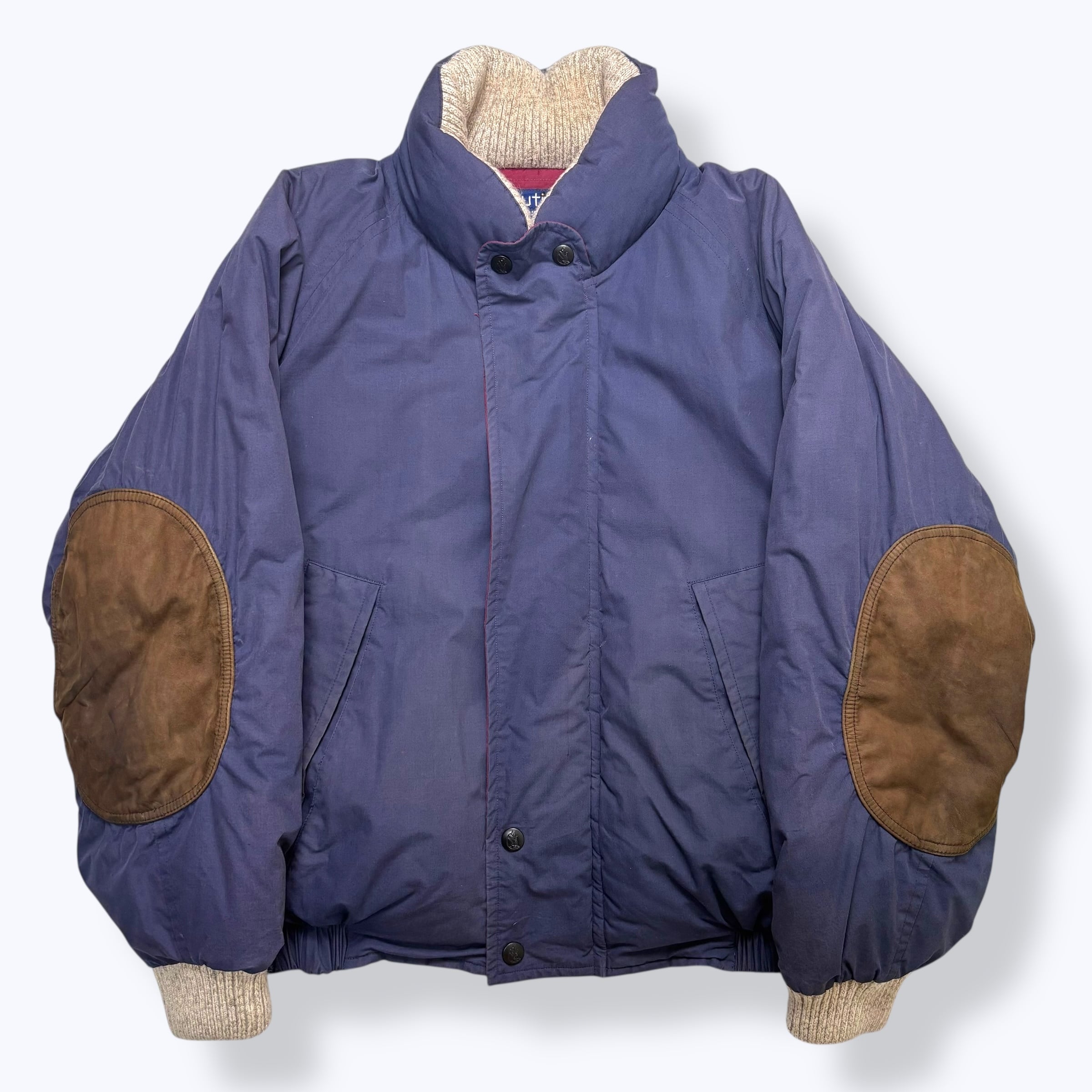 90s NAUTICA Leather Elbow Patch Down Jacket 【L】 90年代 ノーティカ ノーチカ ダウン ジャケット エルボー パッチ ネイビー 古着 ヴィンテージ