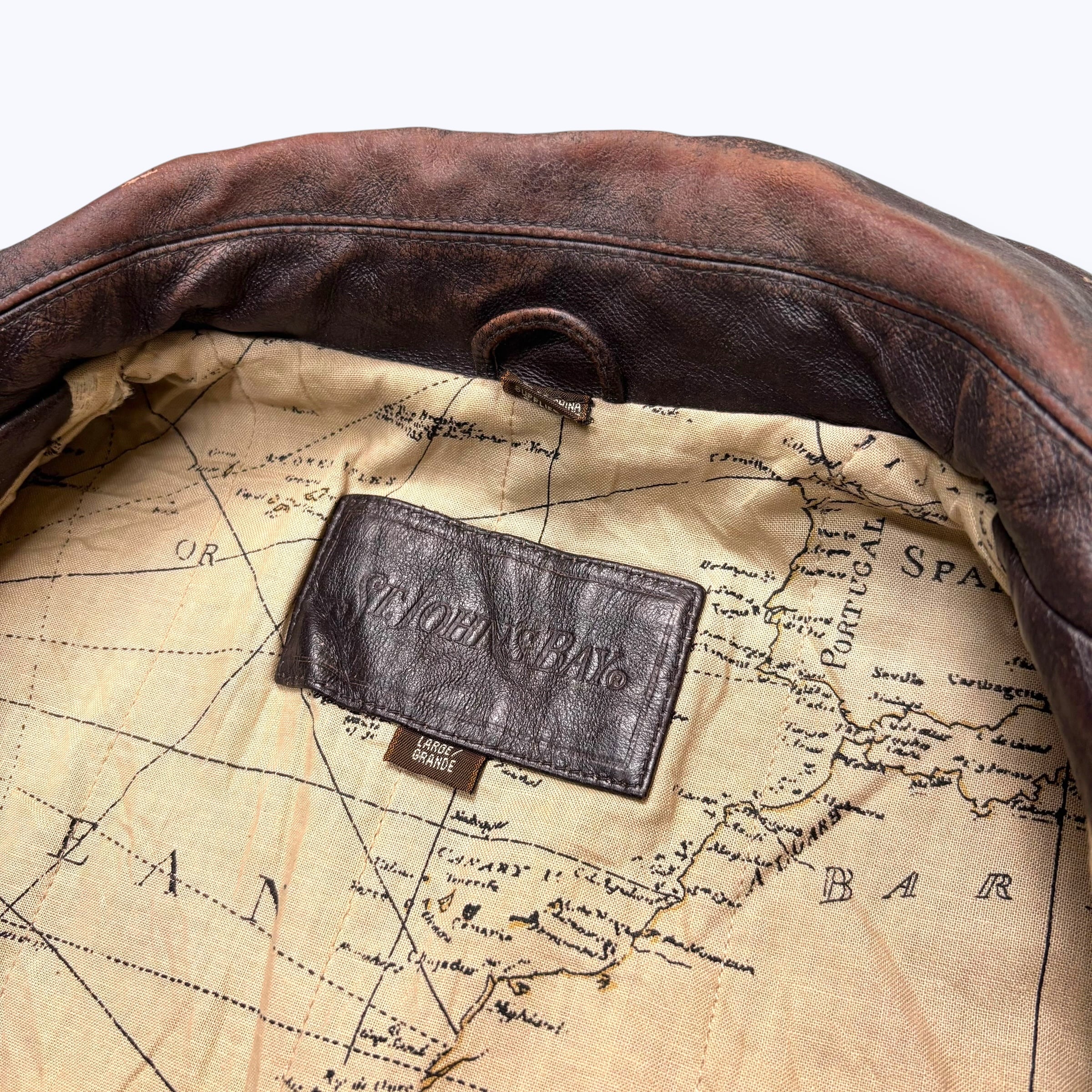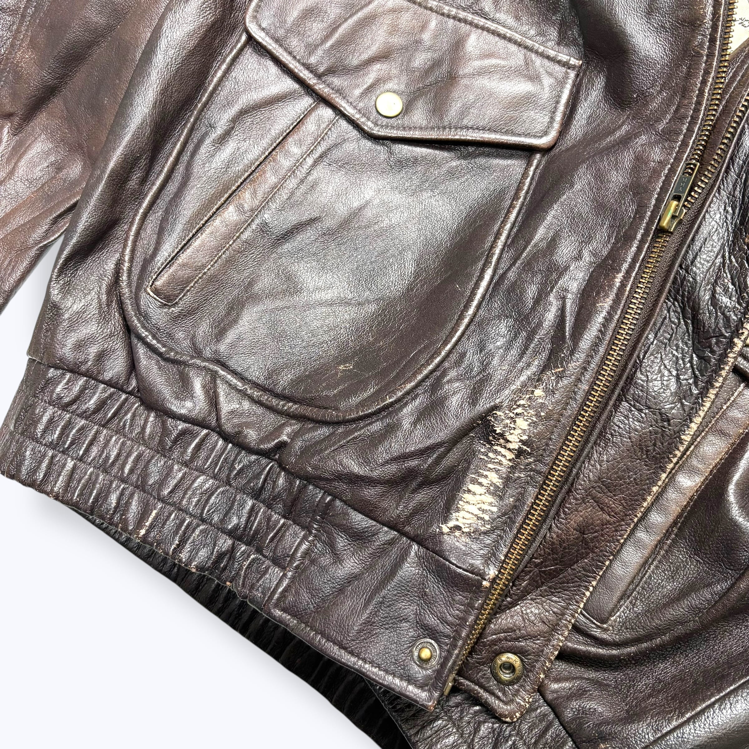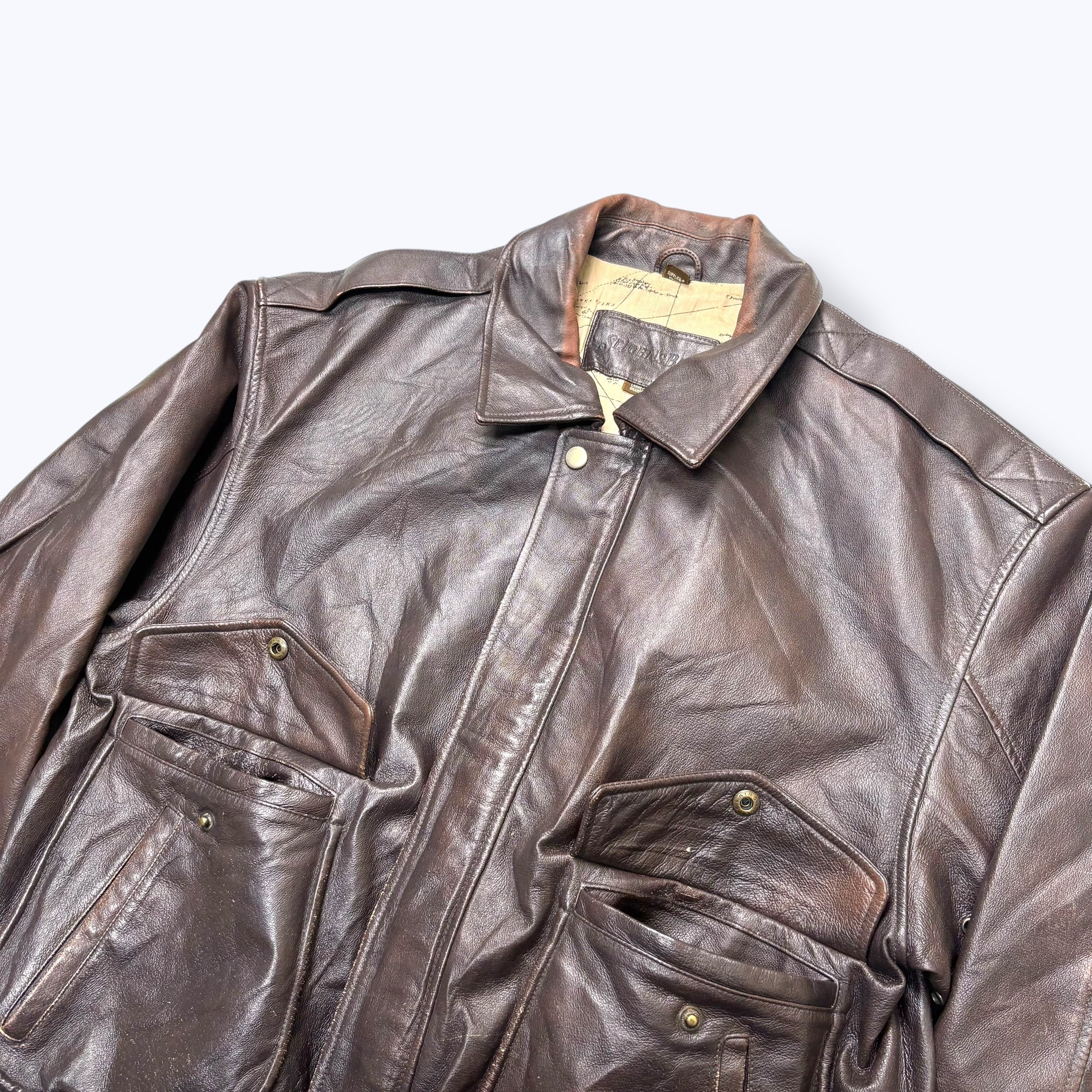 90s-2000s ST JOHN'S BAY A-2type Leather Jacket 【L】 90年代 2000年代 セントジョンズベイ ミリタリー レザー フライト ジャケット 地図 古着 ヴィンテージ