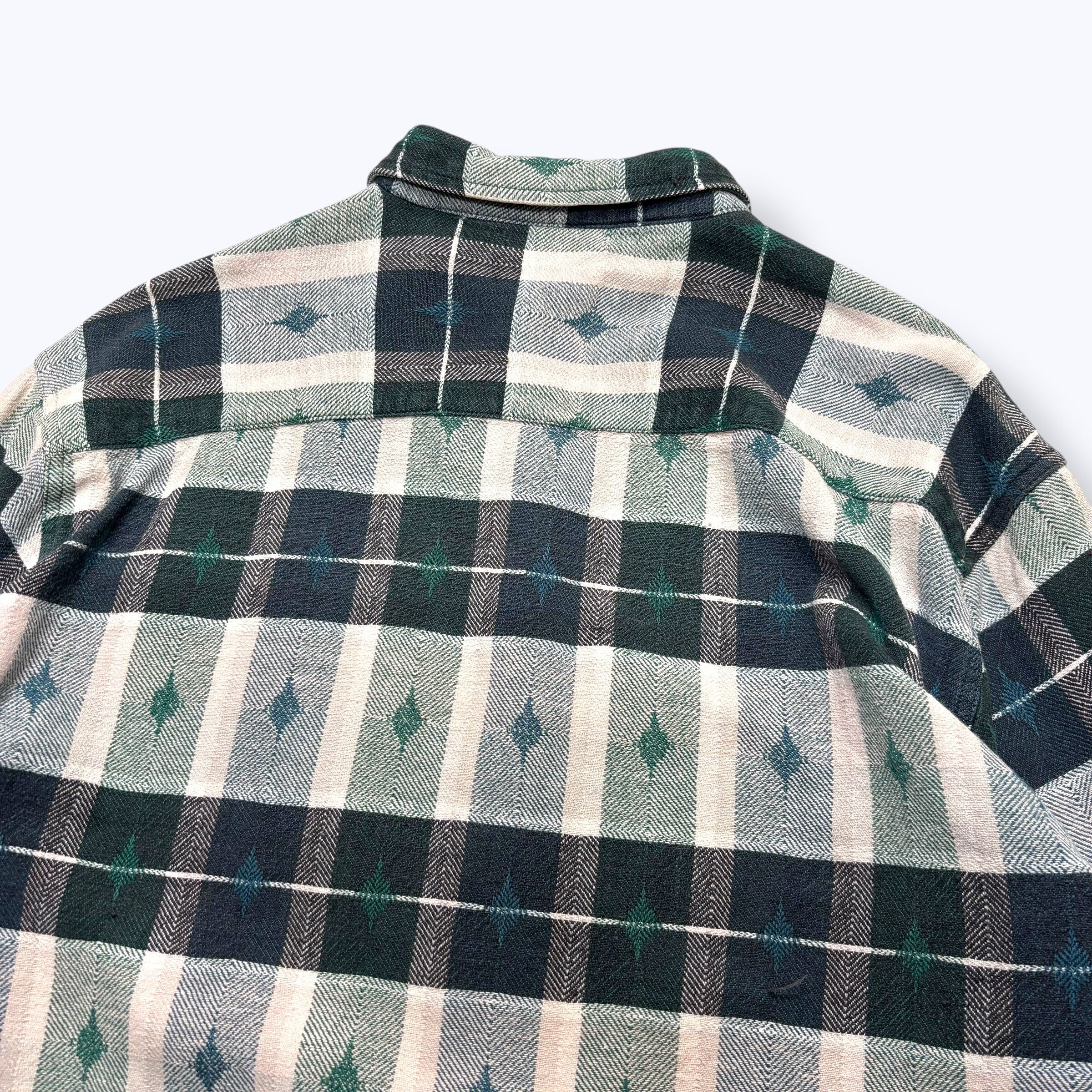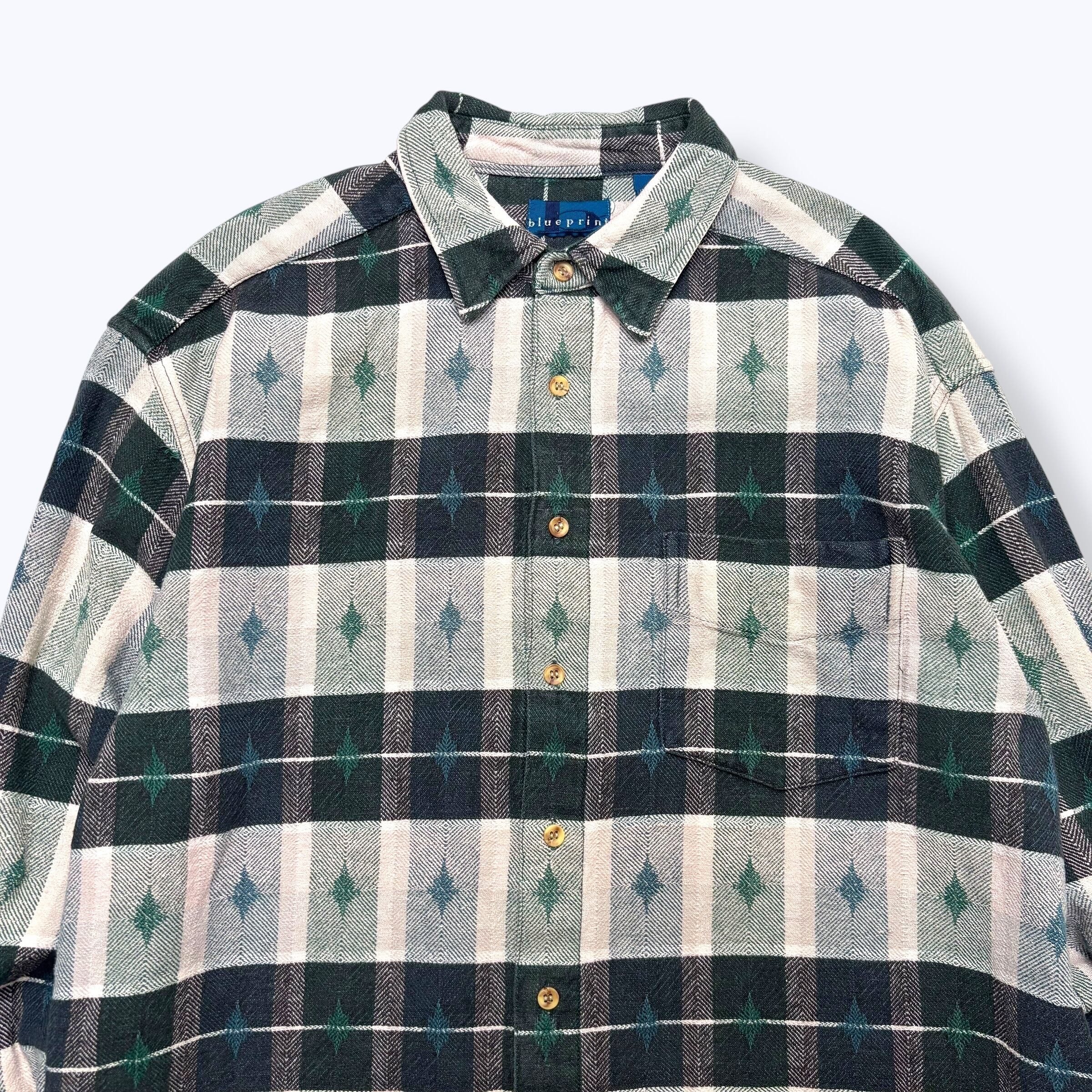 90s blue print Heavy Flannel Shirts 【L】 90年代 グランジ ネルシャツ ヘビネル ヘビーネルシャツ グリーン コットン 長袖 古着 ヴィンテージ