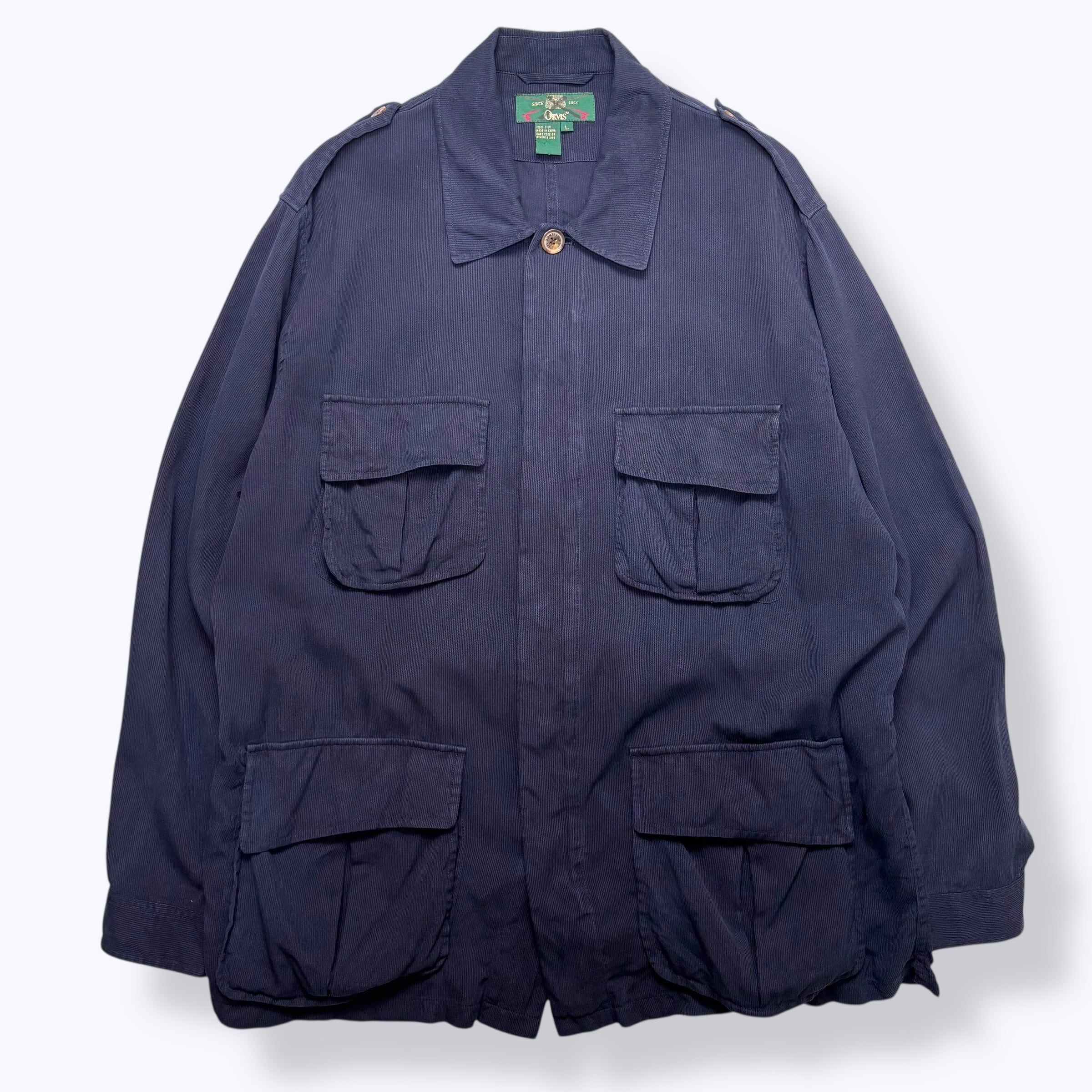 80s-90s ORVIS Silk Jungle Fatigue Jacket 【L】 80年代 90年代 オービス ジャングル ファティーグ シルク ジャケット ネイビー ミリタリー サンプリング 古着 ヴィンテージ