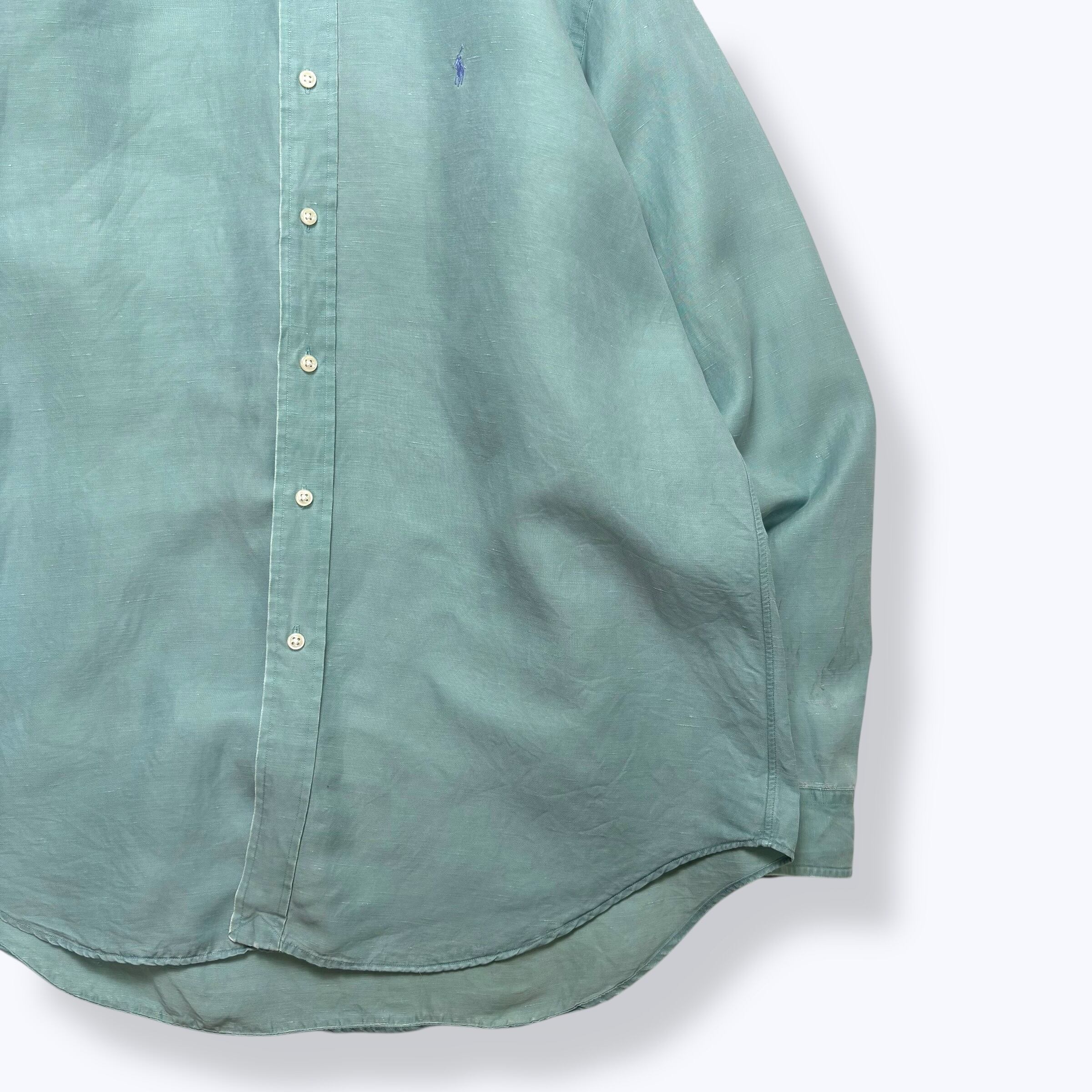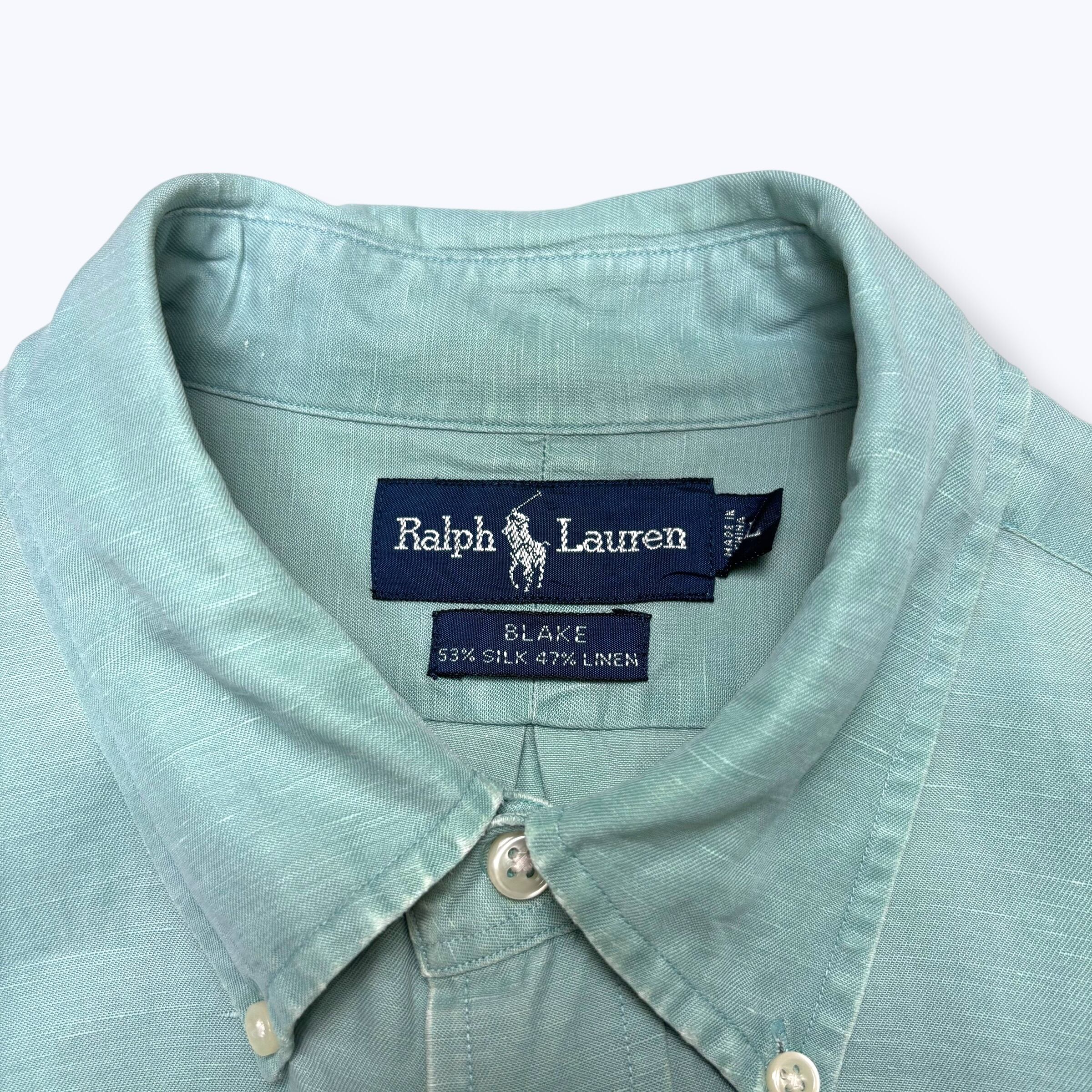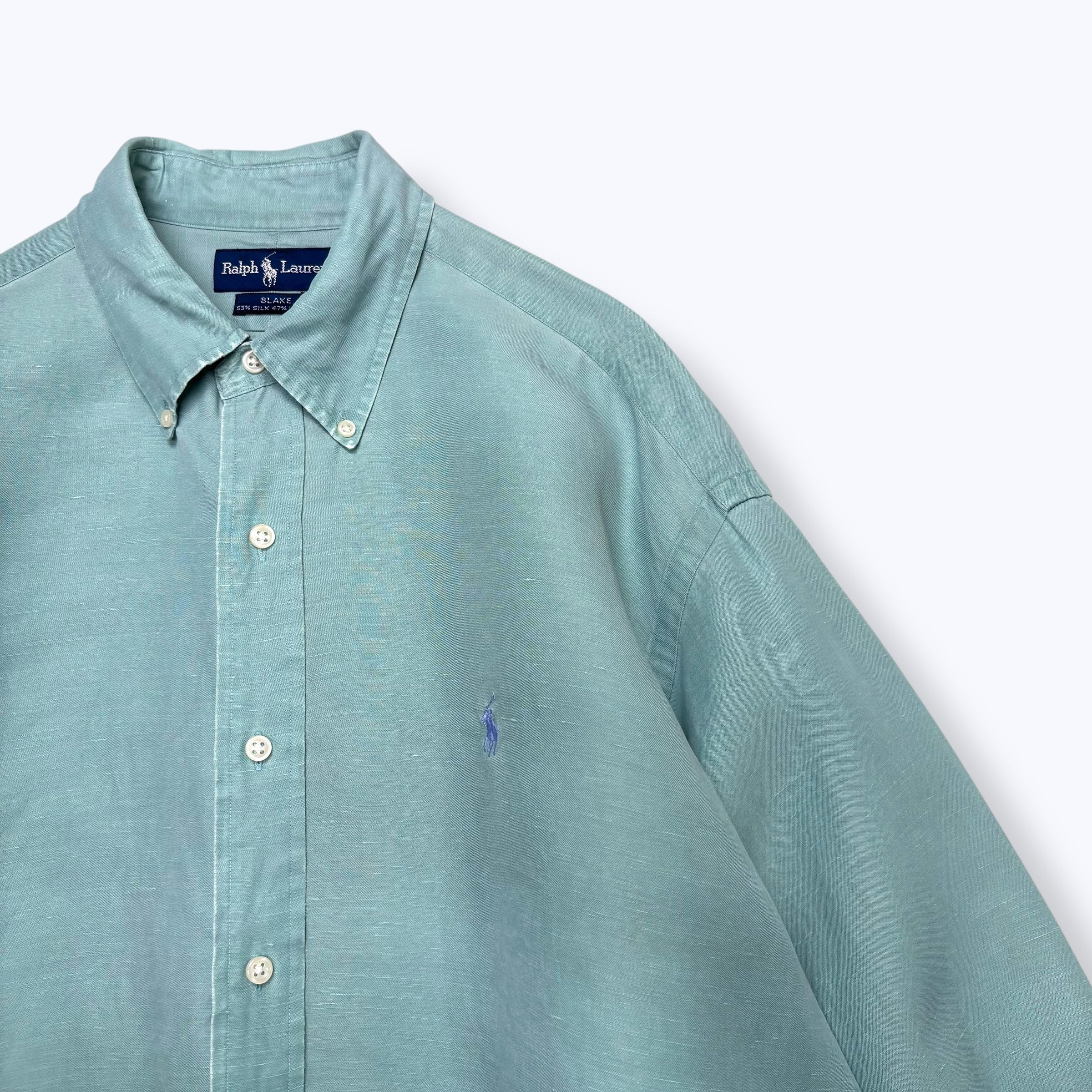 90s Ralph Lauren "BLAKE" SILK&LINEN Shirts 【L】 90年代 ラルフローレン ポロラルフローレン ポロバイラルフローレン シルクシャツ リネンシャツ ボタンダウンシャツ ティファニーブルー 古着 ヴィンテージ