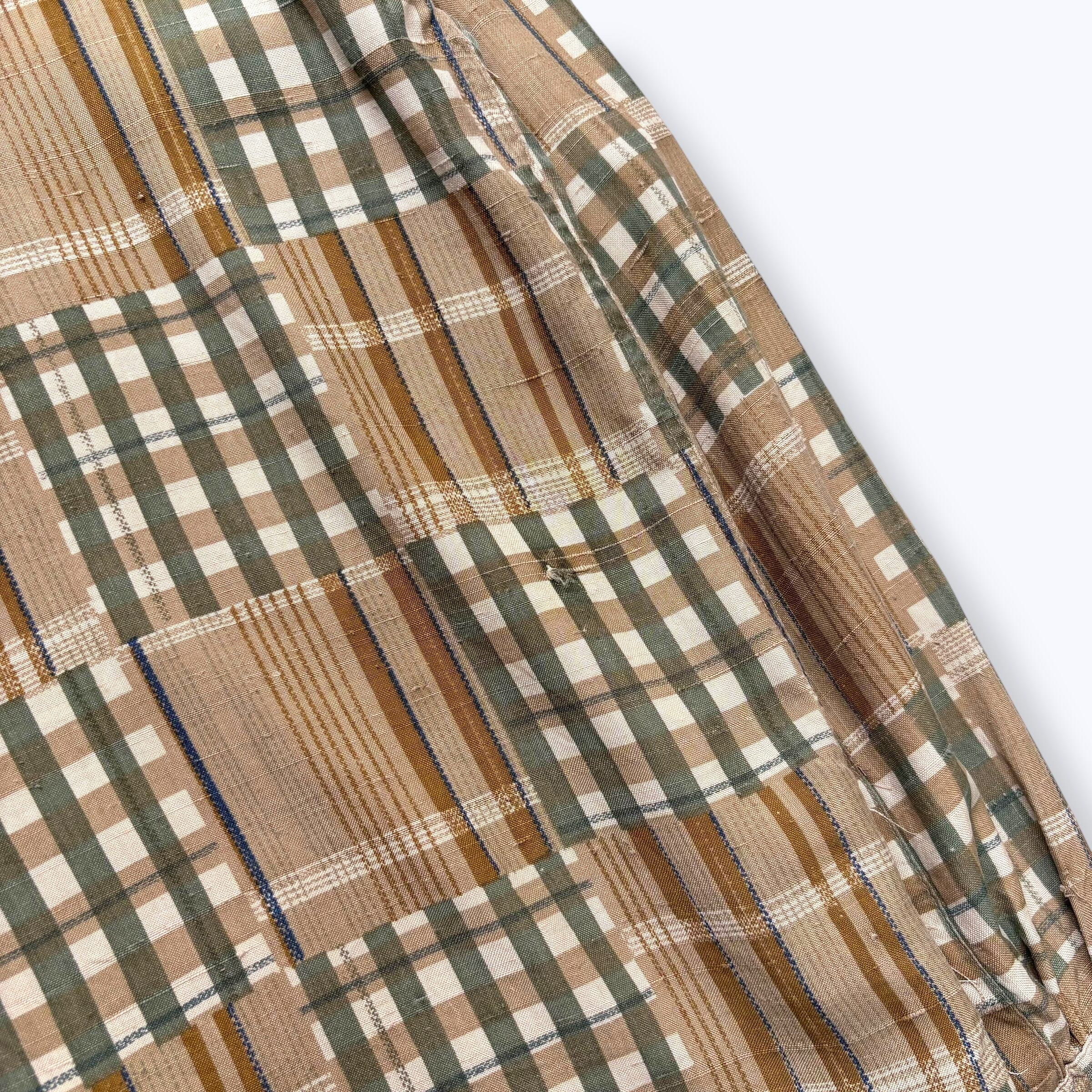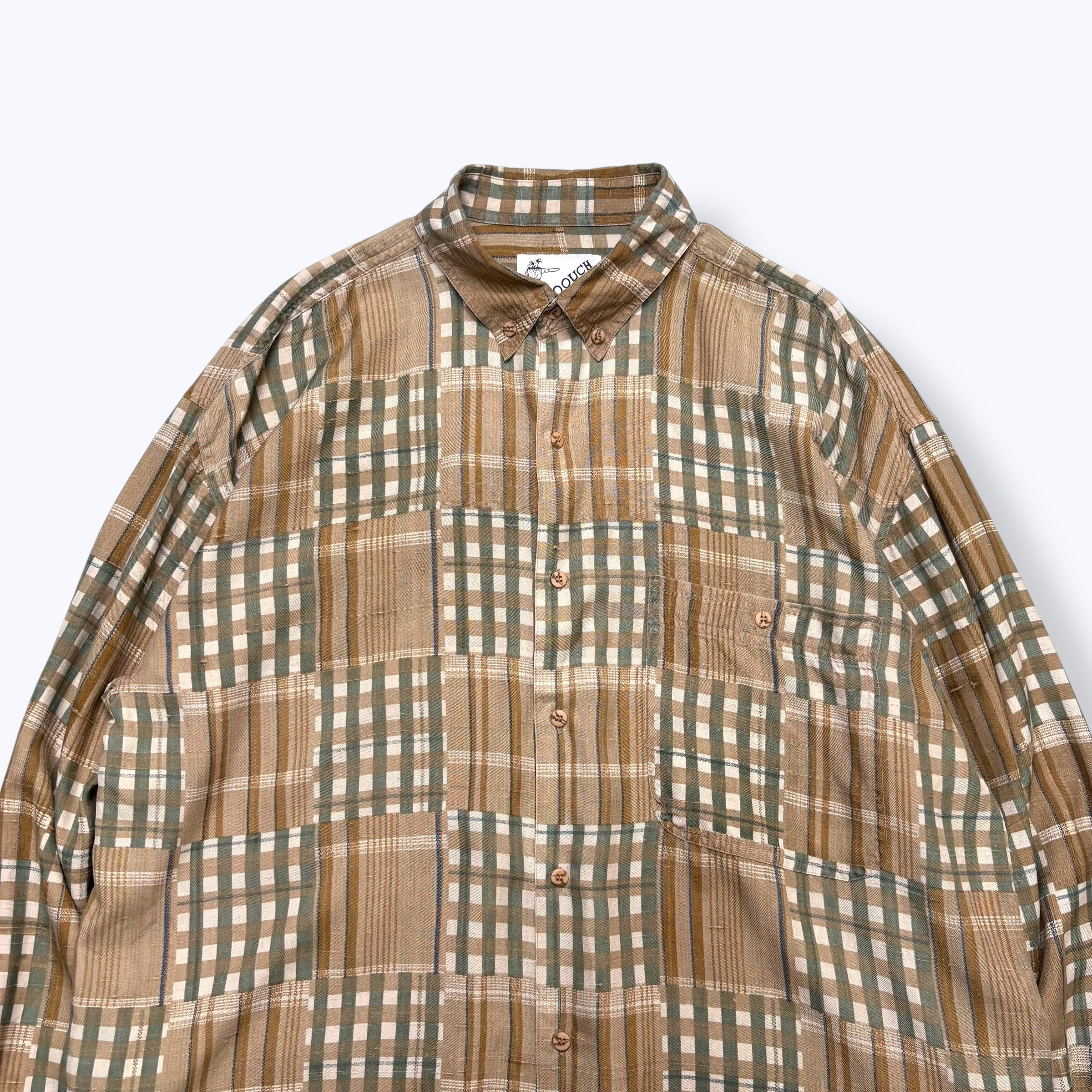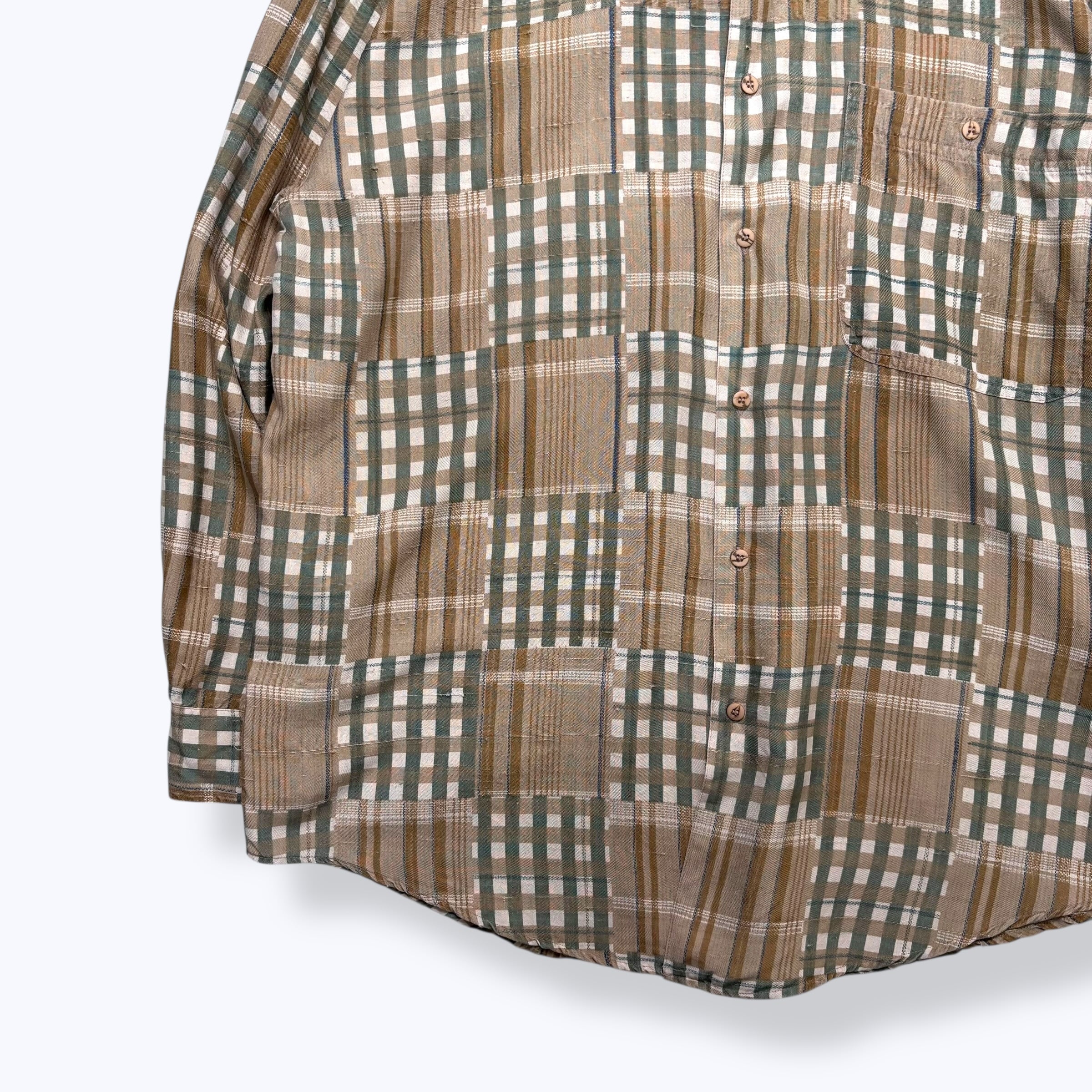 80s~ DEAD STOCK GOOUCH Patchwork Check Silk Shirts 【XL】 80年代 90年代 グーチ パッチワーク チェック シルク シャツ ブラウン 古着 ヴィンテージ デッドストック 未使用