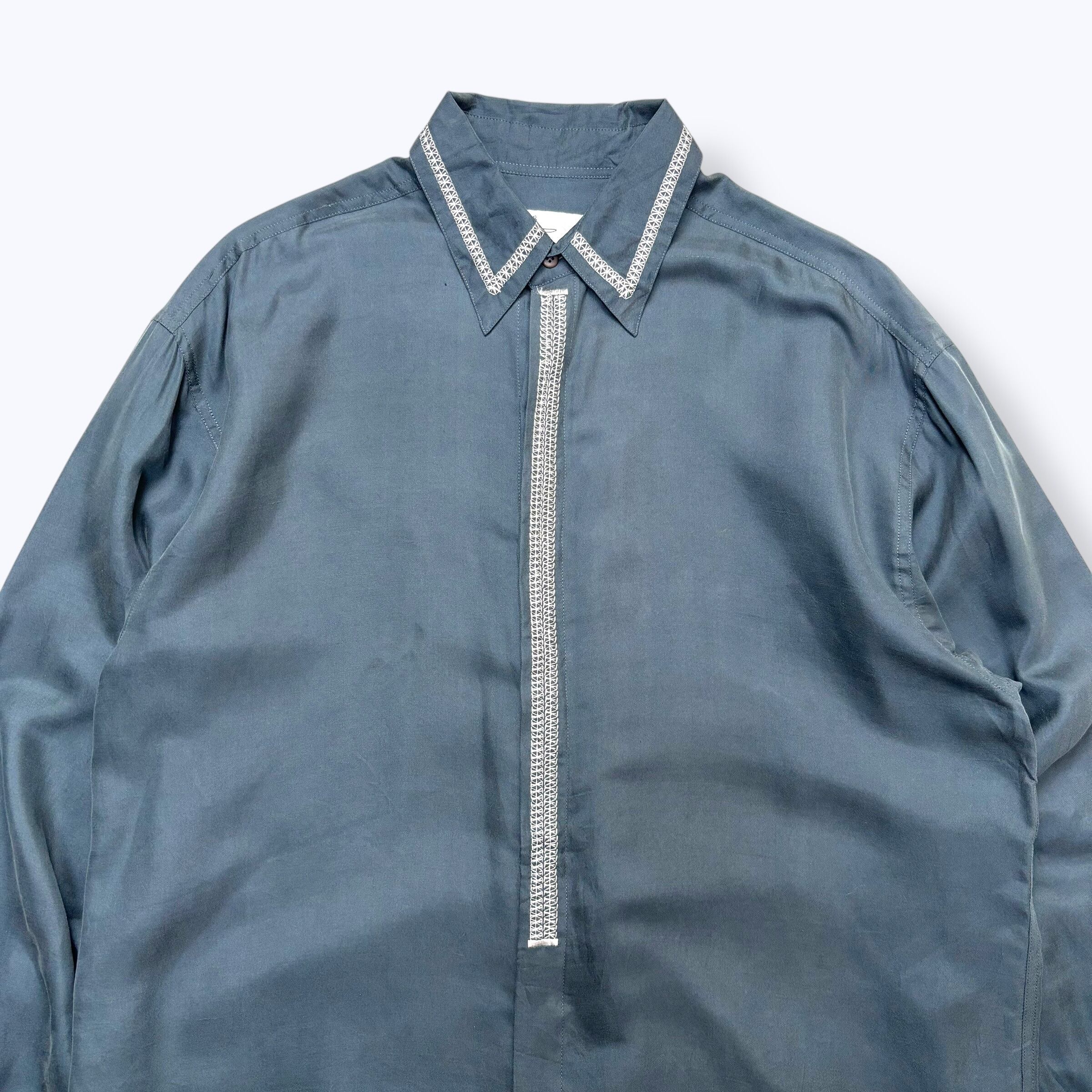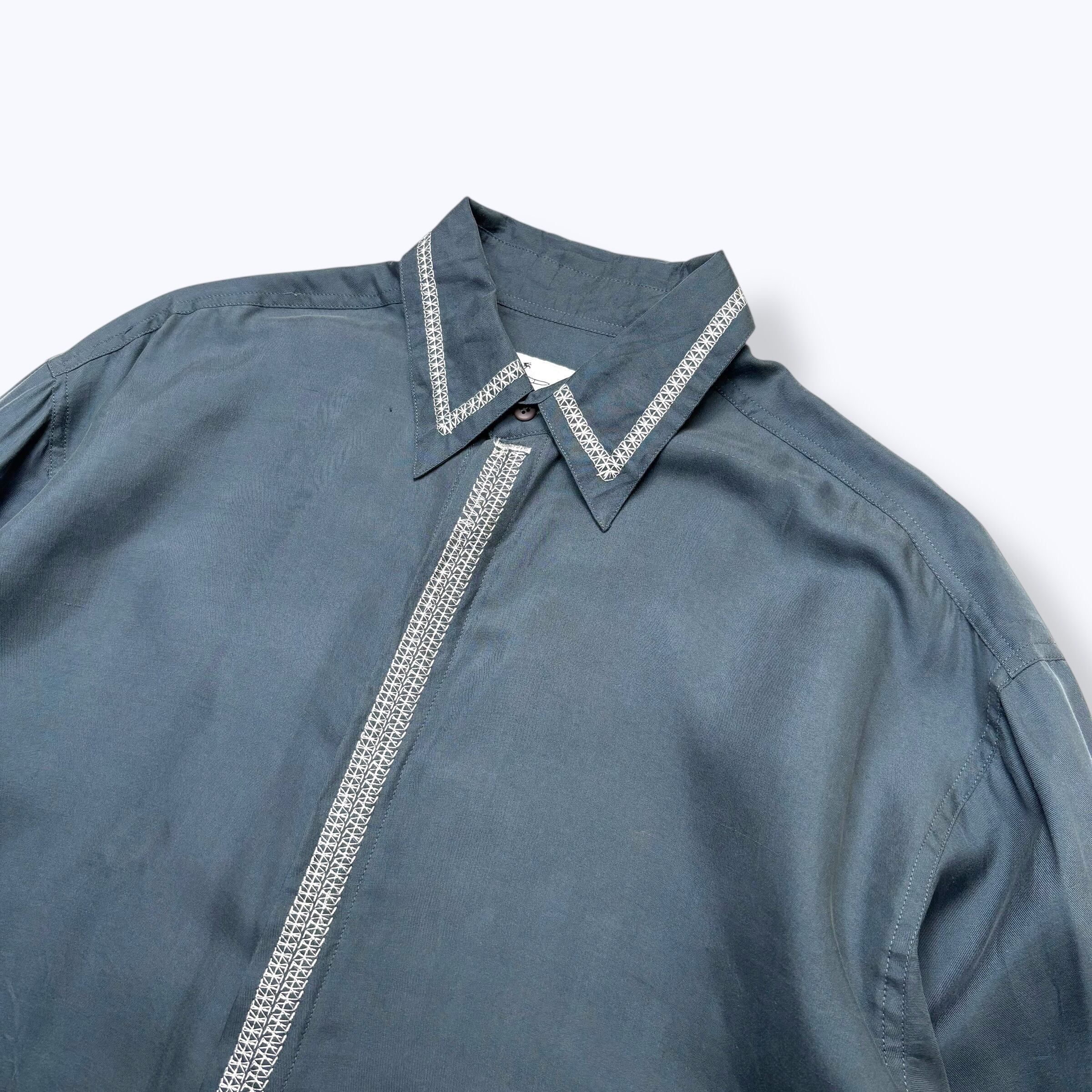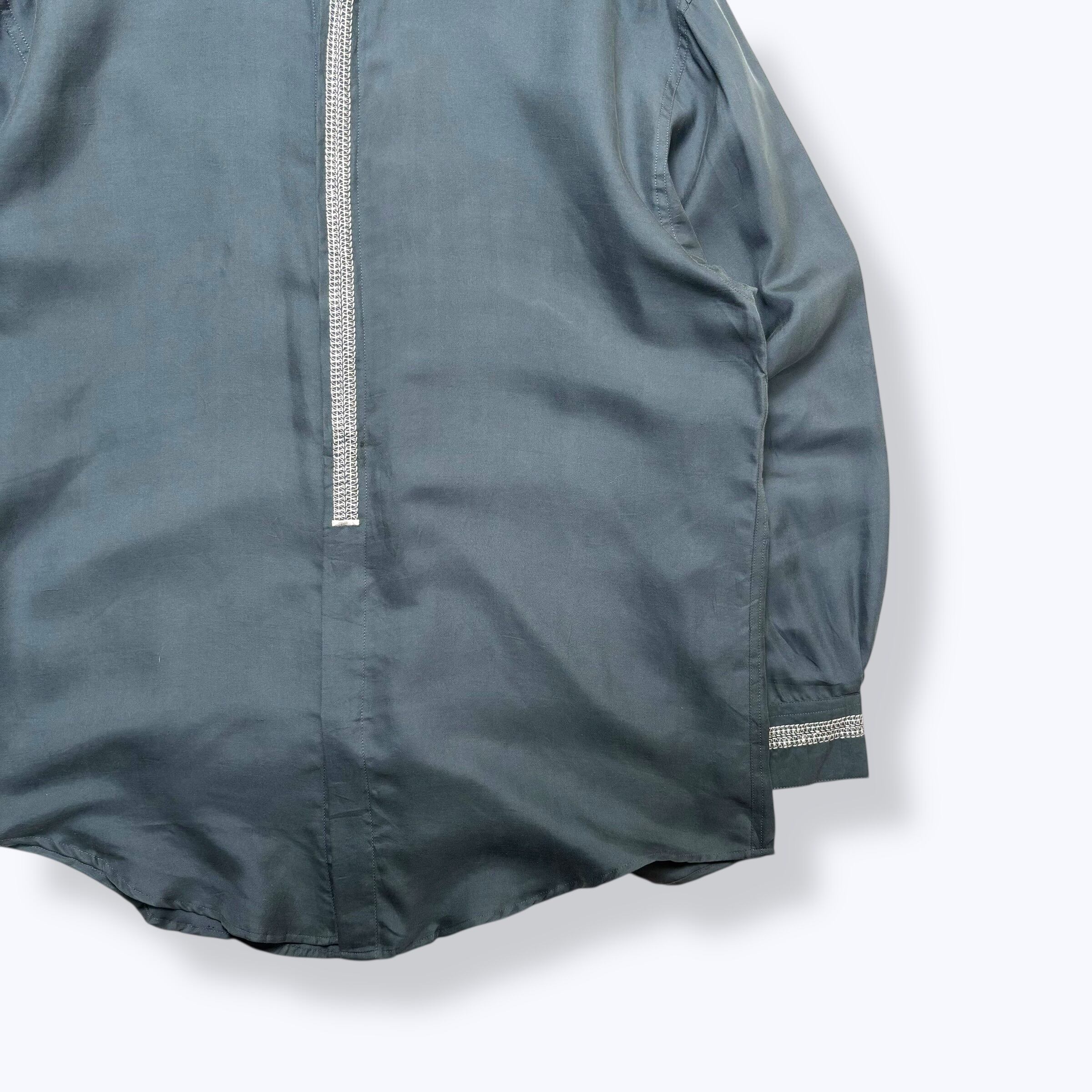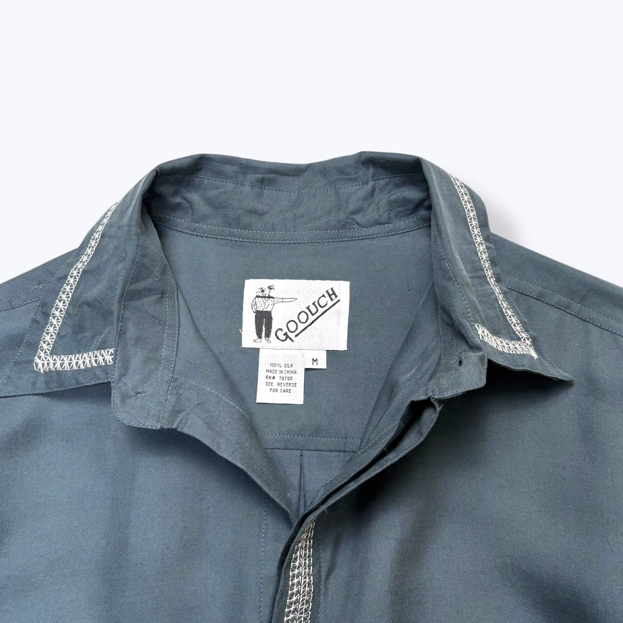 80s~ DEAD STOCK GOOUCH Silk Shirts ② 【M】 80年代 90年代 グーチ 比翼 シルク シャツ グリーン 古着 ヴィンテージ デッドストック 未使用