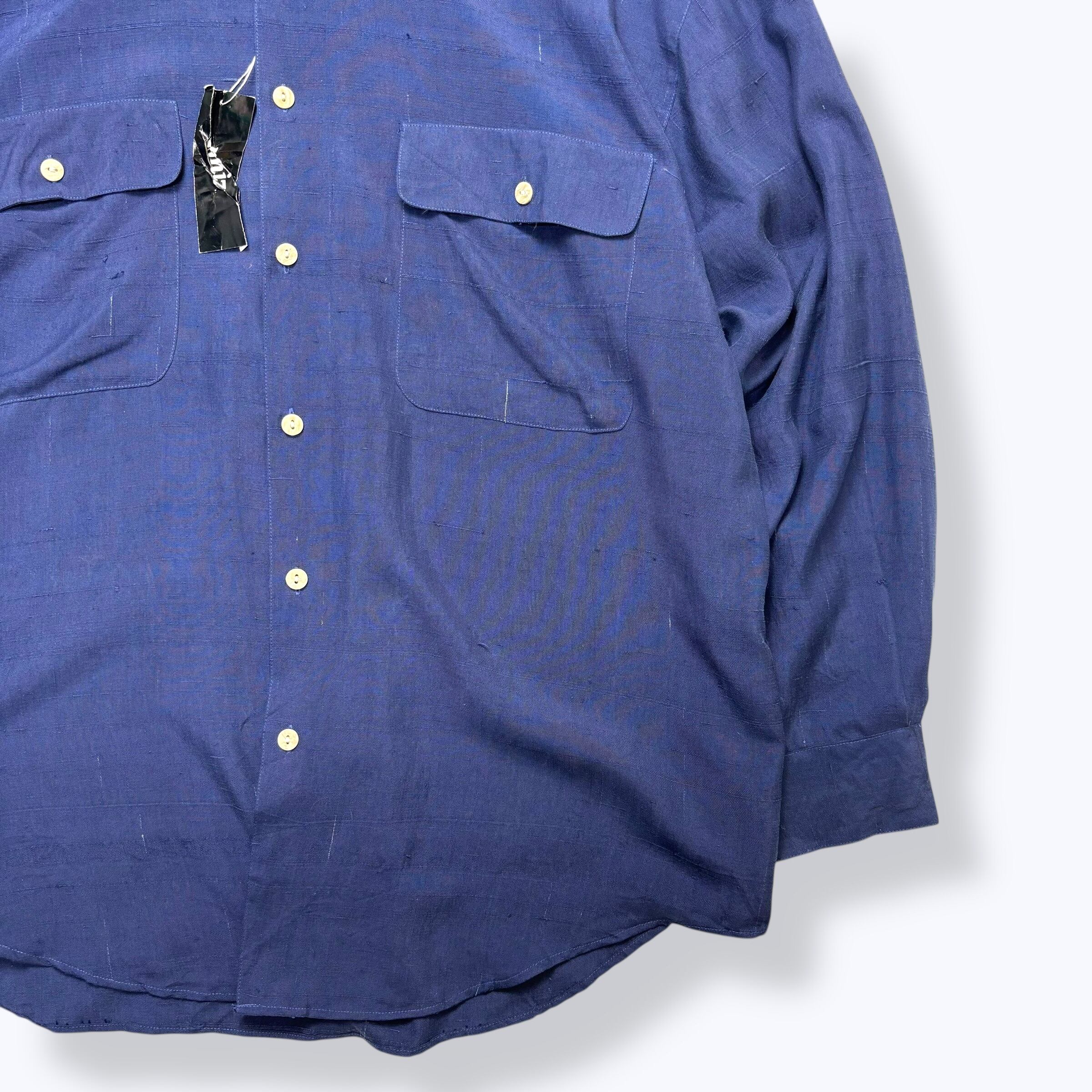 80s~ DEAD STOCK Phiz by GOOUCH Silk Shirts ① 【XL】 80年代 90年代 グーチ 無地 シルク シャツ ネイビー 古着 ヴィンテージ デッドストック 未使用