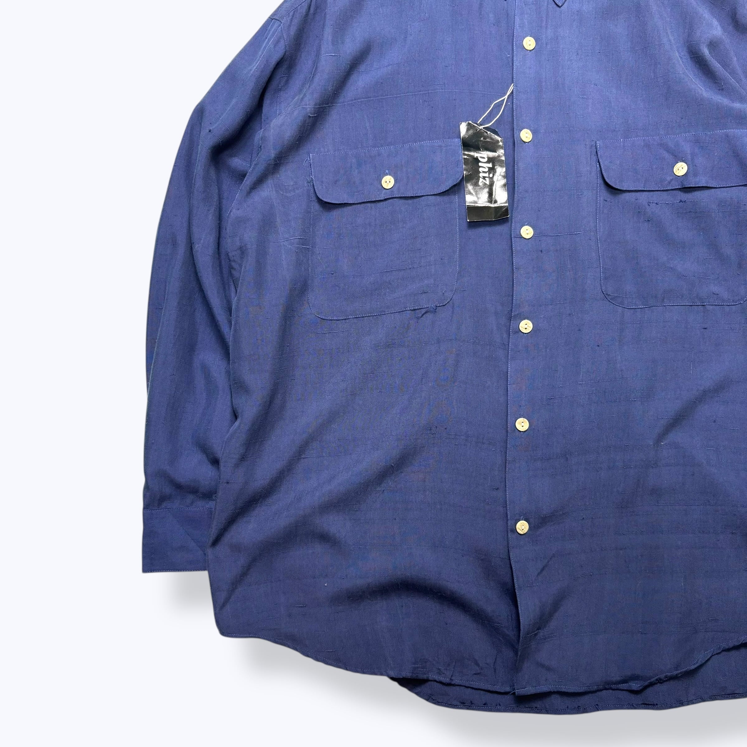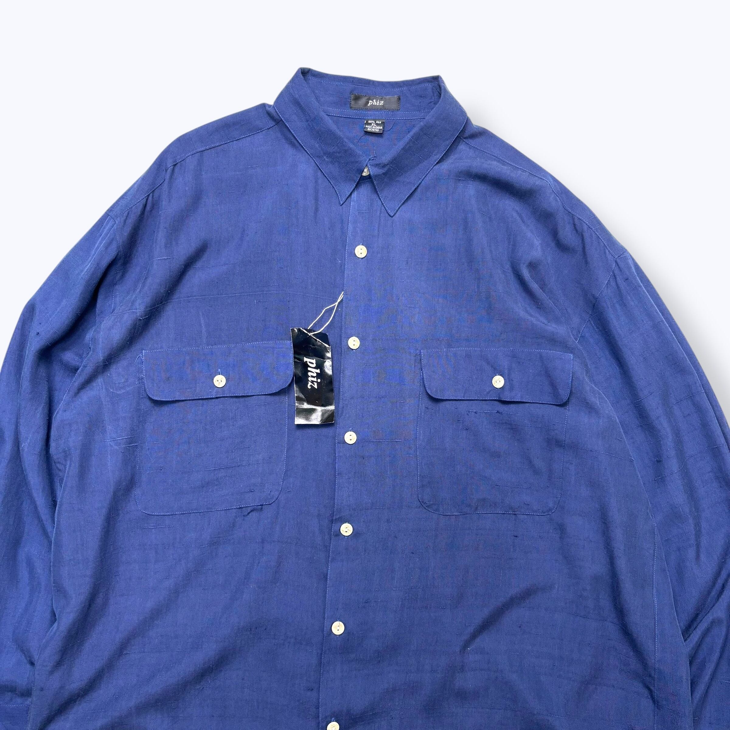 80s~ DEAD STOCK Phiz by GOOUCH Silk Shirts ② 【XL】 80年代 90年代 グーチ 無地 シルク シャツ ネイビー 古着 ヴィンテージ デッドストック 未使用