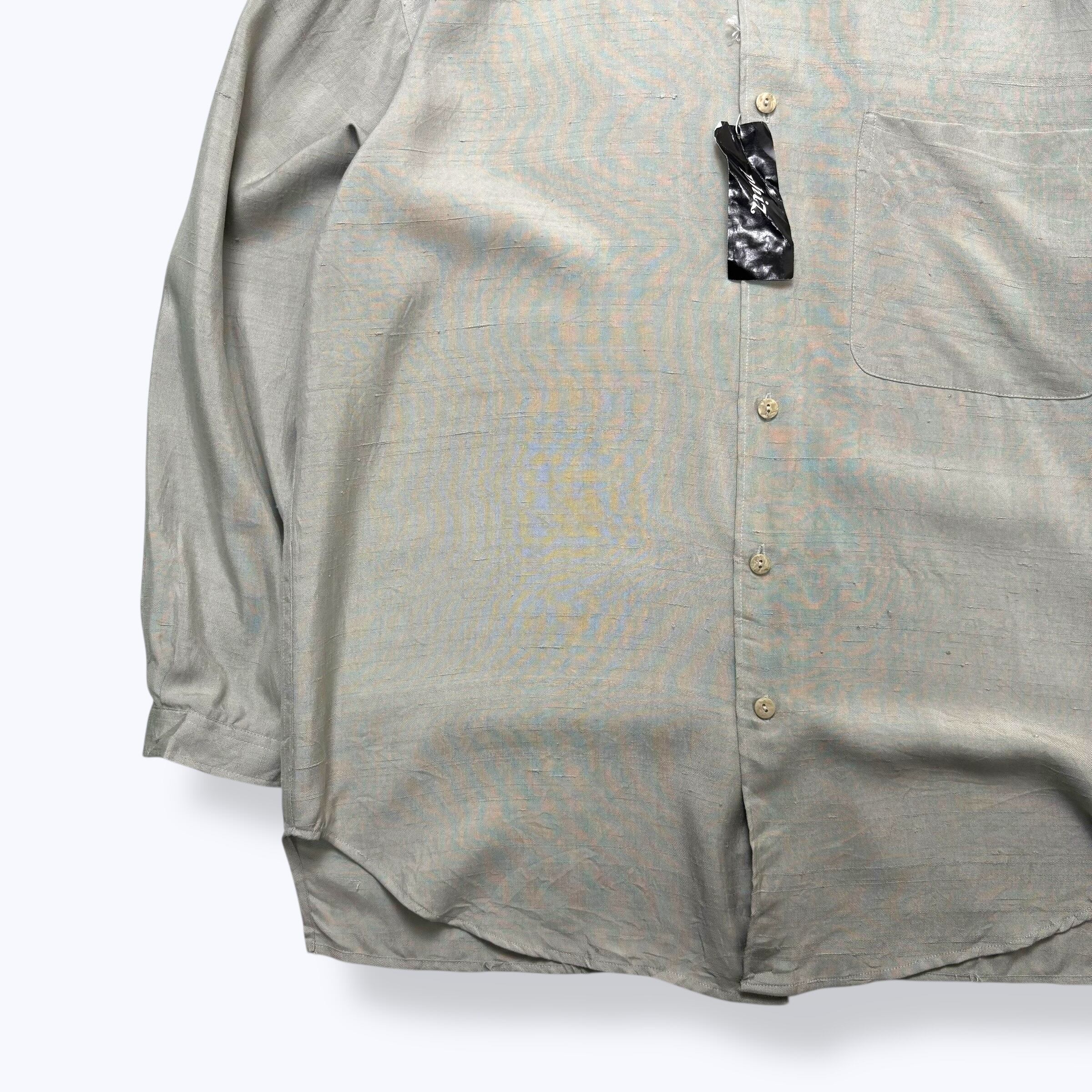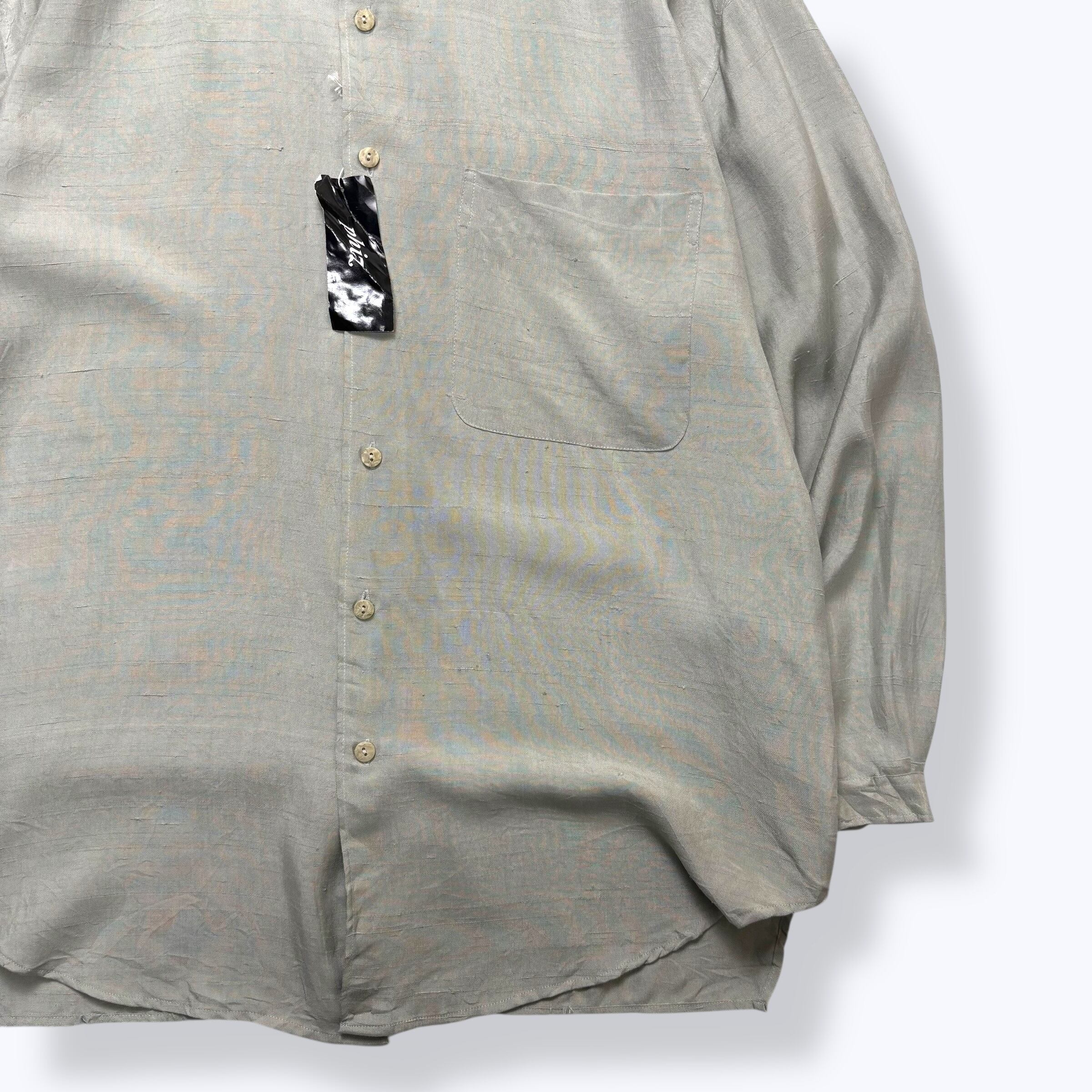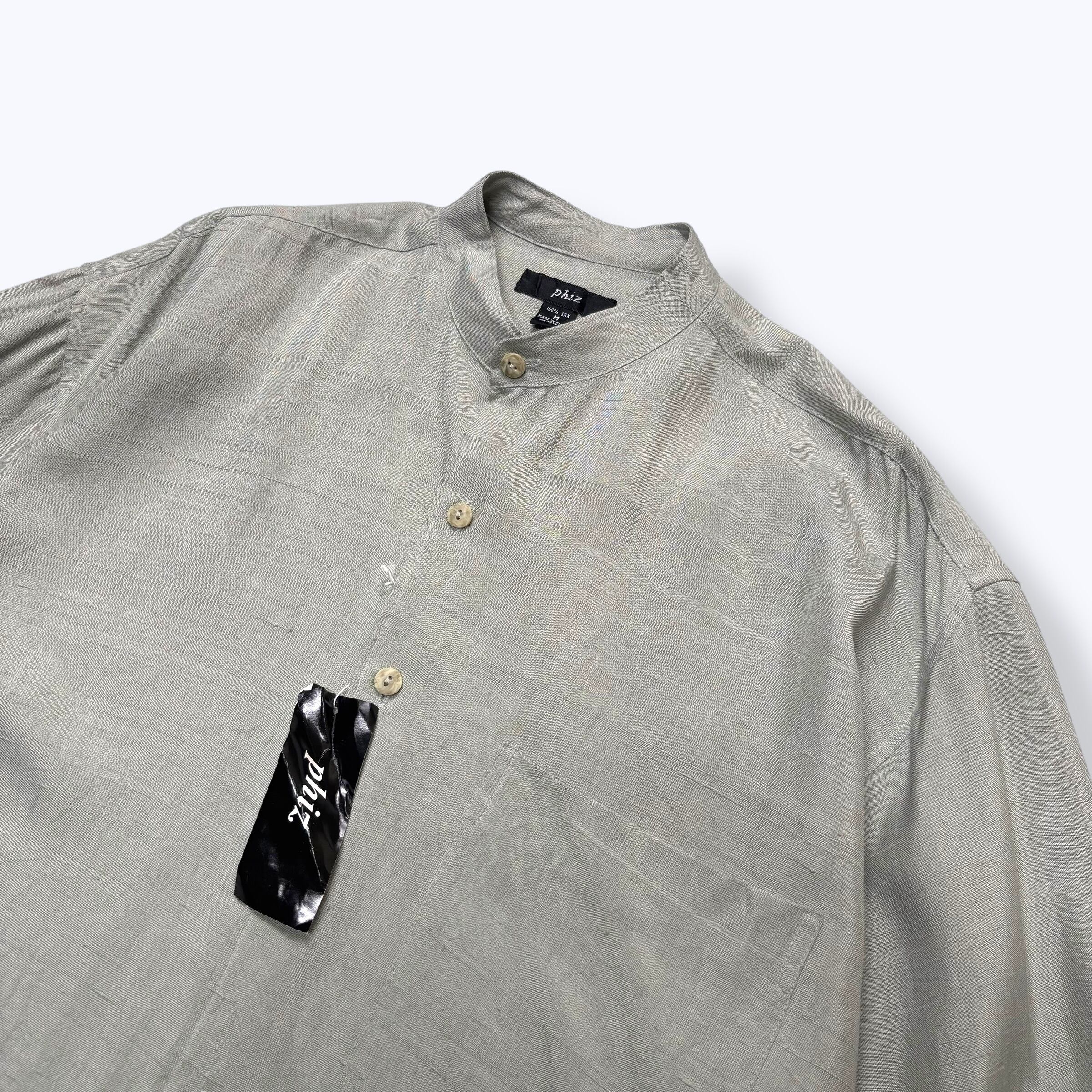 80s~ DEAD STOCK Phiz by GOOUCH No Collar Silk Shirts 【M】 80年代 90年代 フィズ グーチ 無地 ノーカラー シルク シャツ グリーン 古着 ヴィンテージ デッドストック 未使用