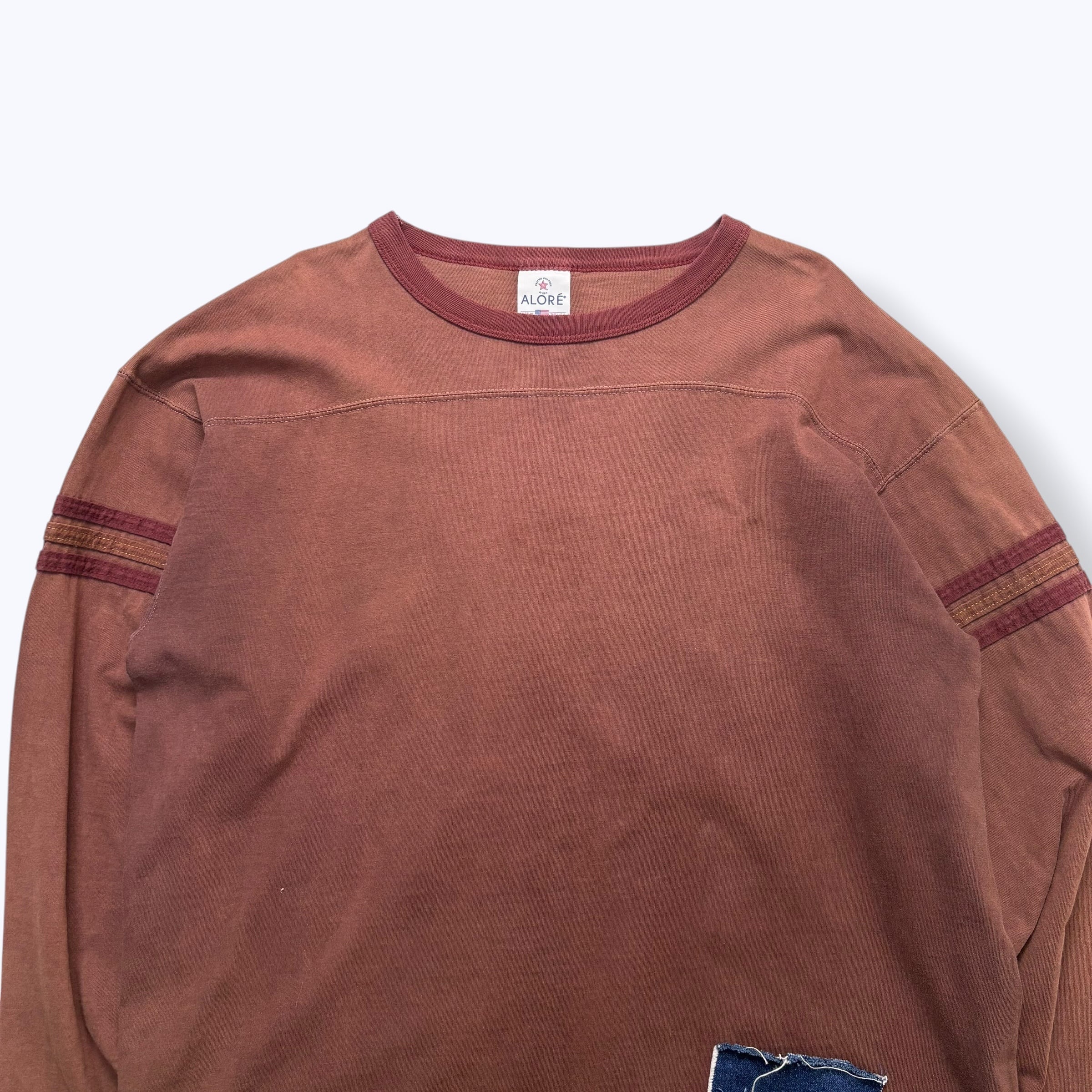 90s ALORE Football L/S T-Shirts Made in USA 【XL】 90年代 フットボール Tシャツ 丸胴 バインダーネック デニム パッチワーク ロンT USA製 アメリカ製