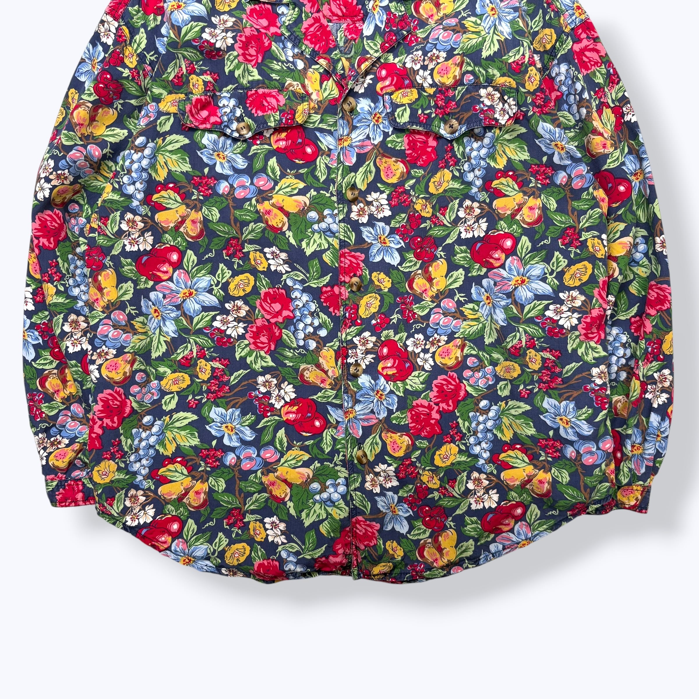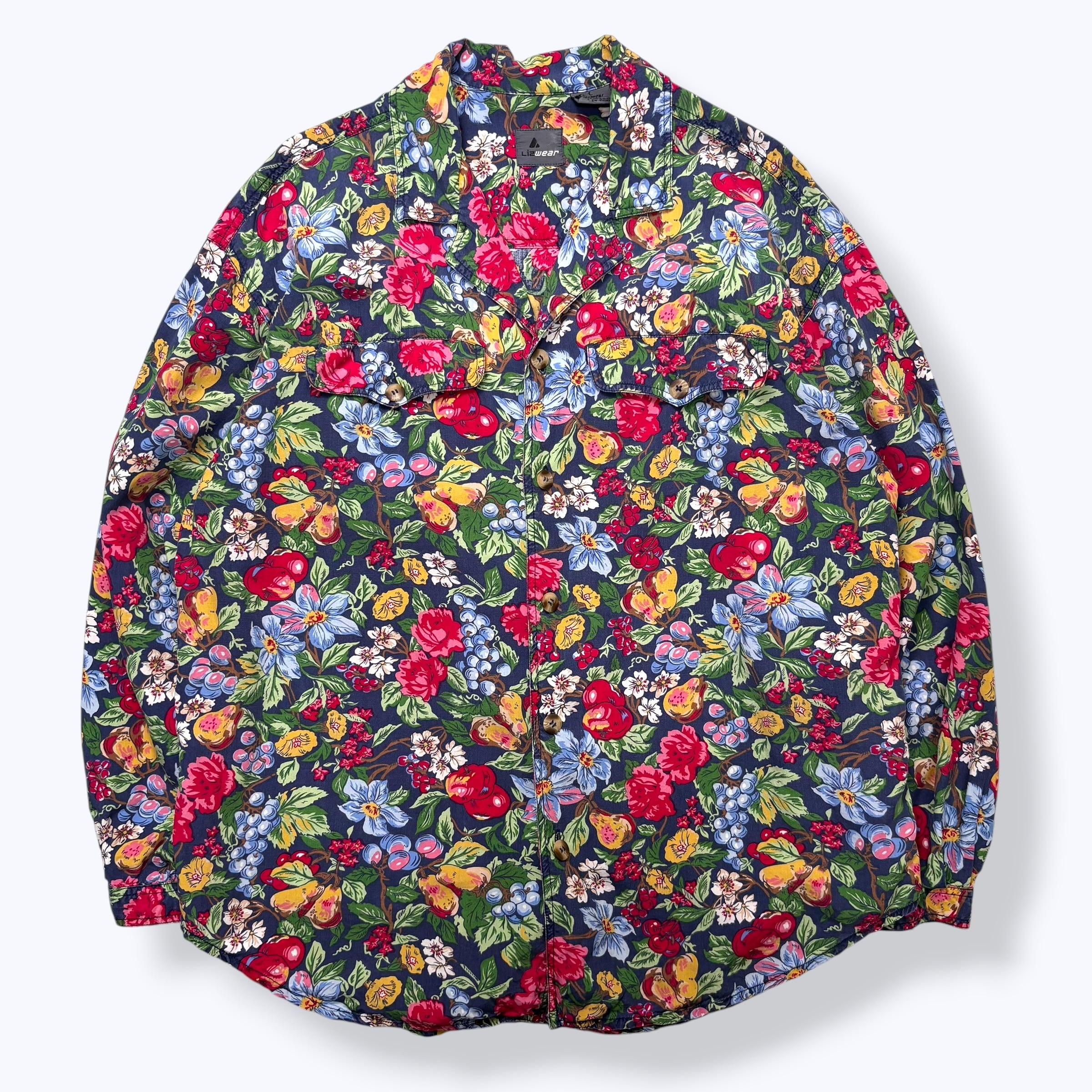 90s Lizwear Flower Patterned L/S Open Collar Rayon Shirts 【L】 90年代 リズウェア 花柄 オープンカラー レーヨン シャツ 古着 ヴィンテージ