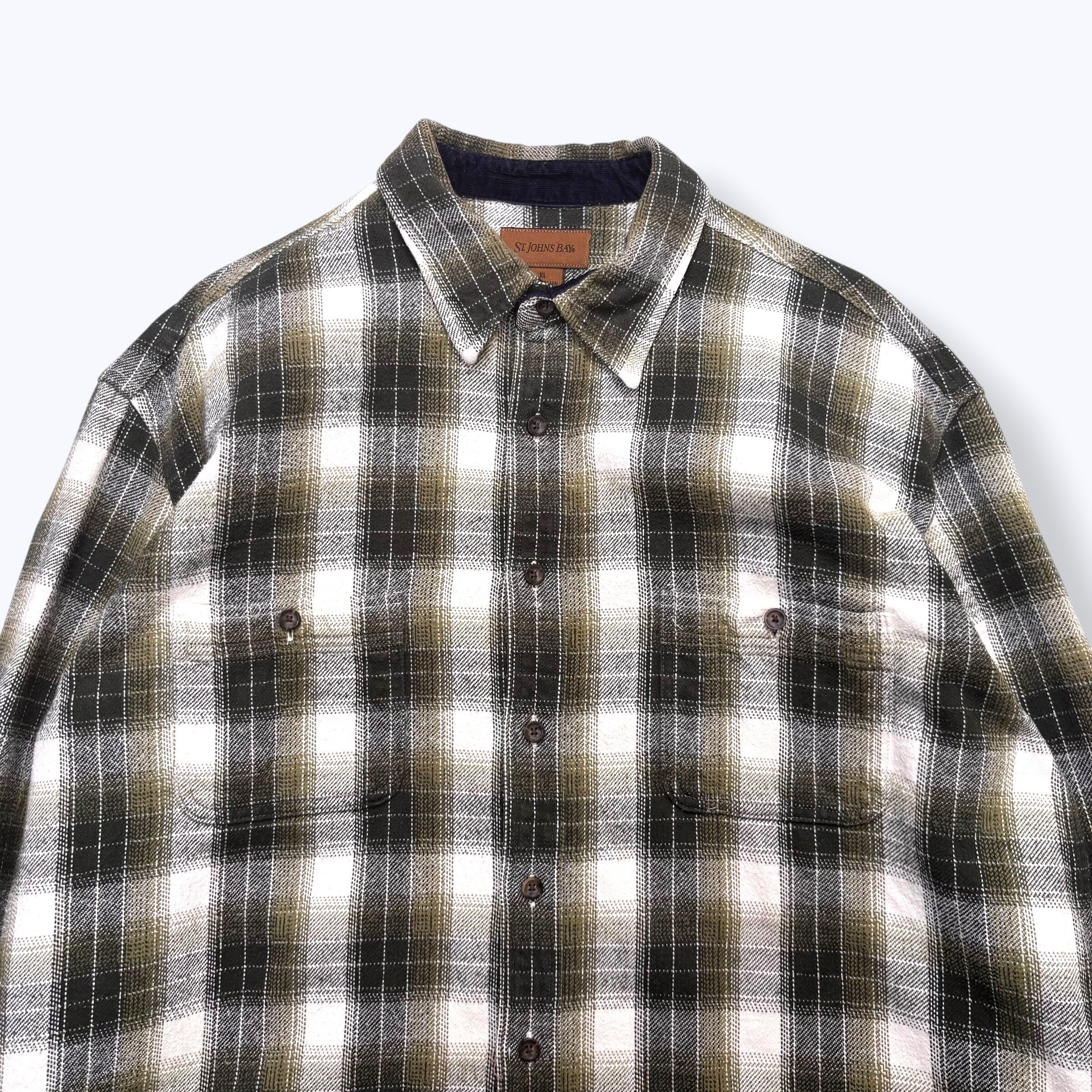 2000s ST.JOHN'S BAY Ombre Heavy Flannel Shirts 【XL】 2000年代 y2k セントジョンズベイ ヘビー フランネル シャツ ヘビーネルシャツ ヘビネル グリーン オンブレ シャドー チェック 古着 ヴィンテージ