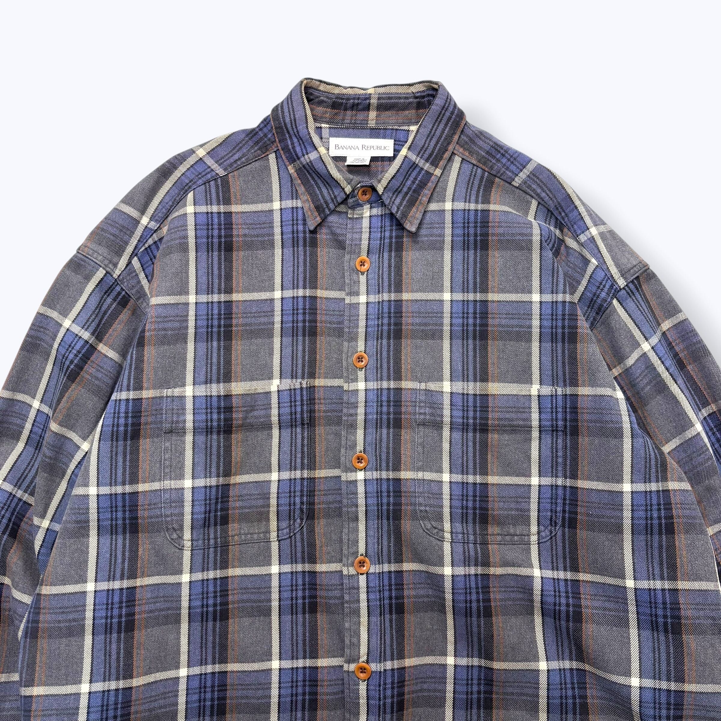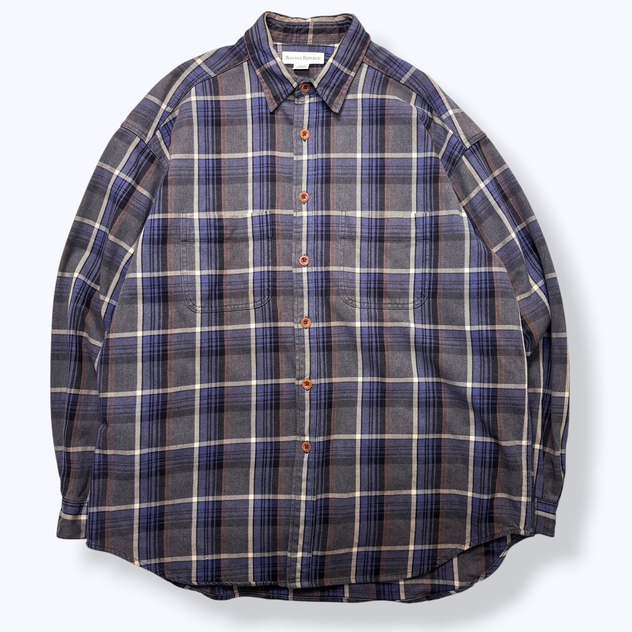 90s BANANA REPUBLIC Heavy Cotton Check Shirts 【XL】 90年代 バナナリパブリック コットン チェック シャツ 古着 ヴィンテージ