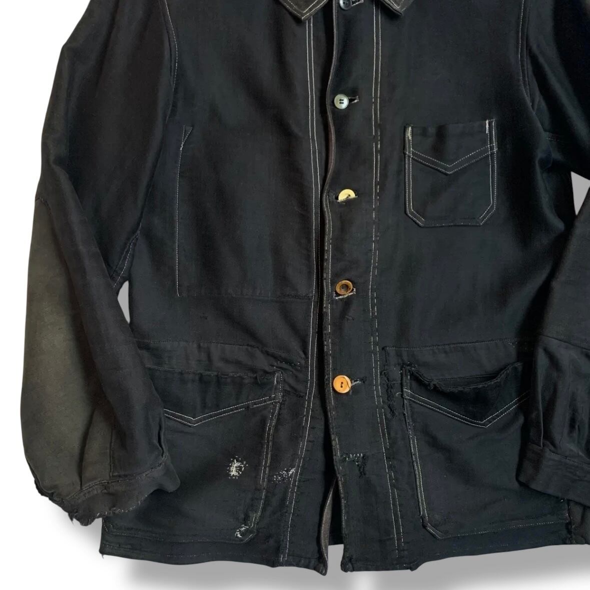 30's~40's French Work Black Moleskin Jacket 30年代 40年代 モールスキンジャケット ブラックモールスキン フレンチワークジャケット フランス製 希少