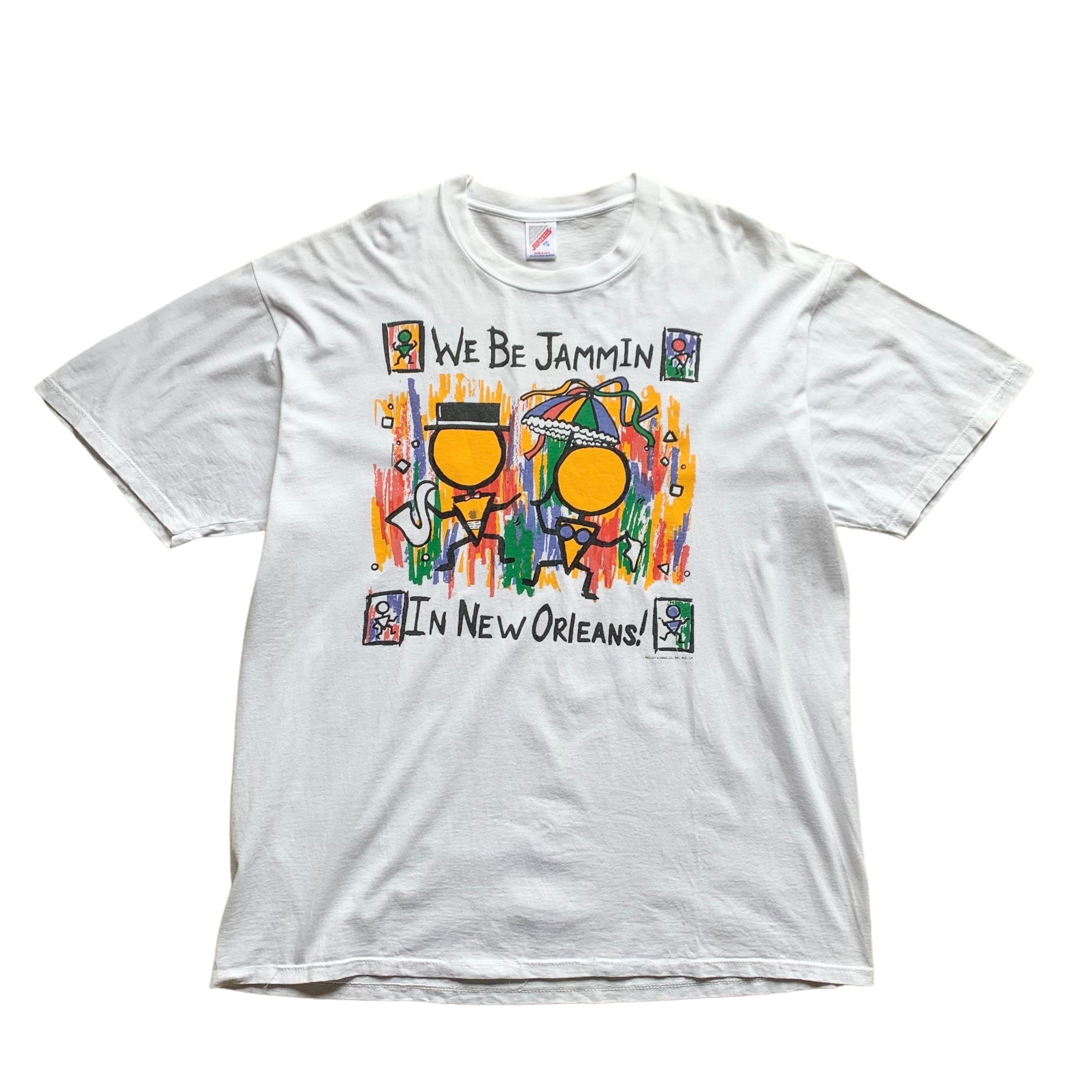90's JERZEES WE BE JAMMIN IN NEW ORLEANS Print T-Shirts 【XXL】 90s 90年代 プリントTシャツ