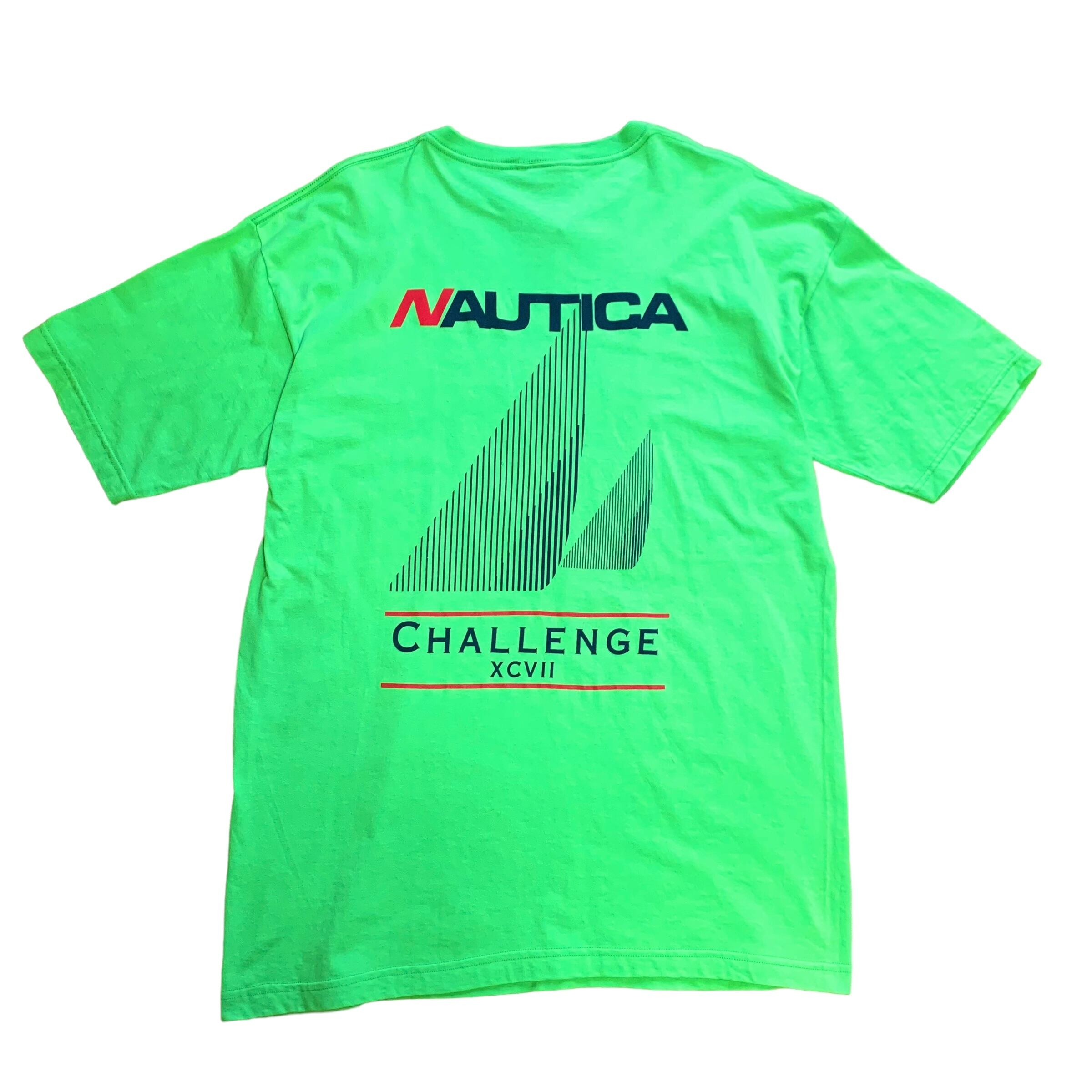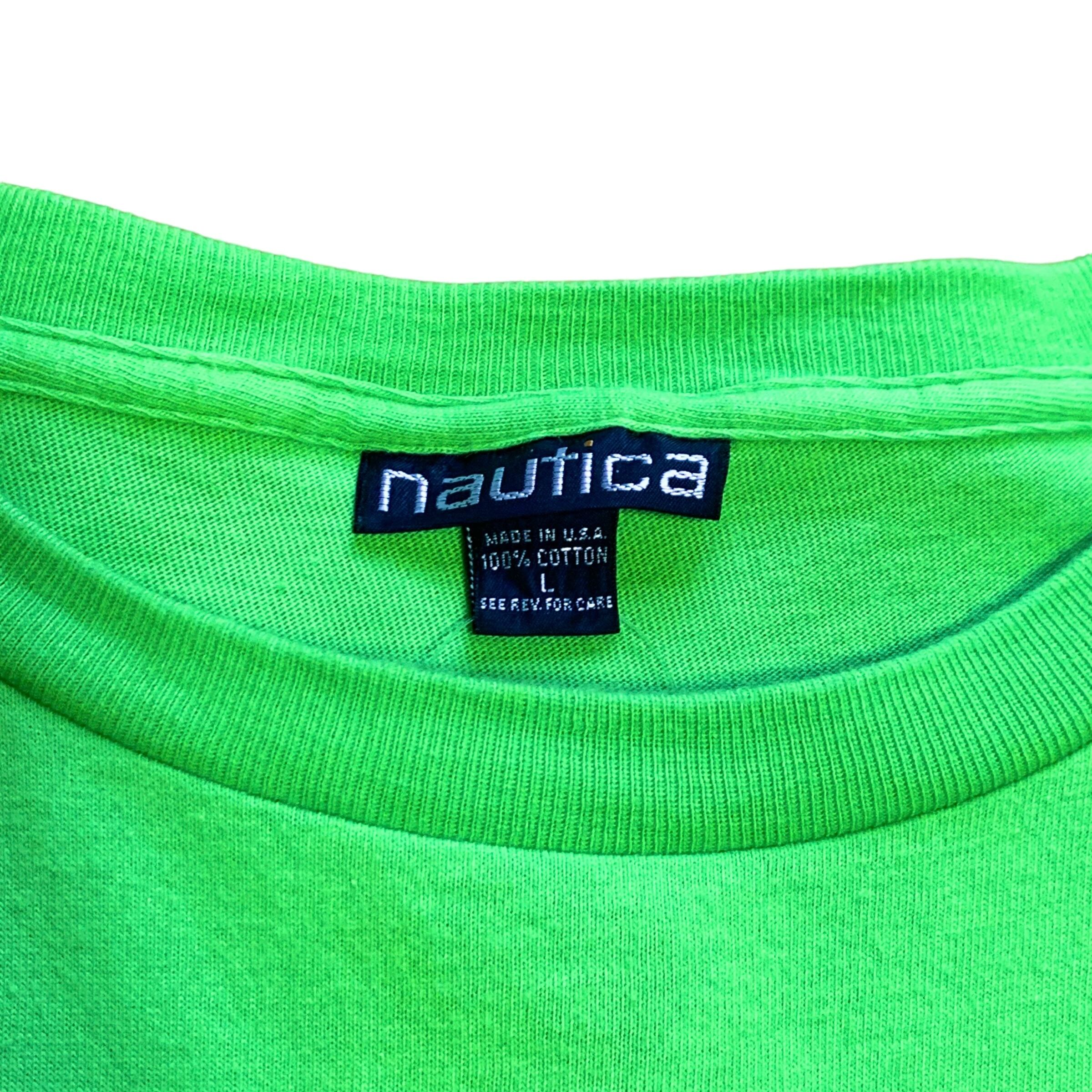 90's NAUTICA Print T-Shirts 【L】 90s 90年代 ノーティカ 蛍光色 小文字タグ プリントTシャツ