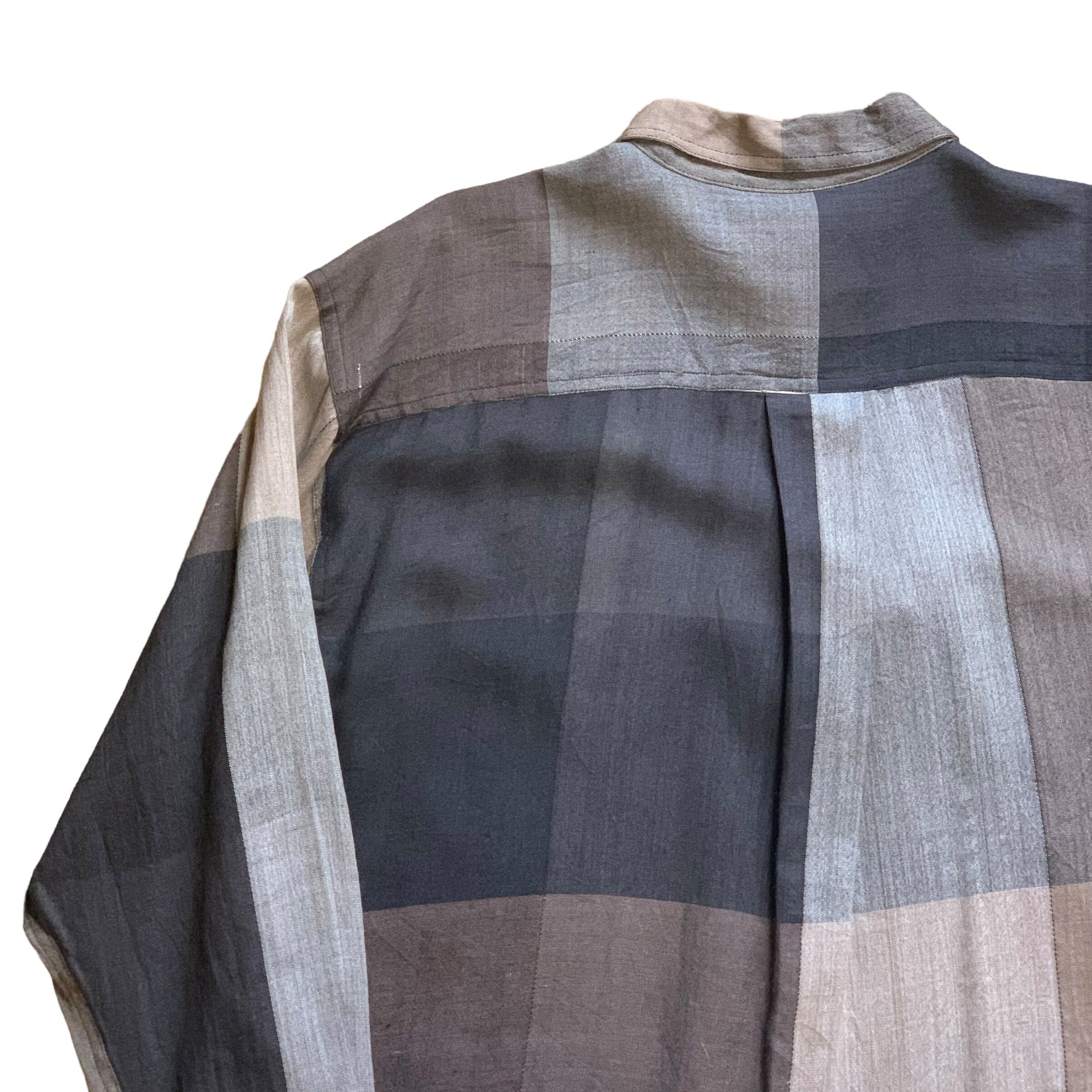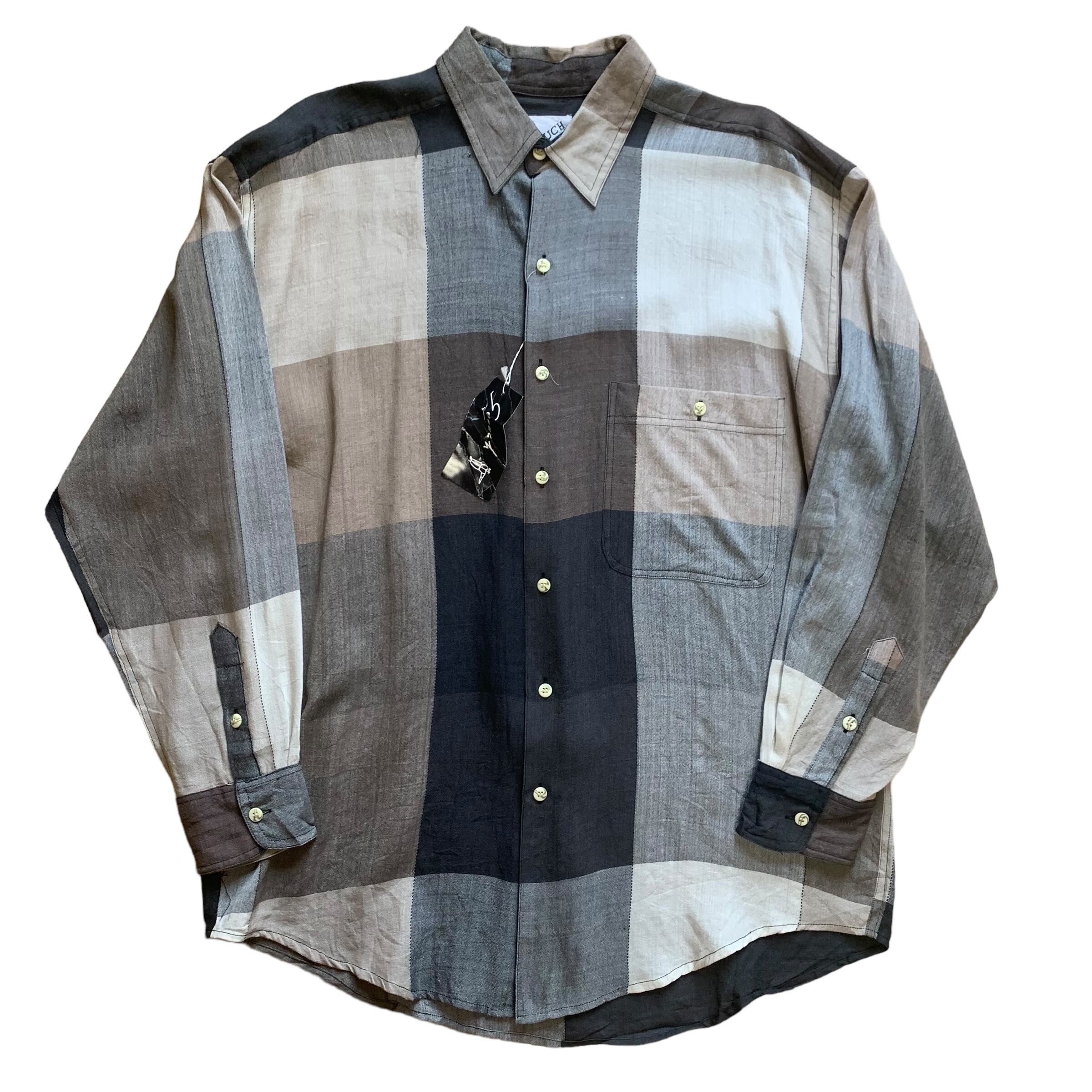80's~ "DEAD STOCK" GOOUCH Check Pattern SILK&LINEN Shirts 【M】 ②