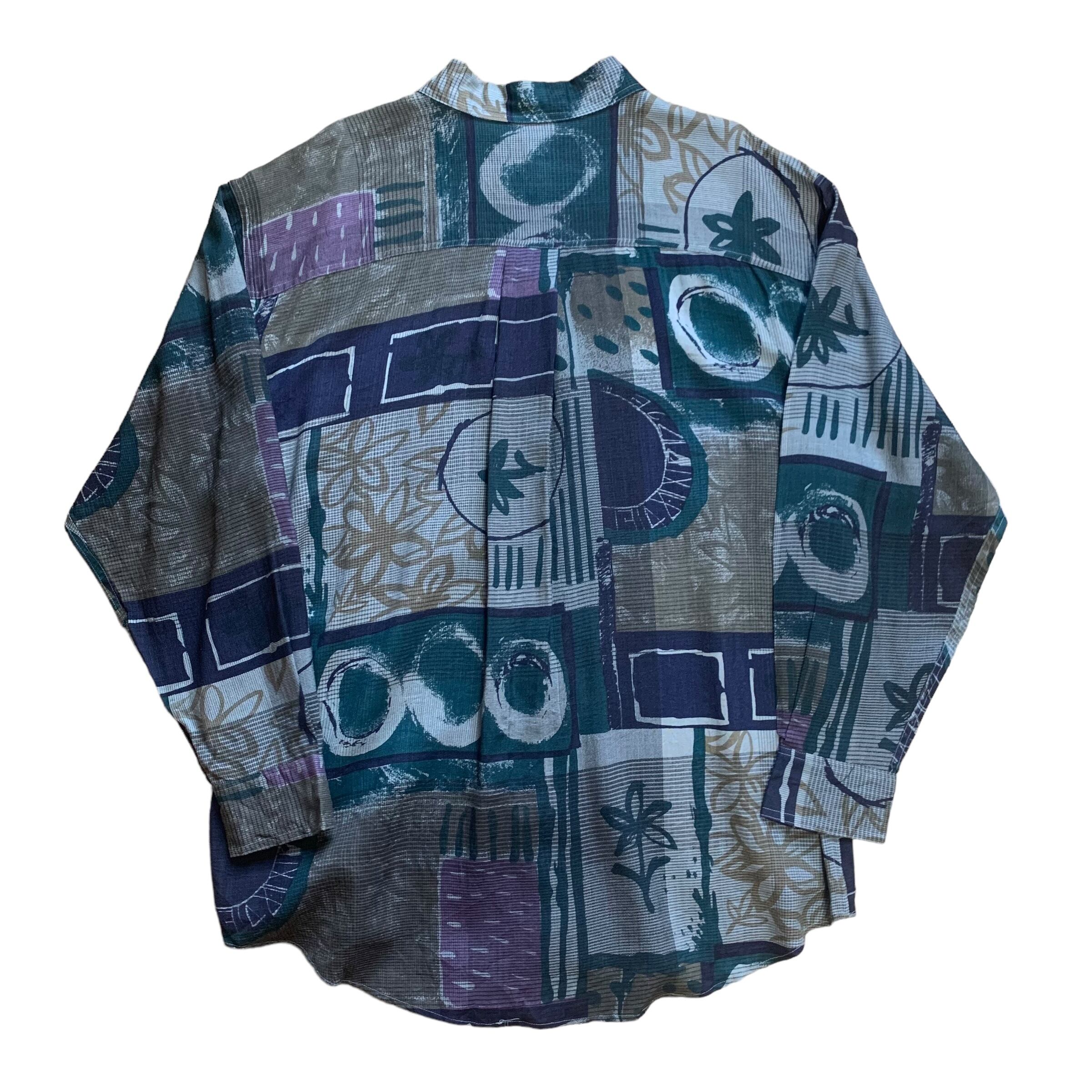 80's~ "DEAD STOCK" GOOUCH Flower Pattern SILK&LINEN Shirts 【L】 80s 90s 80年代 90年代 グーチ リネンシャツ シルクシャツ レーヨンシャツ アート系