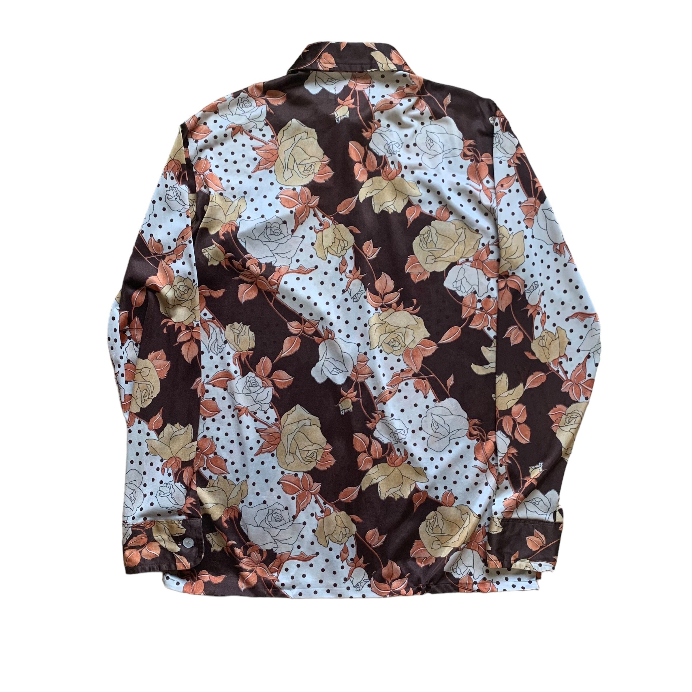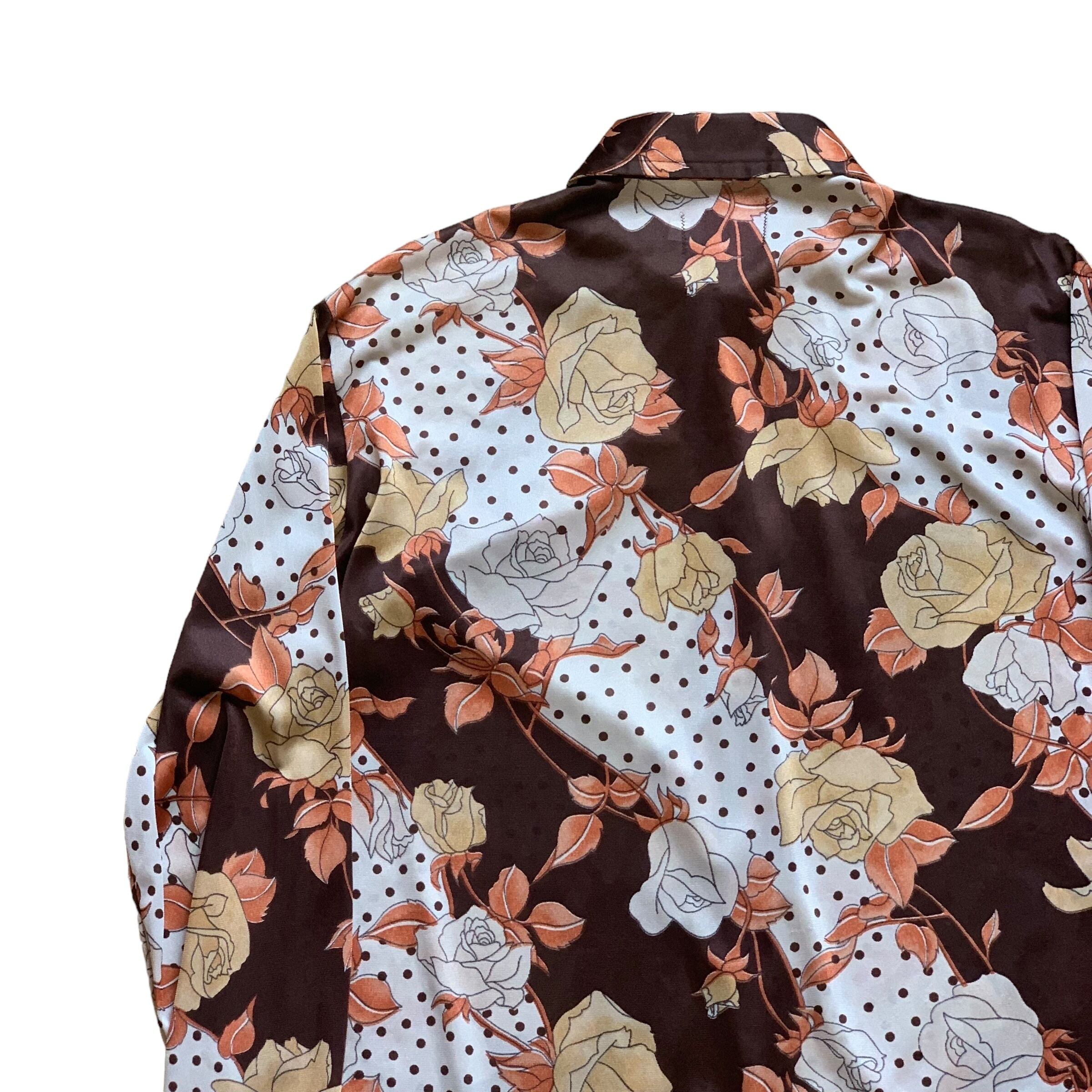 70's Flower Pattern Polyester Shirts 【L】 70s 70年代 ポリシャツ ヒッピー 花柄