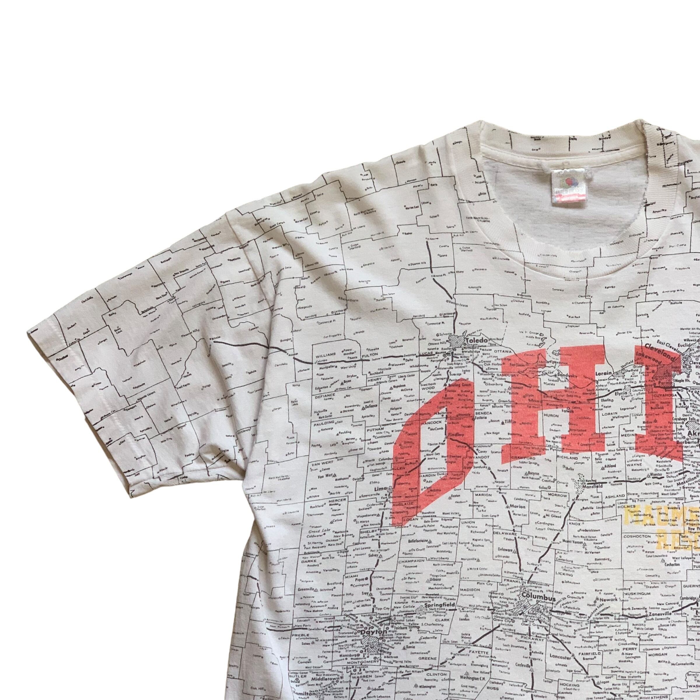 90's OHIO State MAP Print T-Shirts 【XL】 90s 90年代 オハイオ マップTシャツ シングルステッチ
