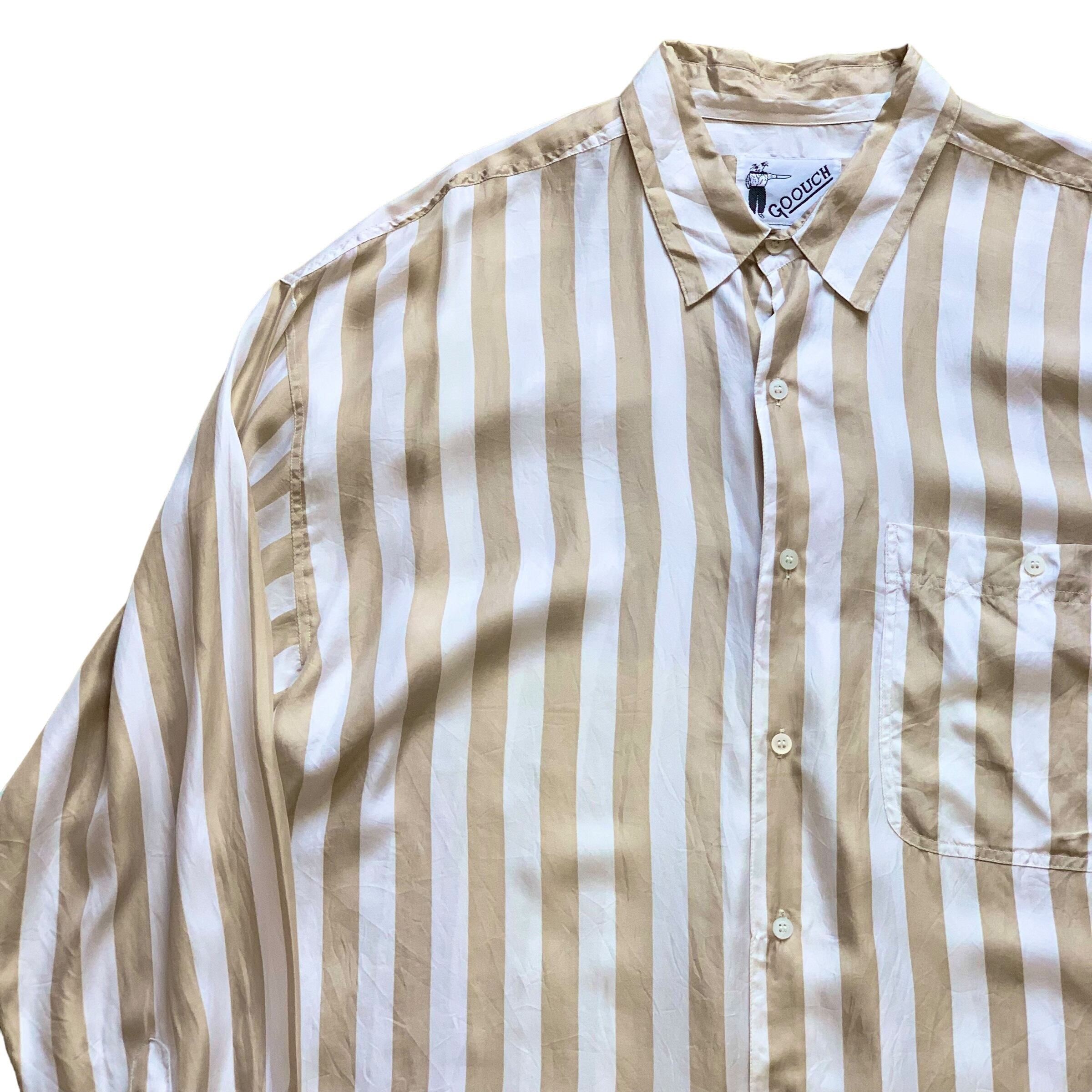 80's~ "DEAD STOCK" GOOUCH Stripe Pattern SILK Shirts 【L】 80s 90s 80年代 90年代 グーチ リネンシャツ シルクシャツ レーヨンシャツ アート系