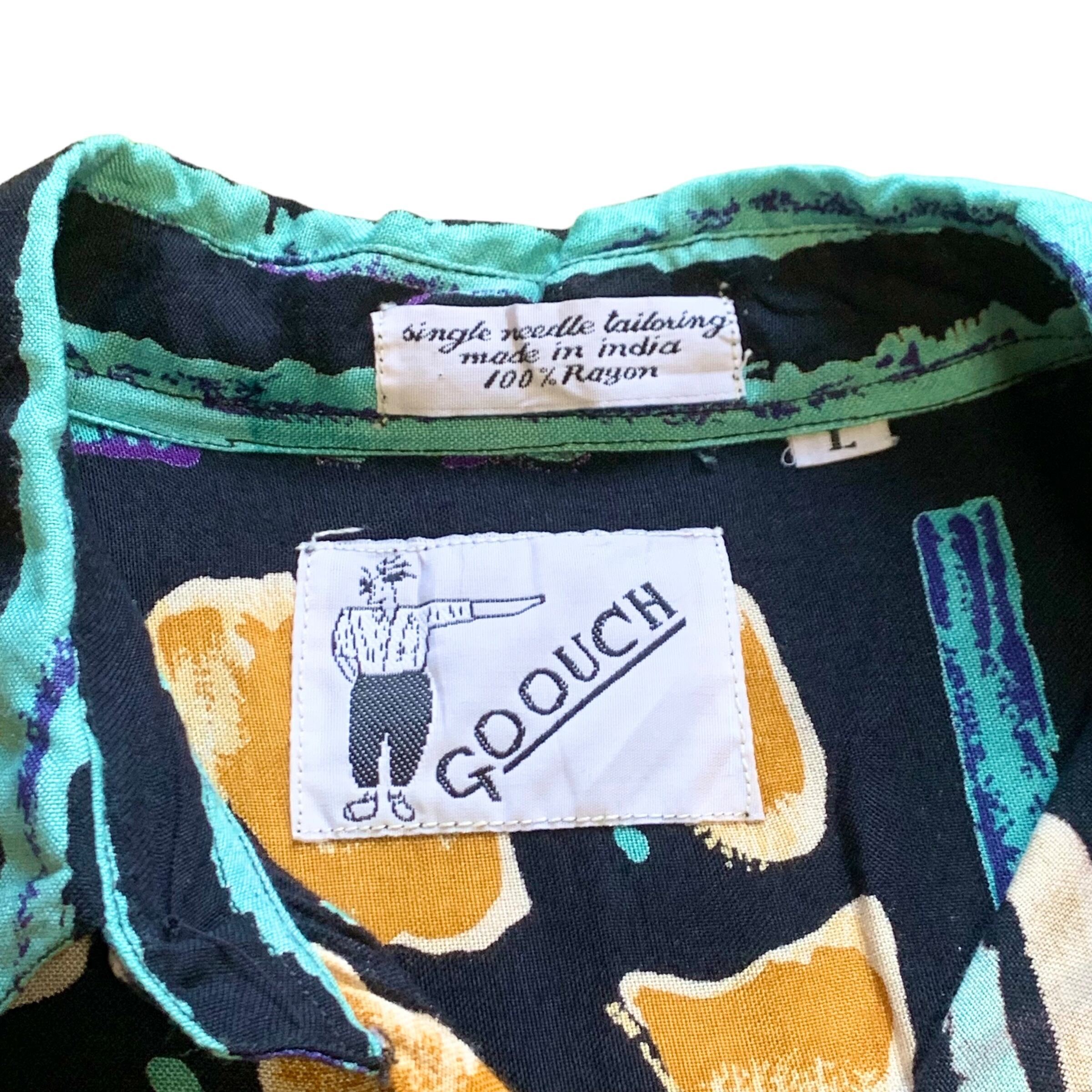 80's~ "DEAD STOCK" GOOUCH All-over Pattern RAYON Shirts 【L】 80s 90s 80年代 90年代 グーチ リネンシャツ シルクシャツ レーヨンシャツ アート系