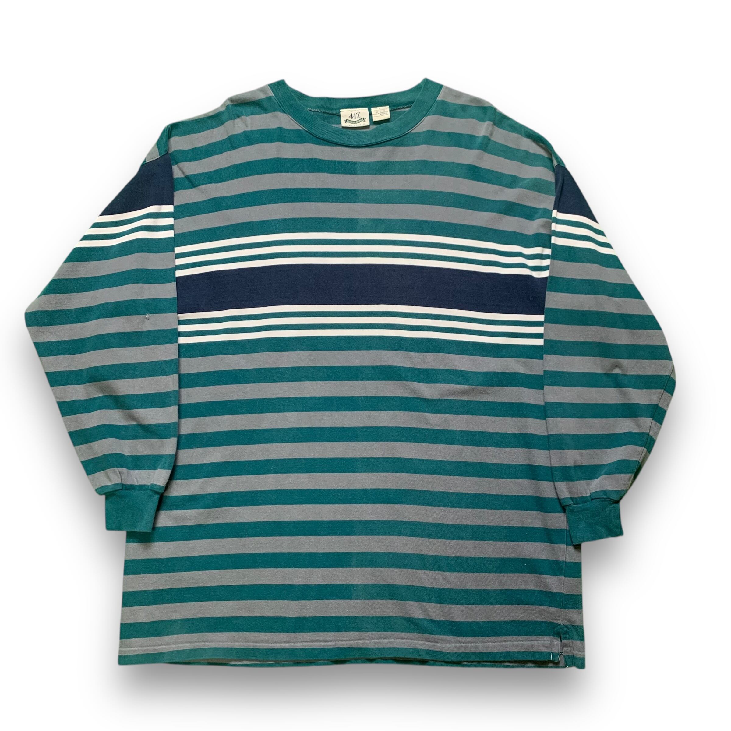 90's 417 by VAN HEUSEN Multi Border Print T-Shirts 【L】 90s 90年代 ボーダーTシャツ ロンT マルチボーダー