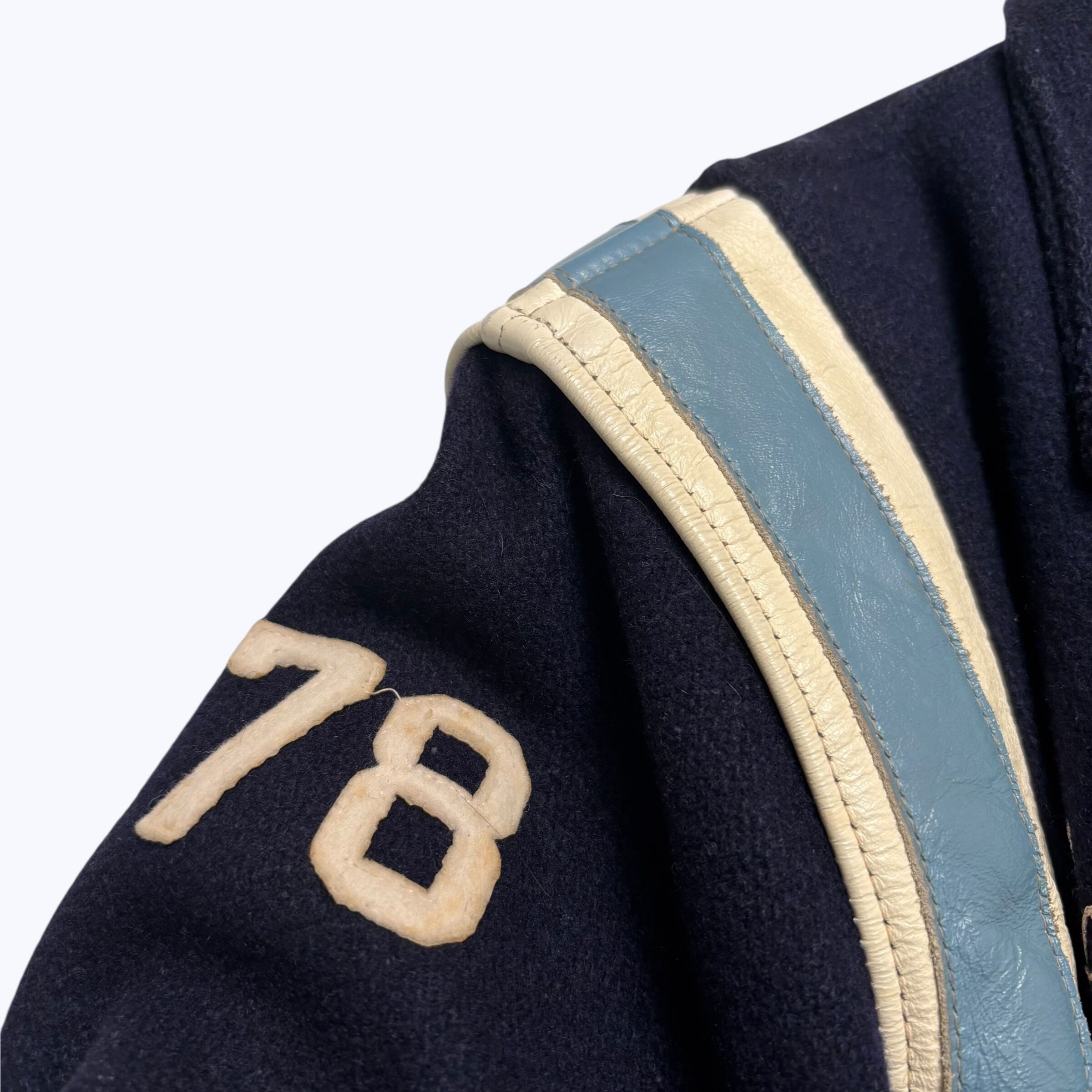 ポケットと肩口のレザー使いやワッペン、ボディーカラー等ブルートーンで統一されたかなり良いルックスの一枚です。
